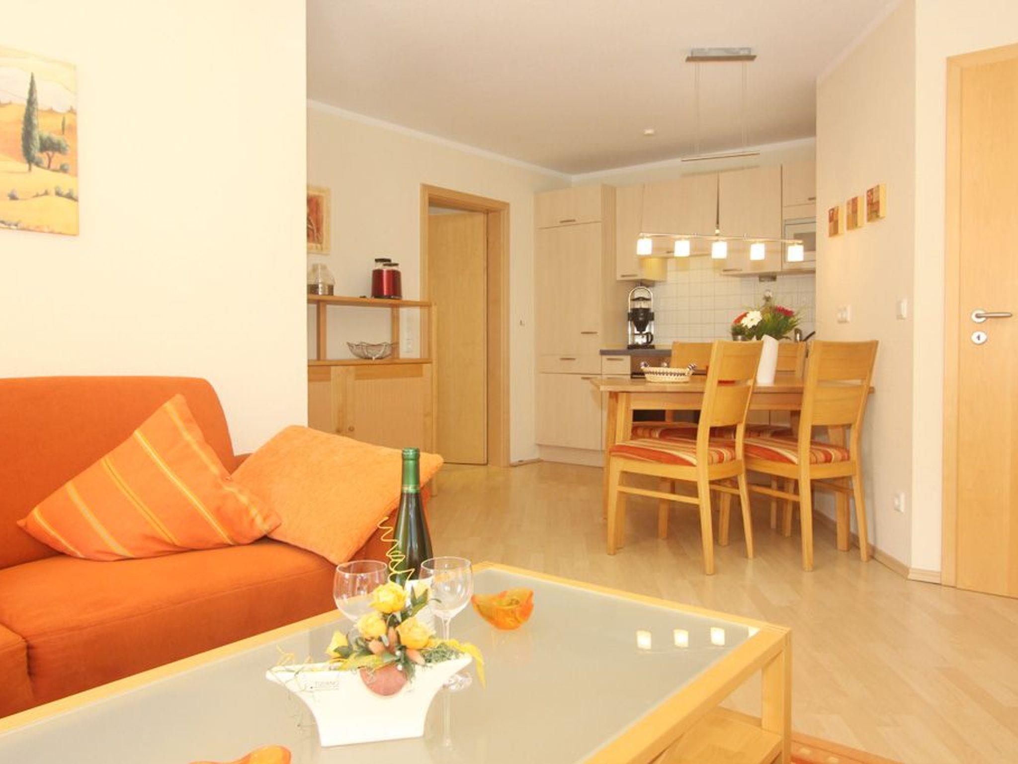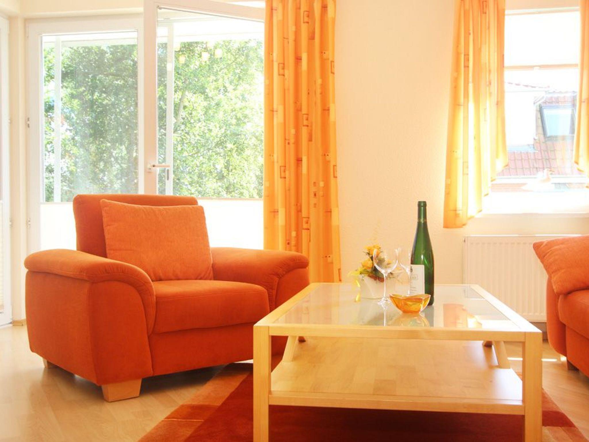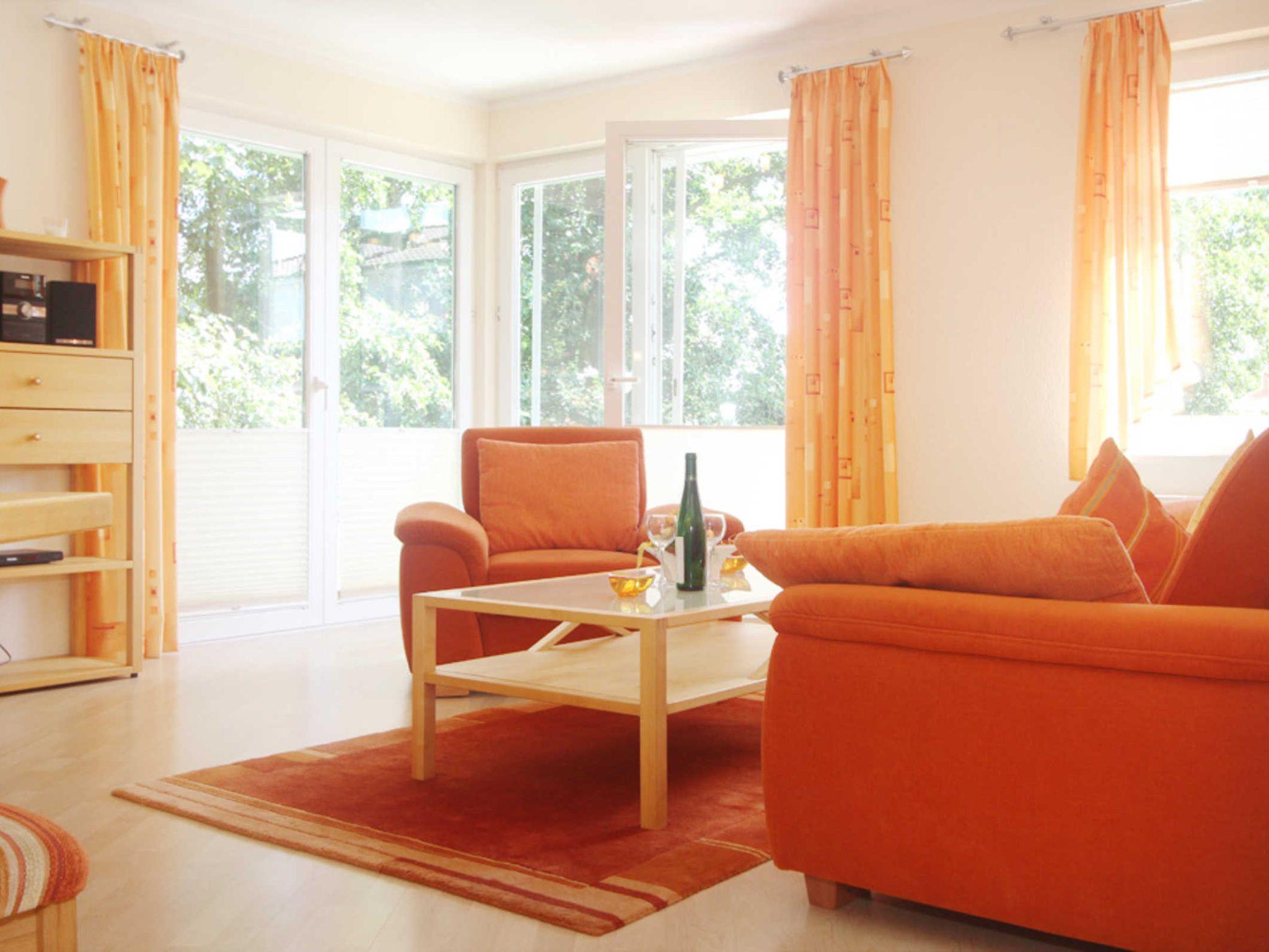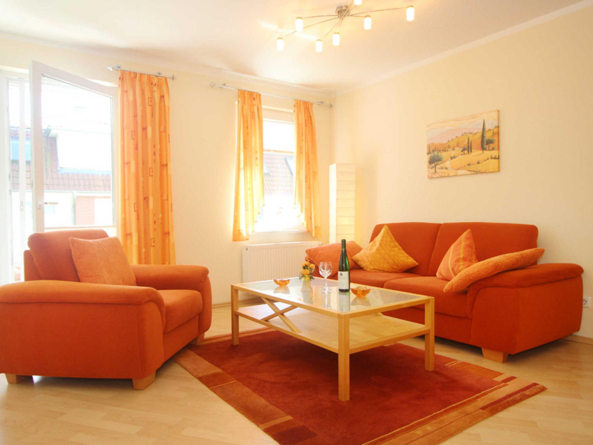 Die Nichtraucherunterkunft verfügt über in einen hellen und gemütlich möblierten Wohnbereich mit Zugang zum möblierten Eckbalkon in Süd-Ost-Ausrichtung. SAT-TV, DVD-Player, Musikanlage sowie diverse Gesellschaftsspiele und Bücher sorgen hier für Ihre Unterhaltung.