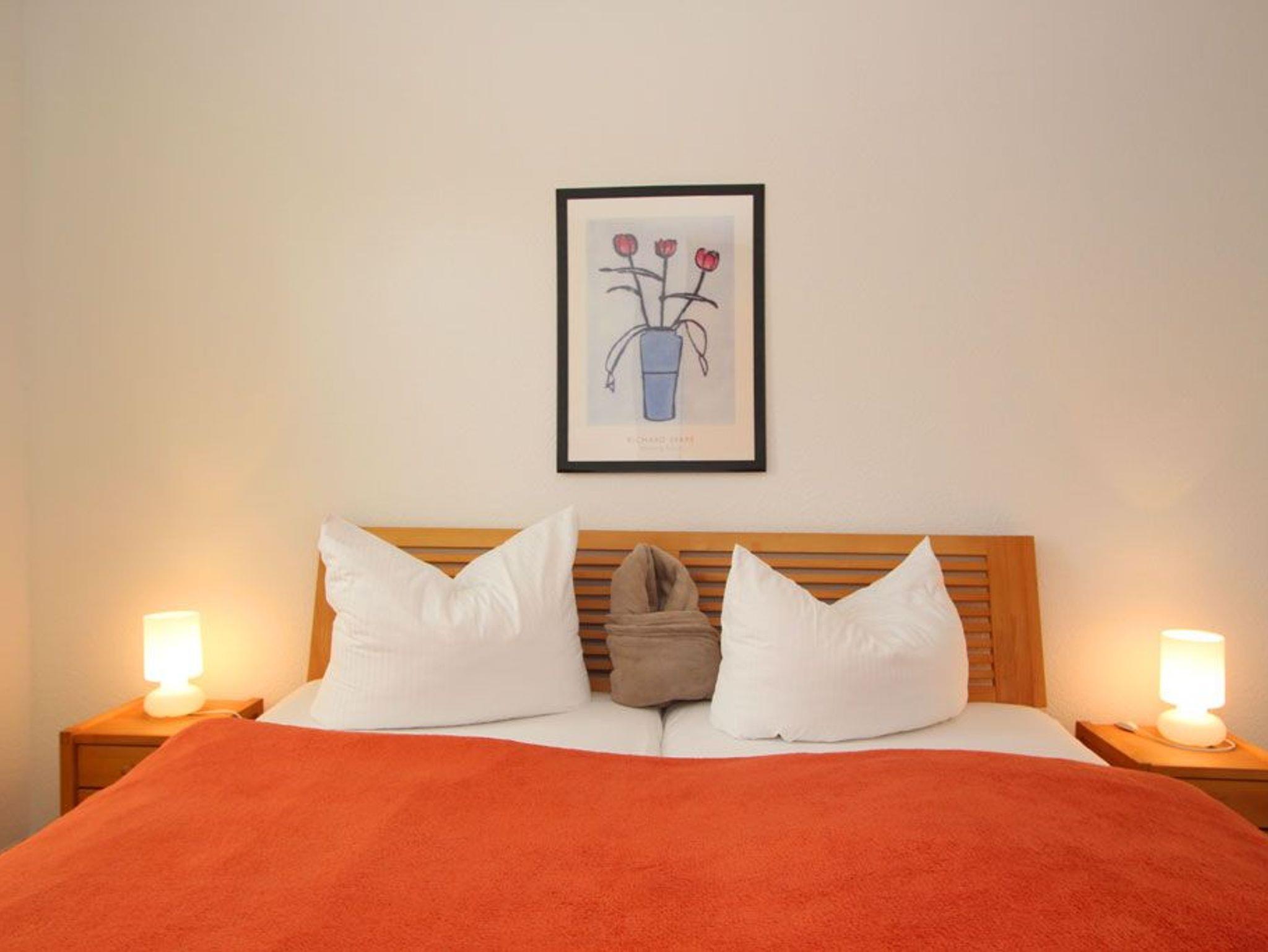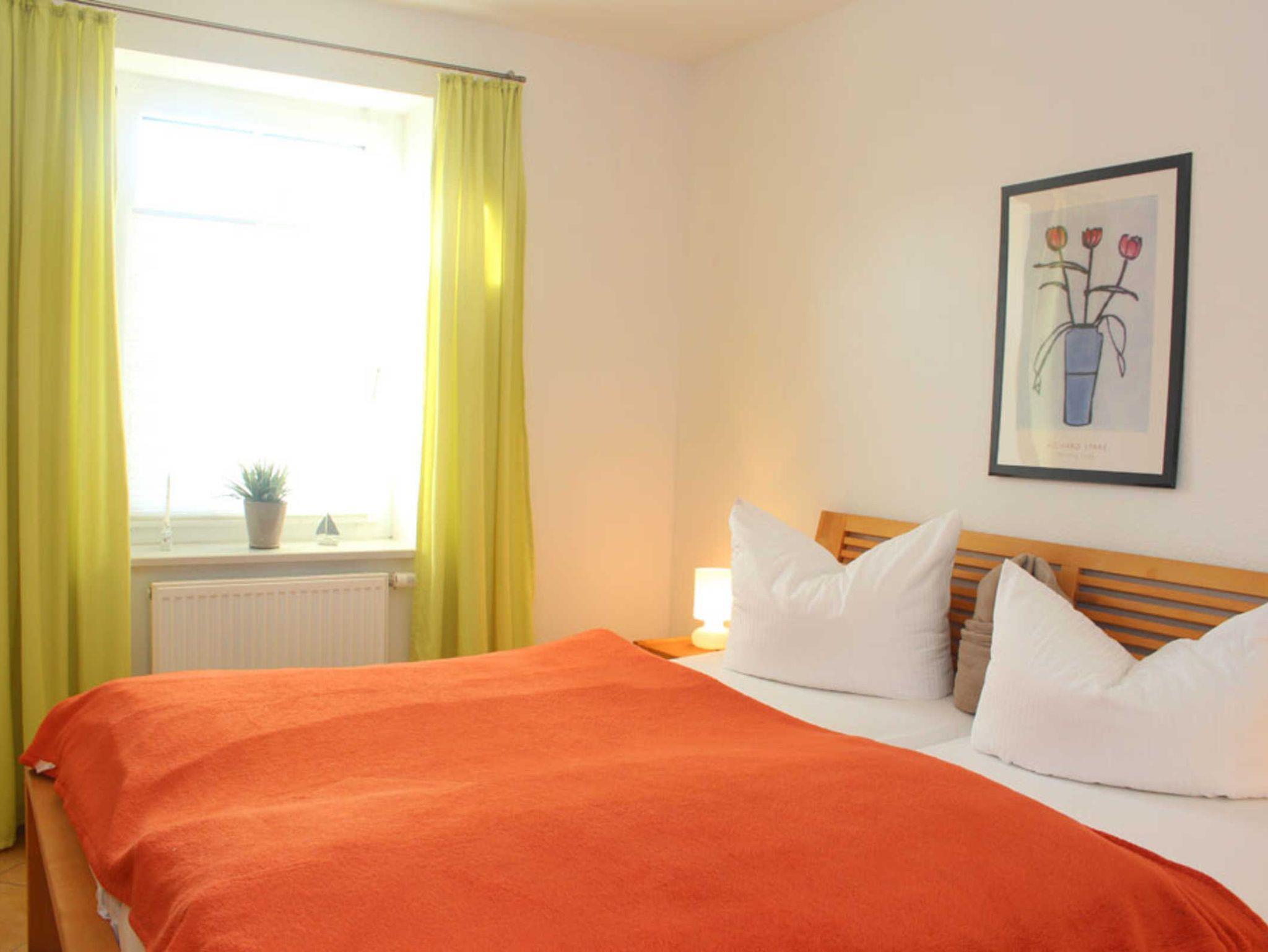 Das Schlafzimmer bietet ein komfortables Doppelbett. Ihre Urlaubsgarderobe können Sie gern in dem Kleiderschrank ablegen.