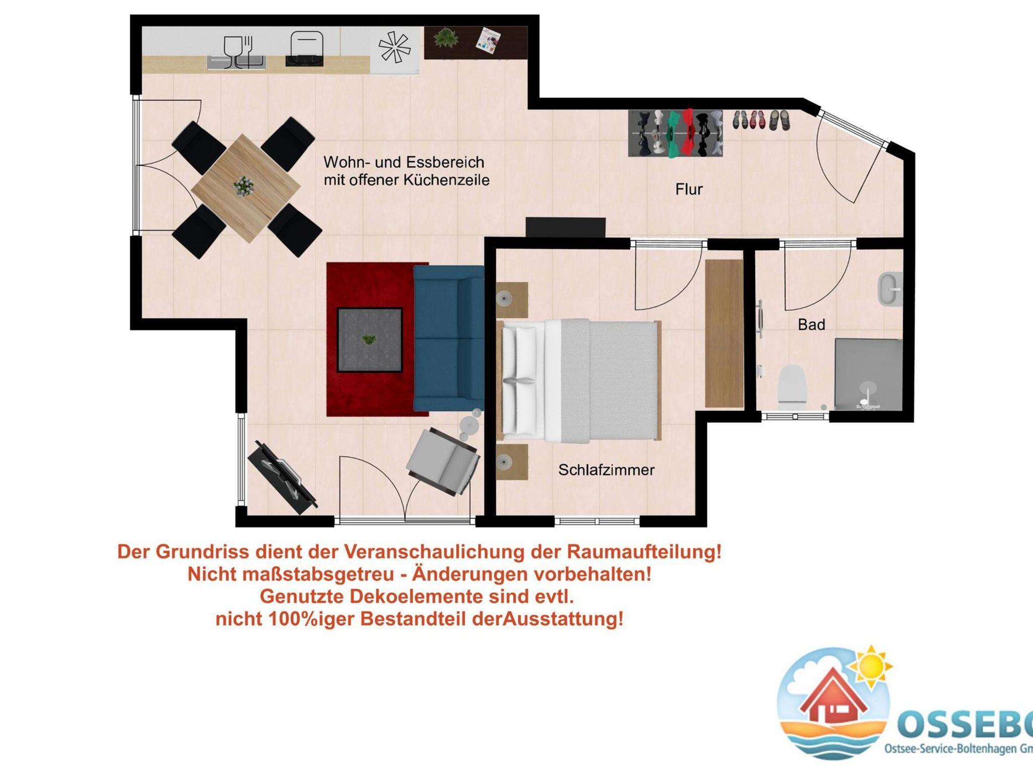 Modernes barrierefreies 2-Zimmer-Ferienappartement in Boltenhagen mit Südwest-Terrasse und komfortabler Ausstattung.