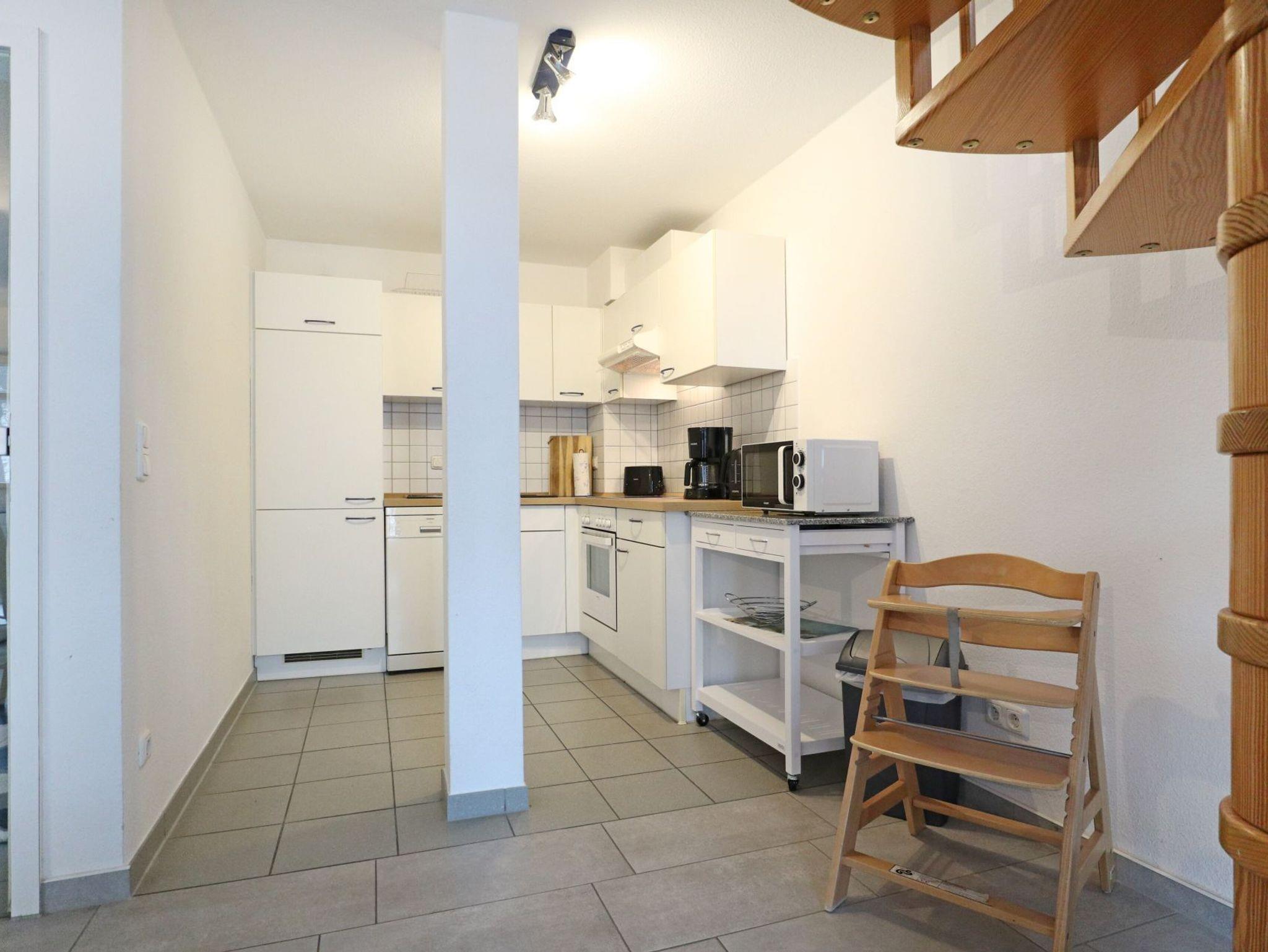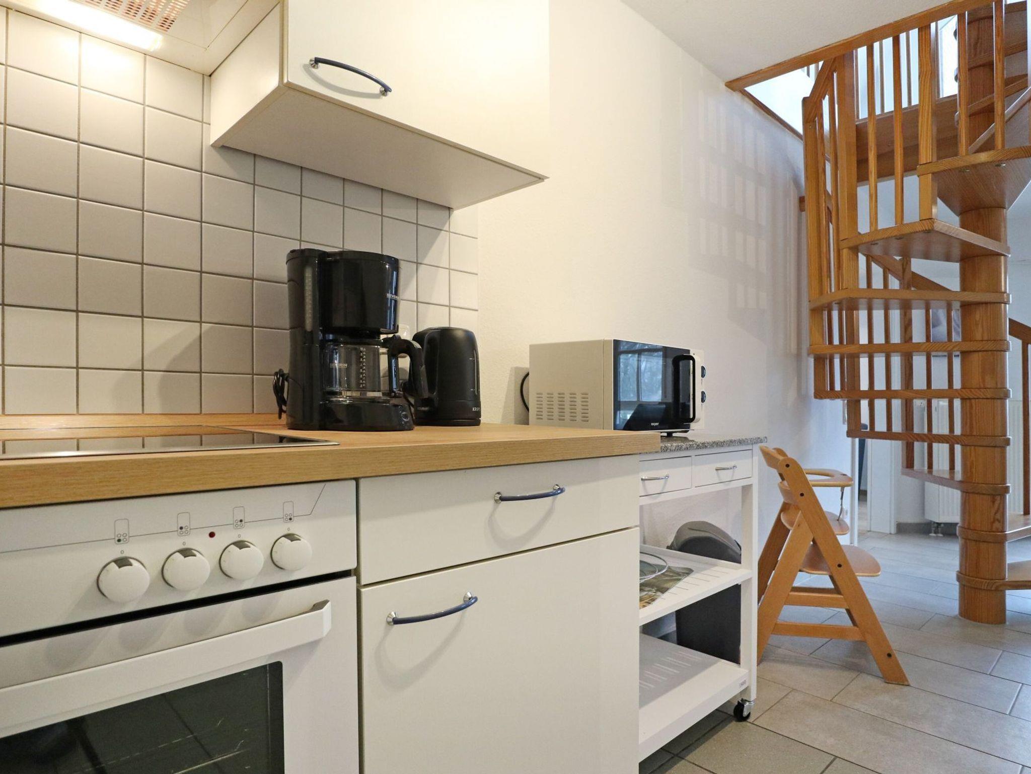 Über eine Wendeltreppe gelangen Sie in den oberen Wohnungsbereich mit einem weiteren Balkon. Hier steht ein dritter Schlafbereich zur Verfügung mit Doppelbett, Sitzgelegenheiten und Fernseher. Idealerweise befindet sich auf dieser Etage ein zweites Tageslicht Duschbad, Waschtisch, WC. Kinderreisebett und Kinderhochstuhl gehören zur Ausstattung.