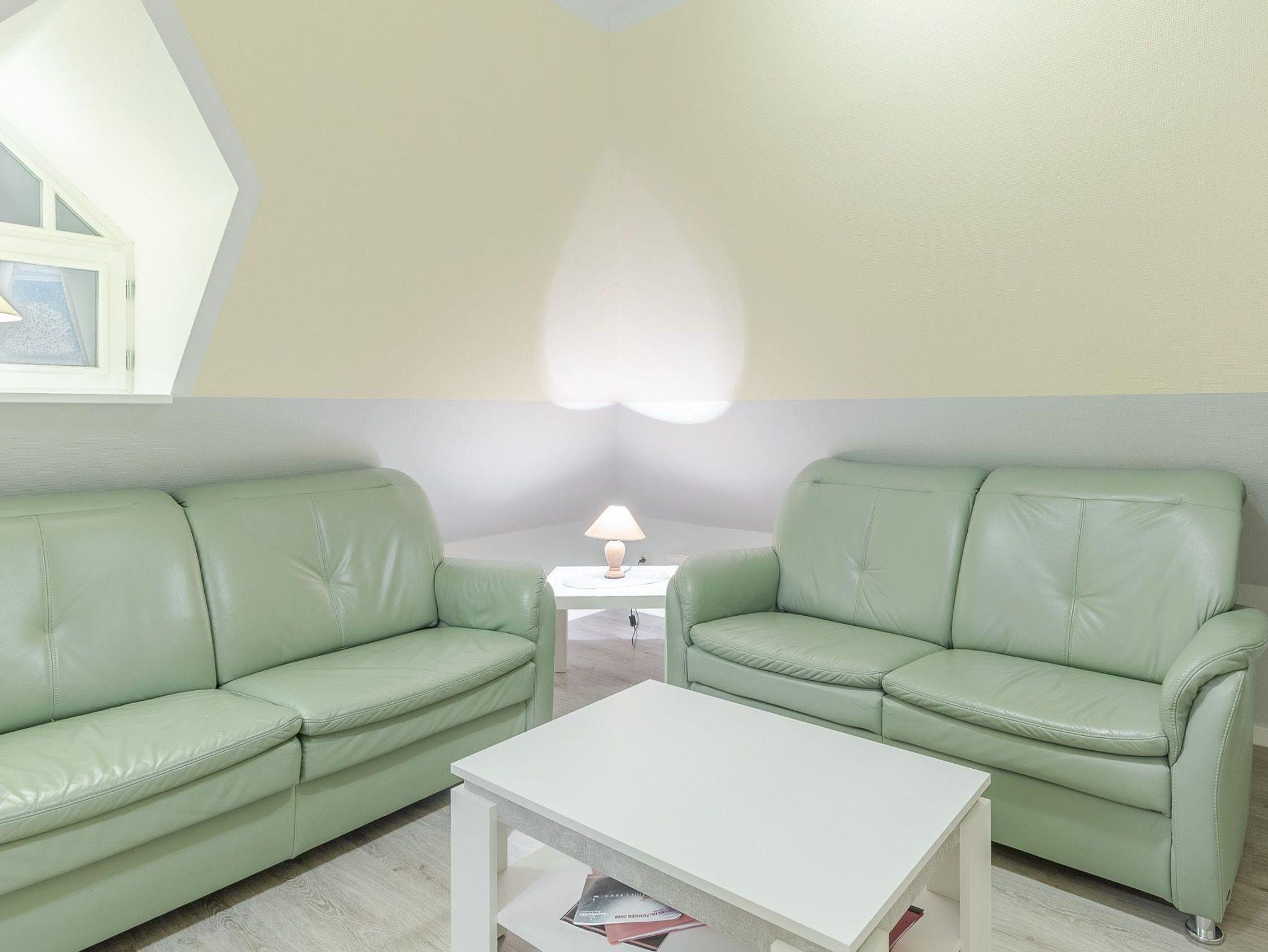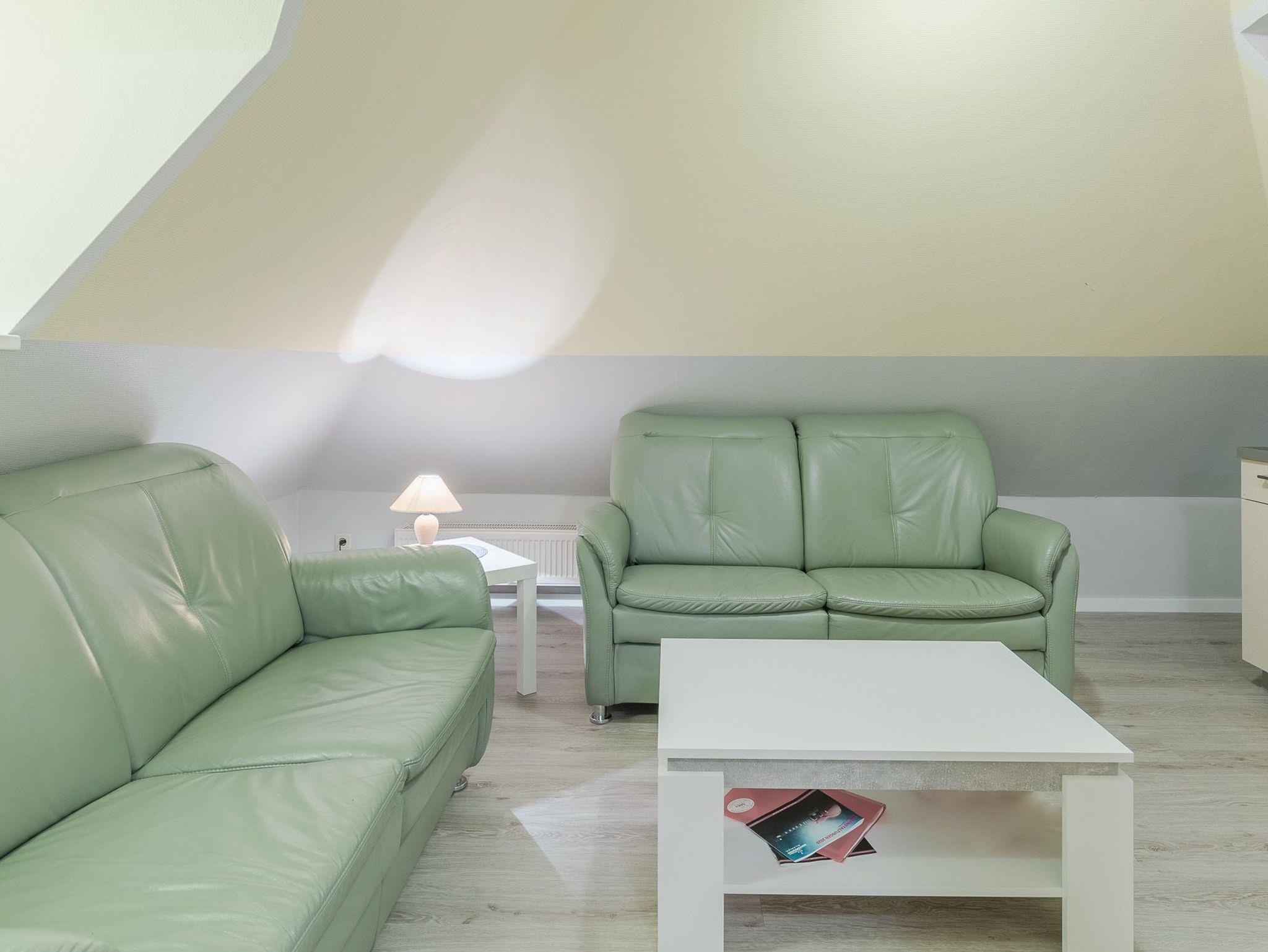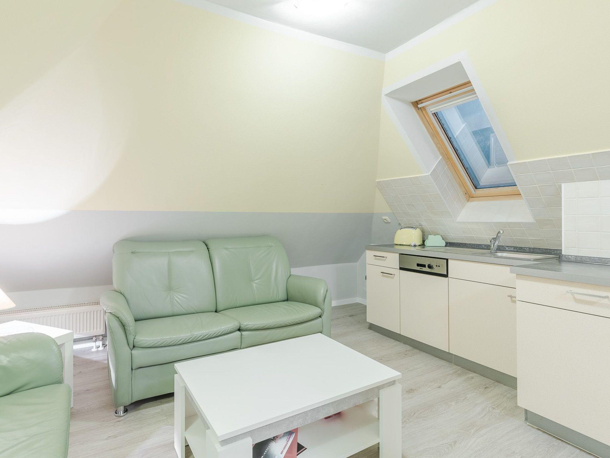 Die Wohnung 8 im 2. Obergeschoss bietet mit einem Wohnzimmer, einem separaten Schlafzimmer sowie einem offenen Schlafbereich zum Wohnzimmer Platz für 4 Personen.