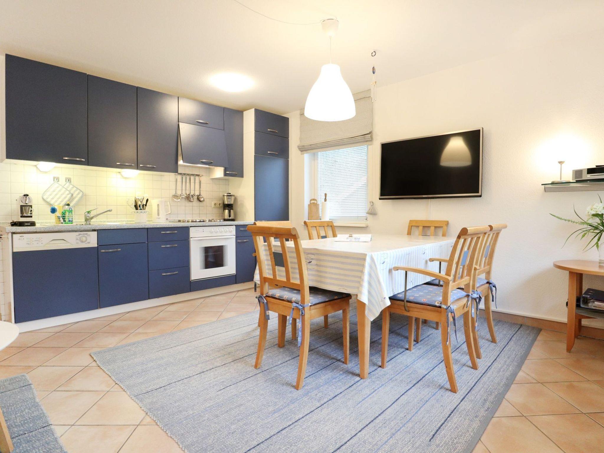 Das Ferien Reihenhaus ? Urlauberdorf 39B ? mit Terrasse bietet auf 65qm familienfreundliches Wohnen zum Wohlfühlen. Auch Gäste mit Hund sind willkommen. Der gemütliche Wohn- und Essbereich ist mit einem Sofa, Fernseher, Musikanlage, WLAN und einem Esstisch ausgestattet ? ideal für entspannte Stunden mit der Familie. Zwei separate Schlafzimmer sowie ein Duschbad und ein Vollbad sorgen für Komfort und Privatsphäre. Die integrierte Küchenzeile ist gut ausgestattet mit Herd, Backofen, Geschirrspüler, Kaffeemaschine, Wasserkocher, Toaster u.v.m. Erholung finden Sie auf der saisonal möblierten Terrasse. Im Erdgeschoss befinden sich ein Schlafzimmer mit Katamaran Etagenbett und Kleiderschrank sowie ein Tageslicht Duschbad mit WC und kostenfreier Waschmaschinen Nutzung. Über eine Treppe gelangen Sie ins Obergeschoss mit einem weiteren Schlafzimmer mit Doppelbett, Kleiderschrank, Sitzgelegenheit, 2. Fernseher. Ein Vollbad mit Dusche und Badewanne ist auf dieser oberen Etage ebenso vorhanden. Familienfreundlich gehören ein Kinderhochstuhl, Bollerwagen zur Ausstattung. Das Nichtraucherhaus ist für bis zu 4 Personen ideal geeignet, ein PKW-Stellplatz befindet sich kostenfrei direkt am Haus. Weitere PKW-Stellplätze stehen in der Umgebung im öffentlichen Bereich kostenpflichtig zur Verfügung. Haustiere sind gegen Gebühr erlaubt. Das Laden von Elektro und Hybridfahrzeugen ist nicht gestattet. Hiervon sind Akkus von E-Bikes & Pedelecs (unter Aufsicht) ausgenommen.