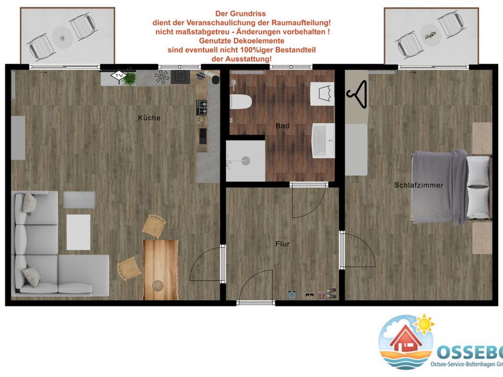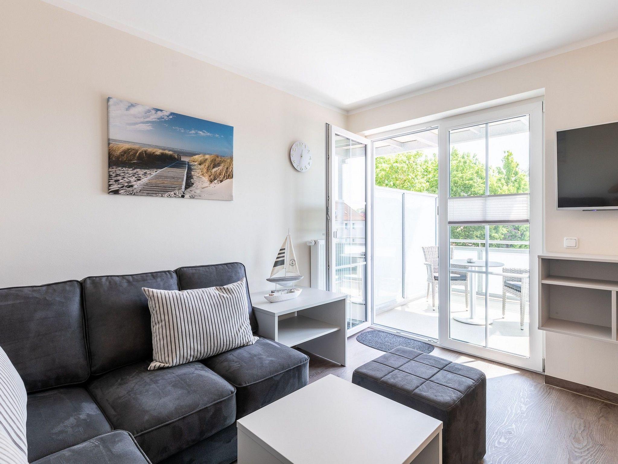 Moderne 2-Zimmer-Ferienwohnung mit zwei Balkonen, WLAN und kostenfreiem Parkplatz, ideal für einen entspannten Ostseeurlaub in Boltenhagen.