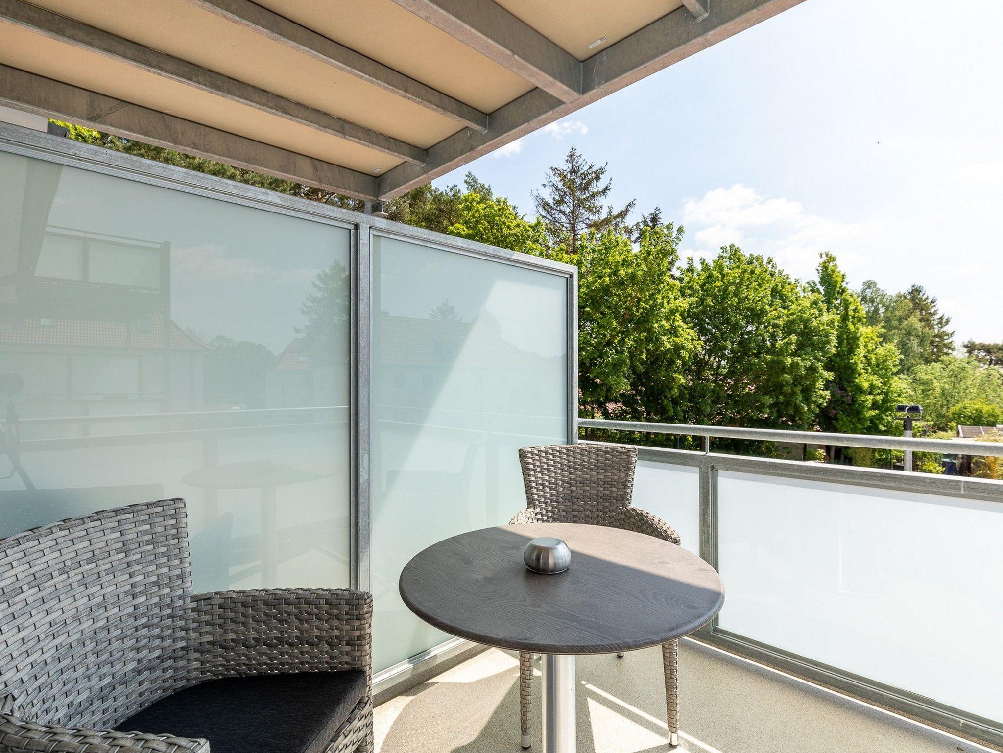 Auf den Balkonen können Sie gemütlich den Abend bei einem Glas Wein ausklingen lassen.