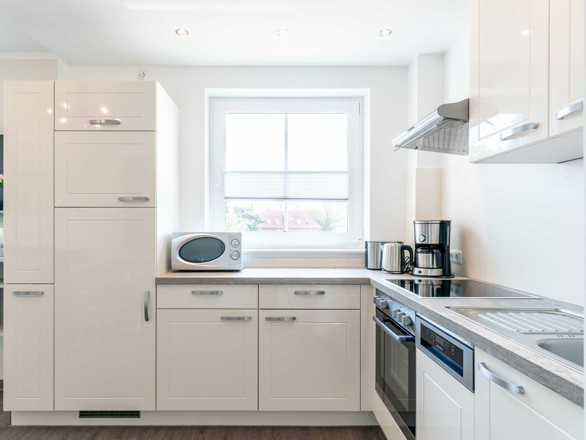 Die hell und modern eingerichtete 2-Zimmer-Ferienwohnung verfügt im 1.OG auf 42qm Wohnfläche über eine moderne Einrichtung für 2 Gäste.