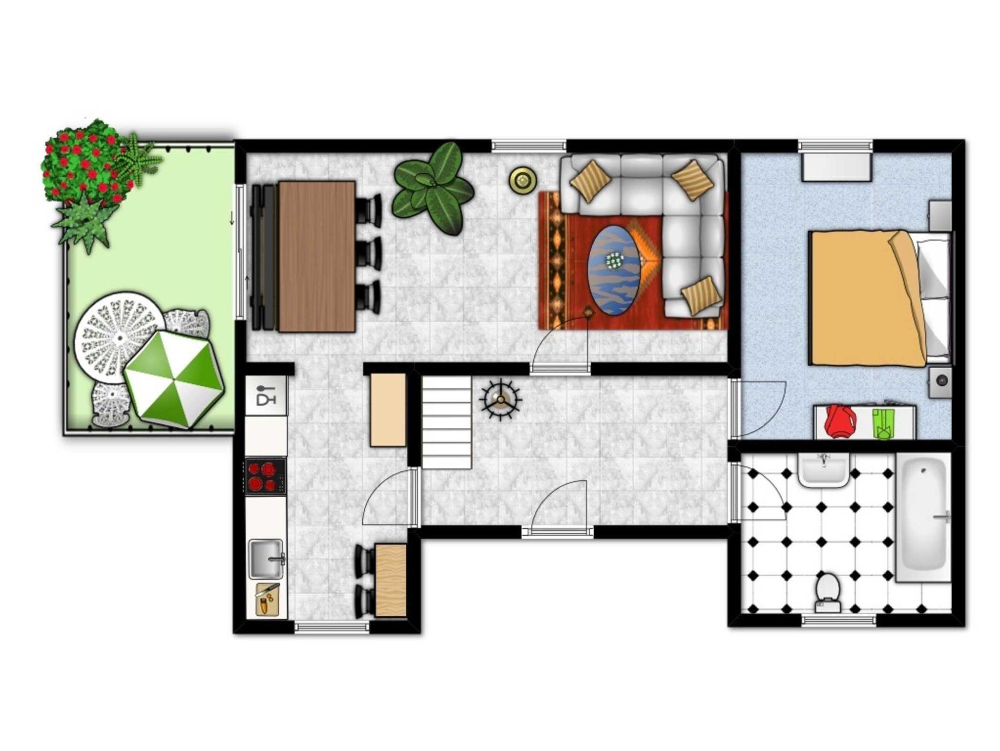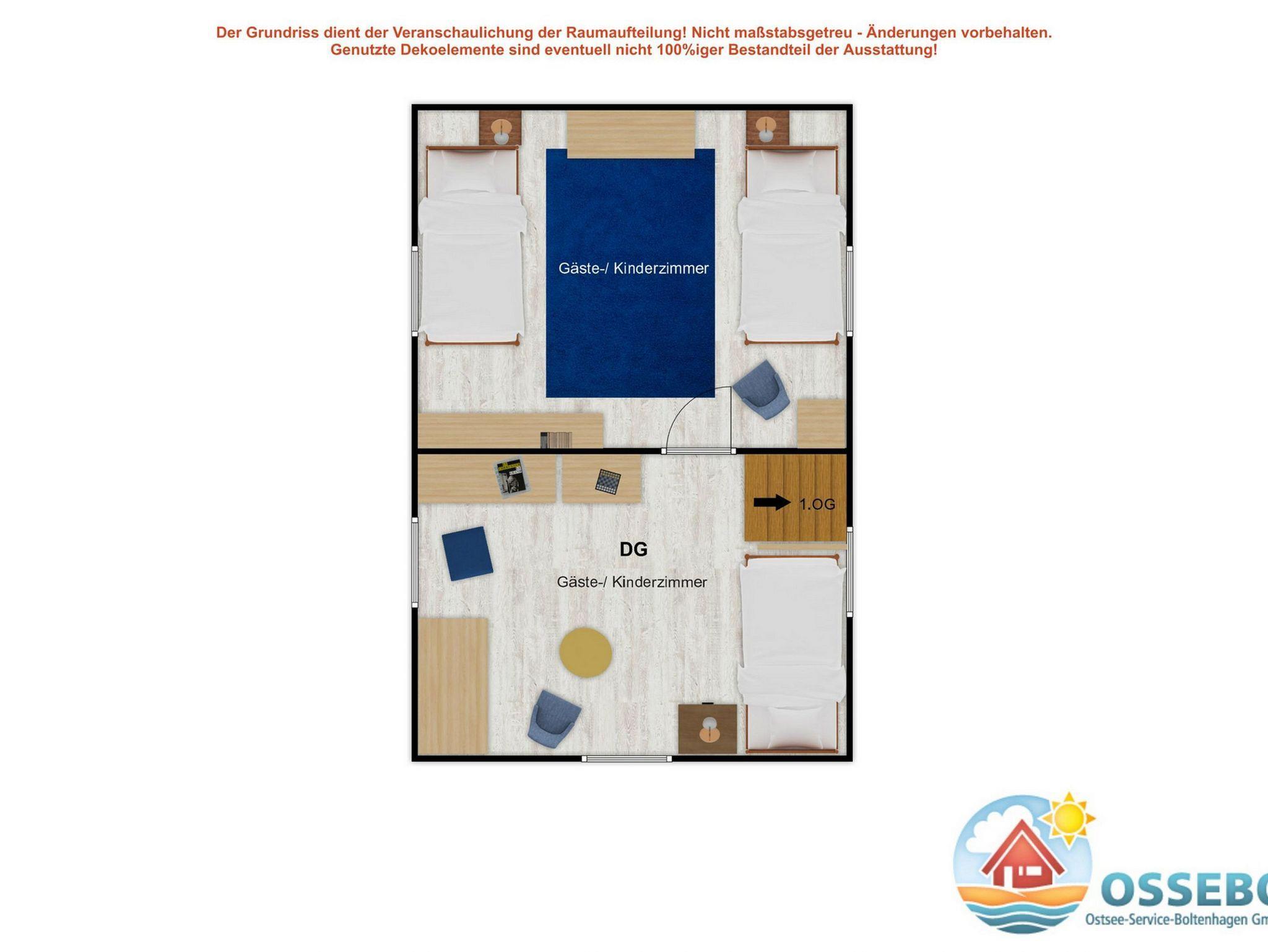 Die zweite Ebene erreichen Sie durch eine Raumspartreppe (nicht kleinkindgerecht, ohne Treppenschutz)!