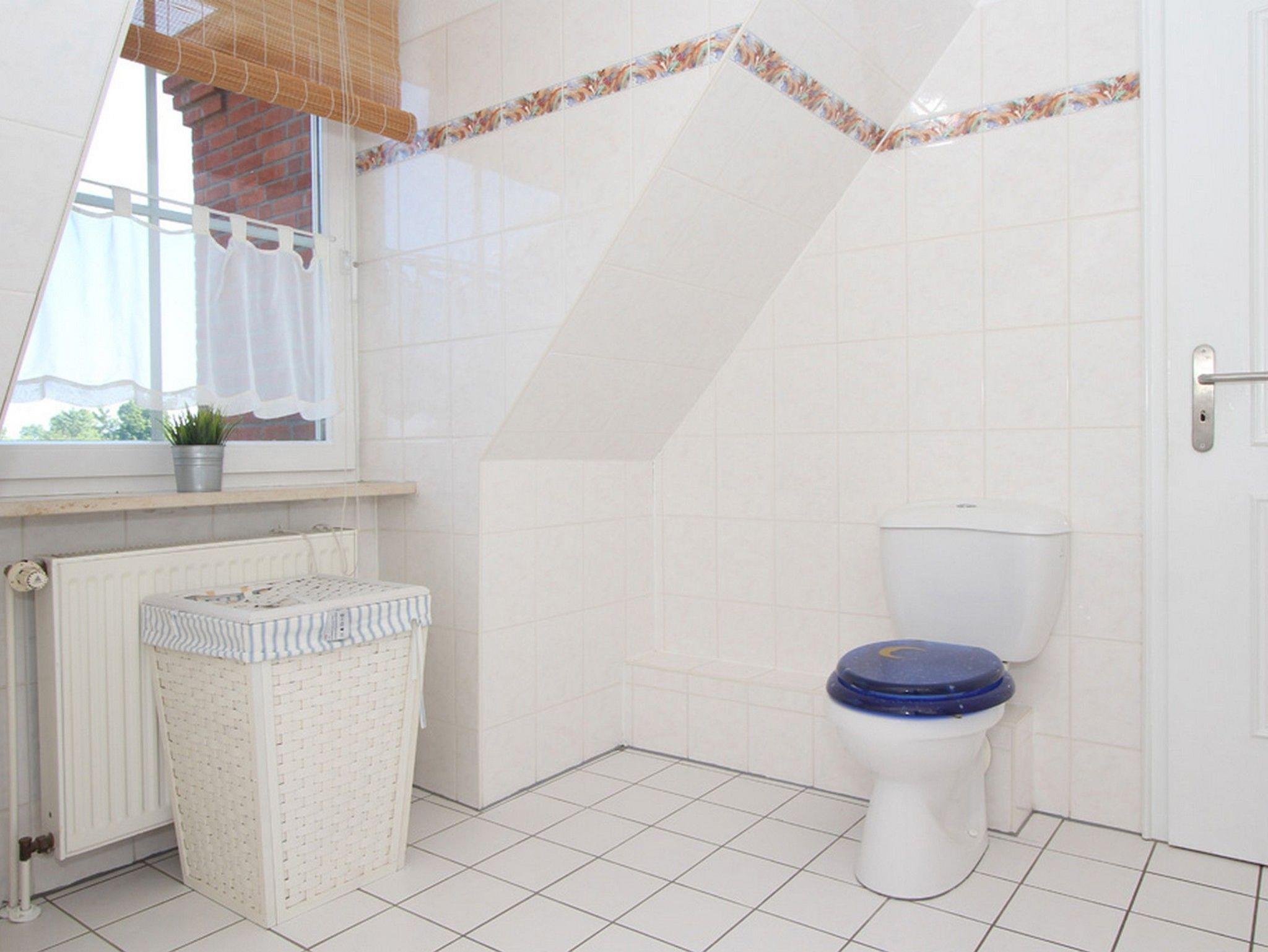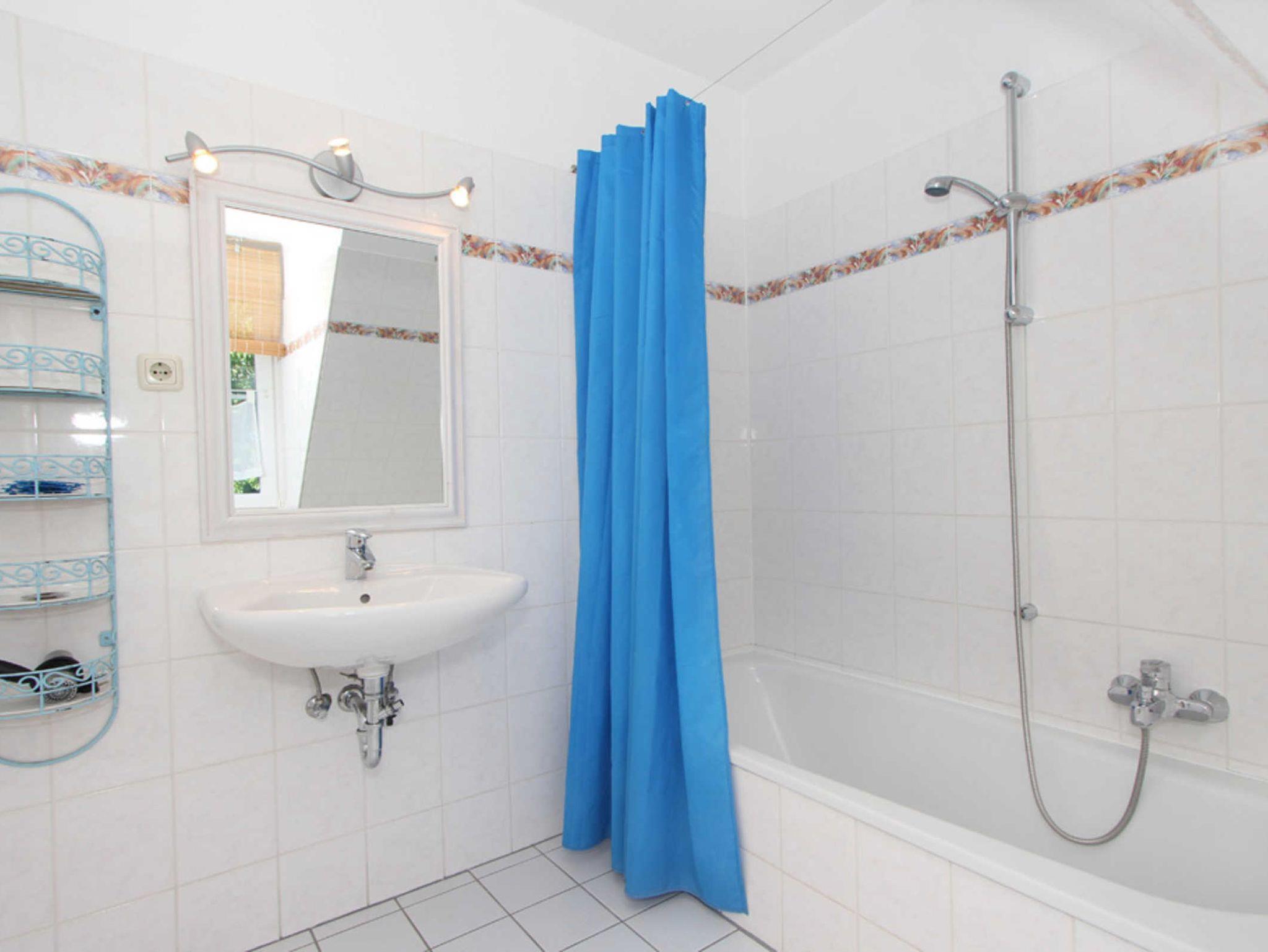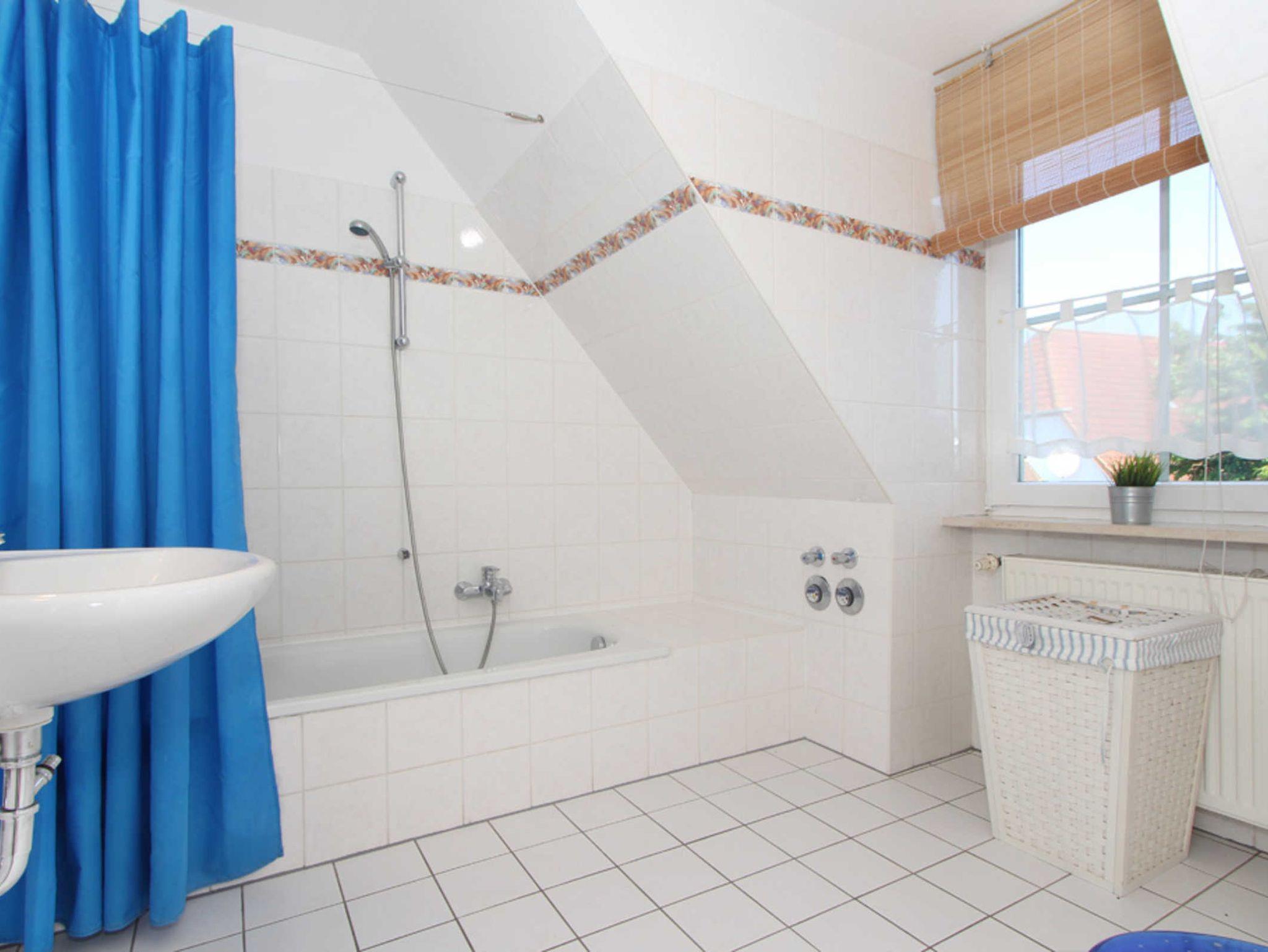 Das helle und freundliche Badezimmer verfügt über Badewanne und WC.