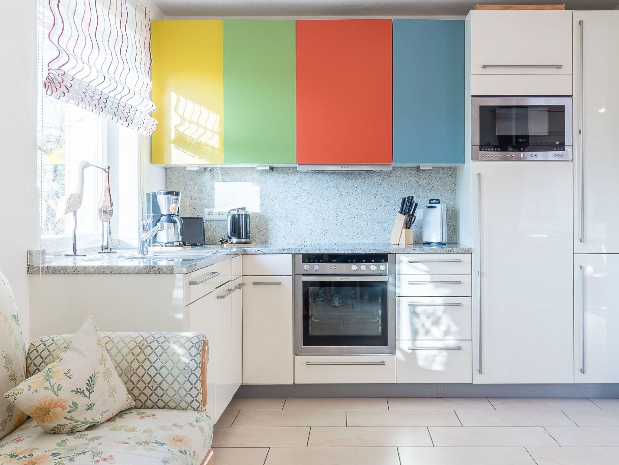 Mittelpunkt der modernen Wohnküche ist die charmante Sitzecke, die zum Verweilen einlädt. Hier kann z.B. man gemütlich seine zubereiteten Mahlzeiten einnehmen.