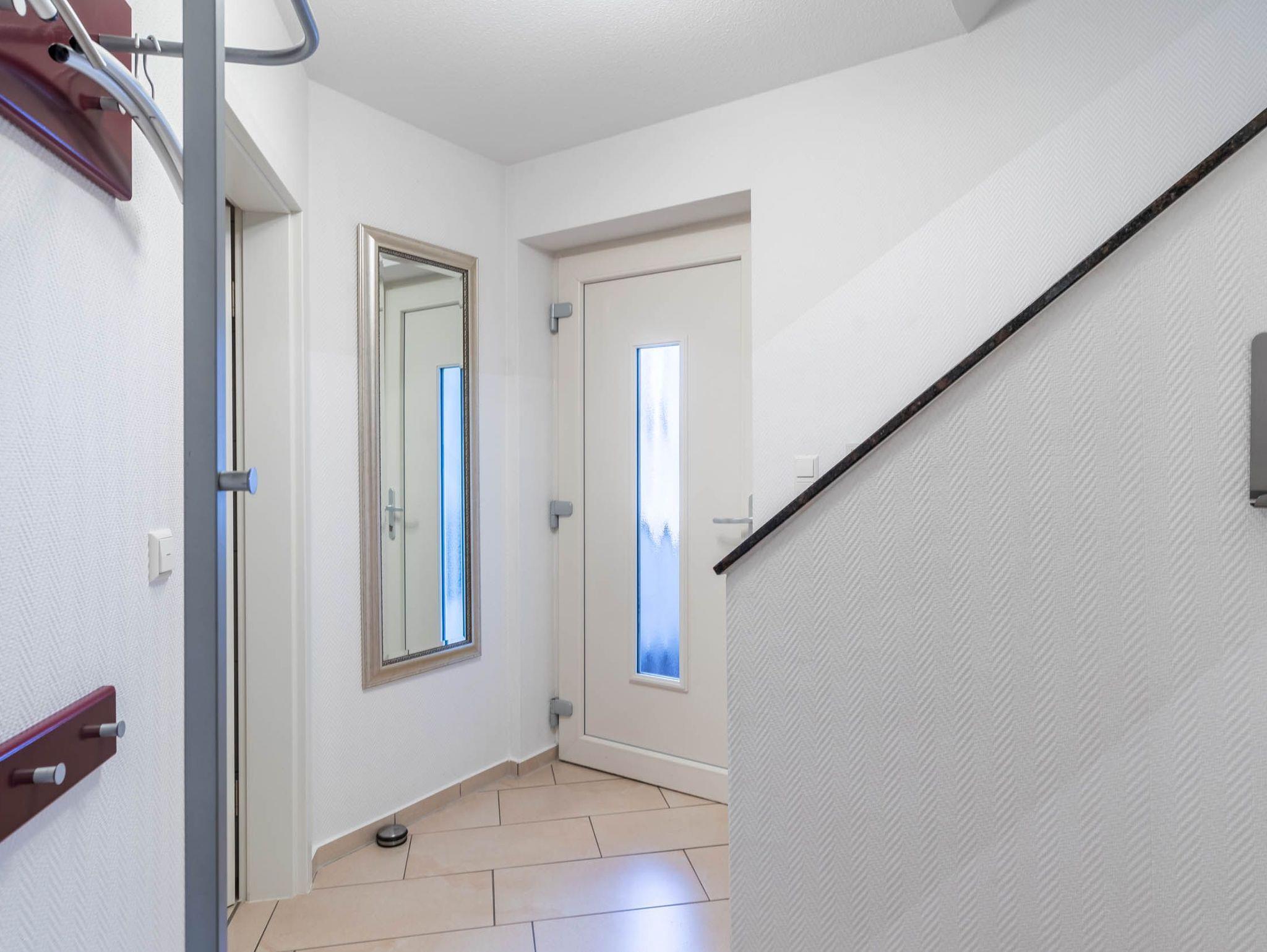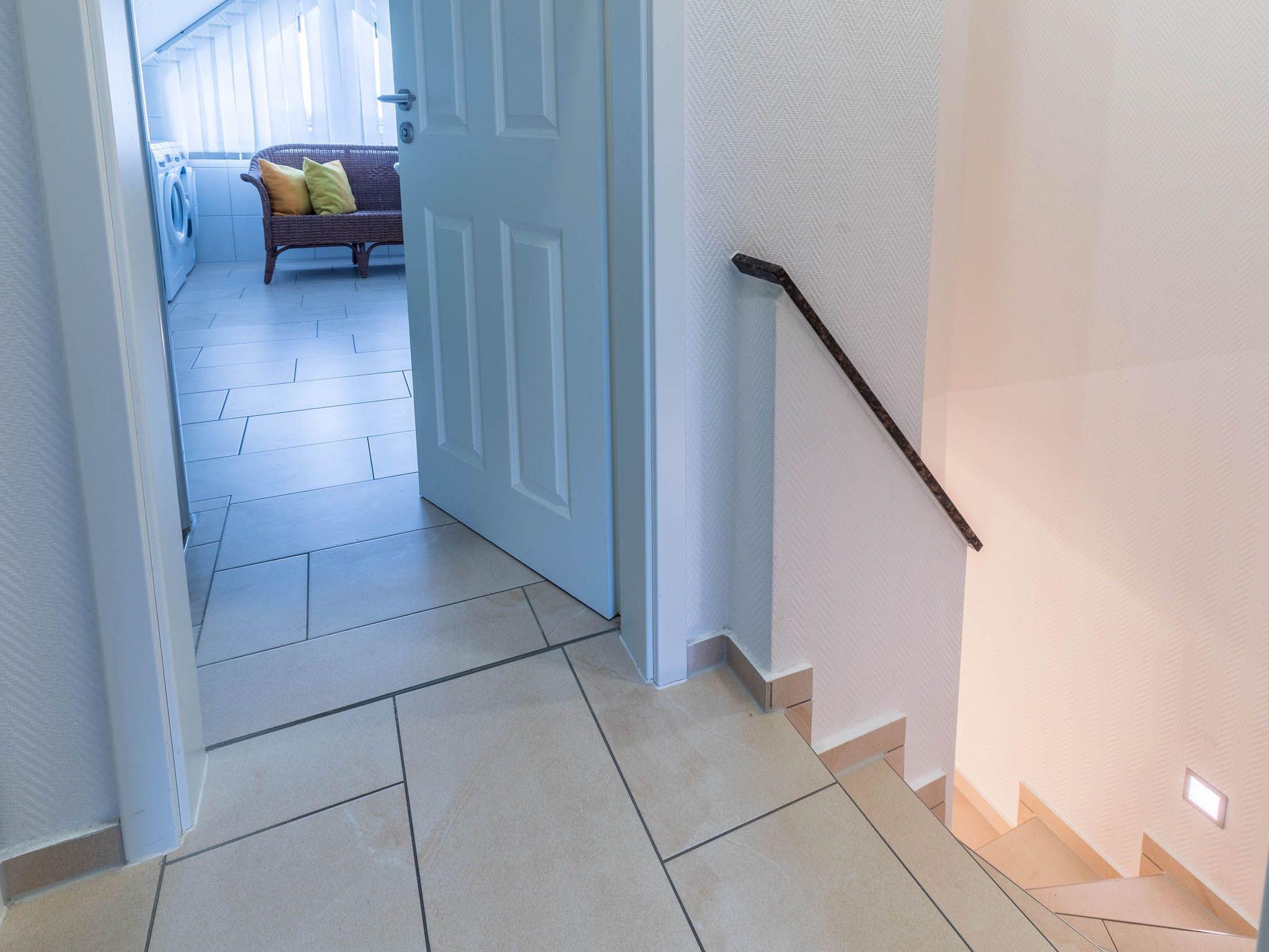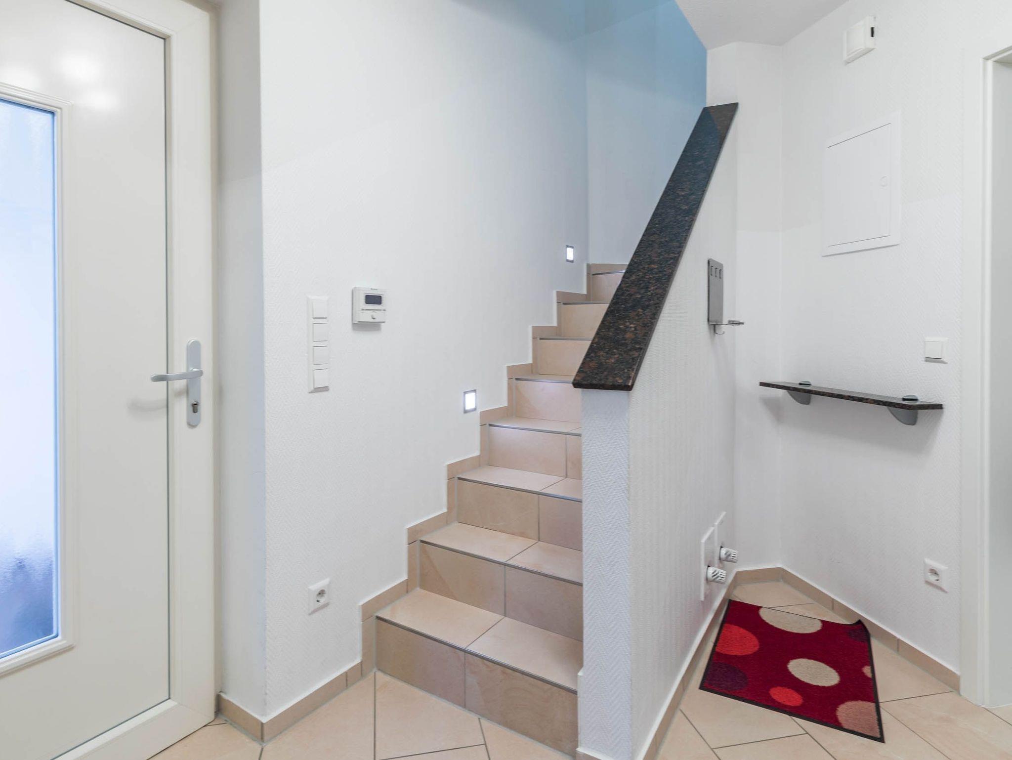 Vom Flur aus führt eine Treppe in die zweite Wohnebene, ins DG. Hier befinden sich die zwei Schlafräume sowie das zweite Bad.