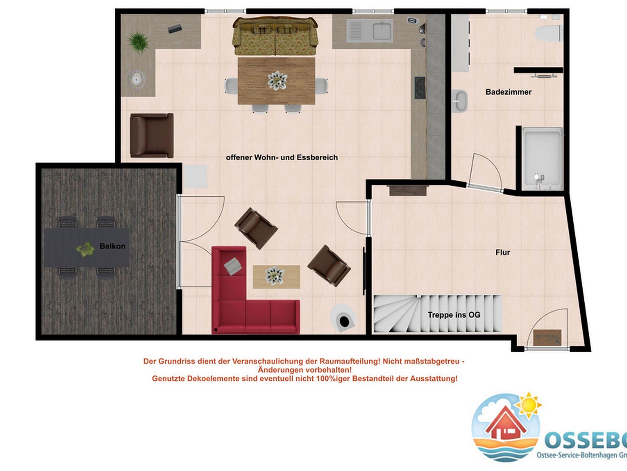Diese 3-Zimmer-Ferienwohnung mit verbundenem Wohn- und Essbereich eignet sich ideal für einen Urlaub an der Ostsee mit mehreren Gästen.