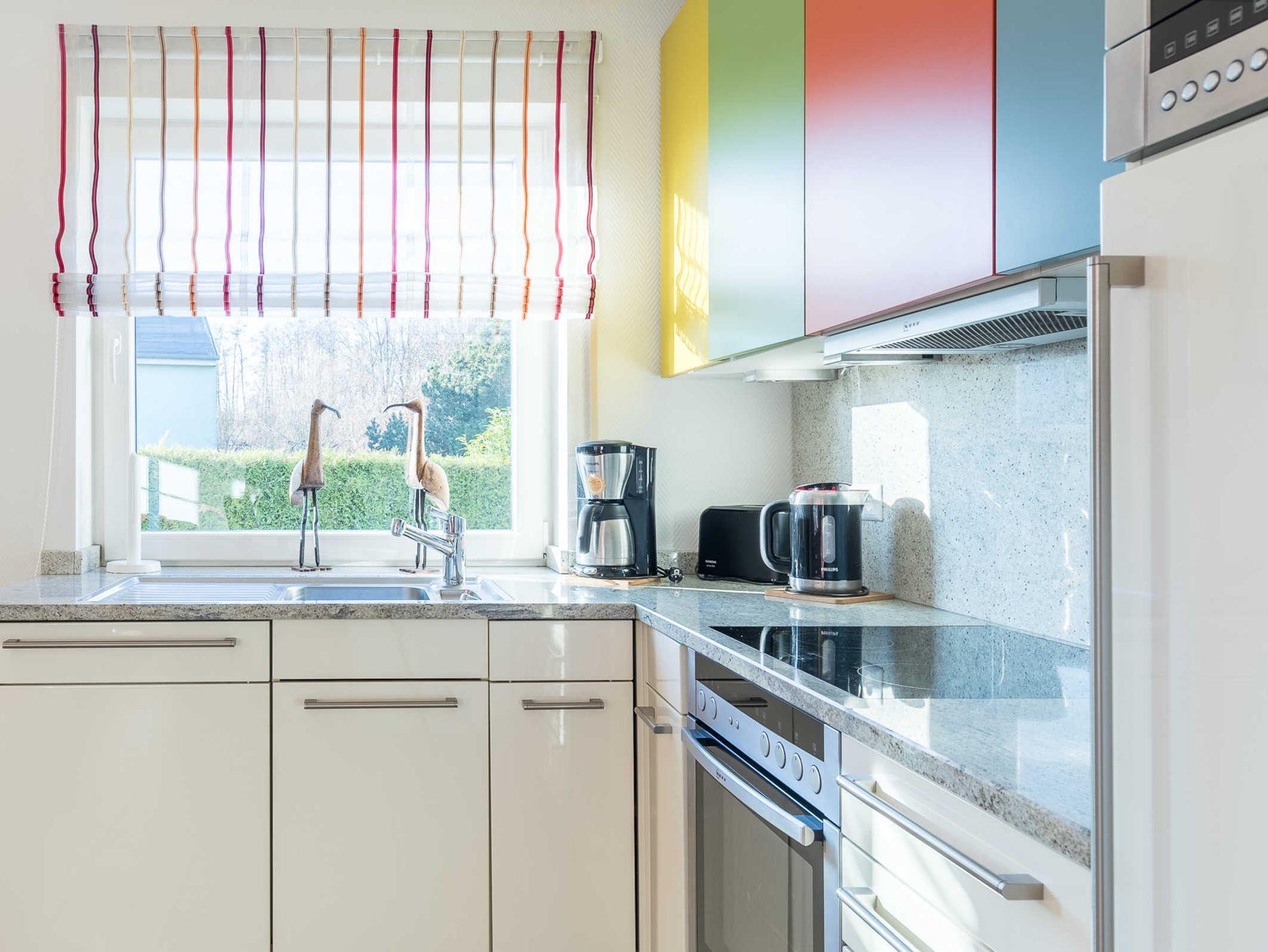 Die komfortable 3-Zimmer-Ferienwohnung im 1.OG für 4-5 Gäste + Kleinkind besticht durch schönes Design. Die modernen Räume verteilen sich auf 70qm über 2 Etagen.