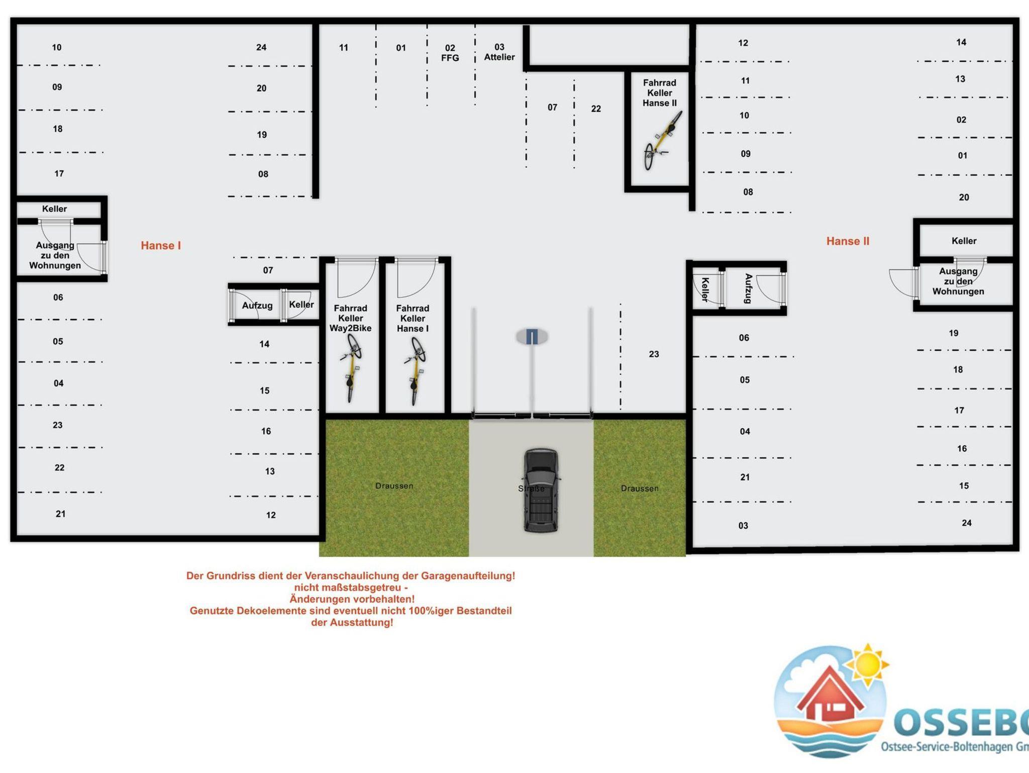 In der Tiefgarage befinden sich für Haus I und Haus II jeweils ein allgemeiner Fahrradkeller (begrenzter Platz). Zusätzlich gibt es einen wohnungseigenen Abstellraum auf dieser Ebene. Hier können Sie Ihre geliehenen oder mitgebrachten Fahrräder [&] Co. unterbringen.