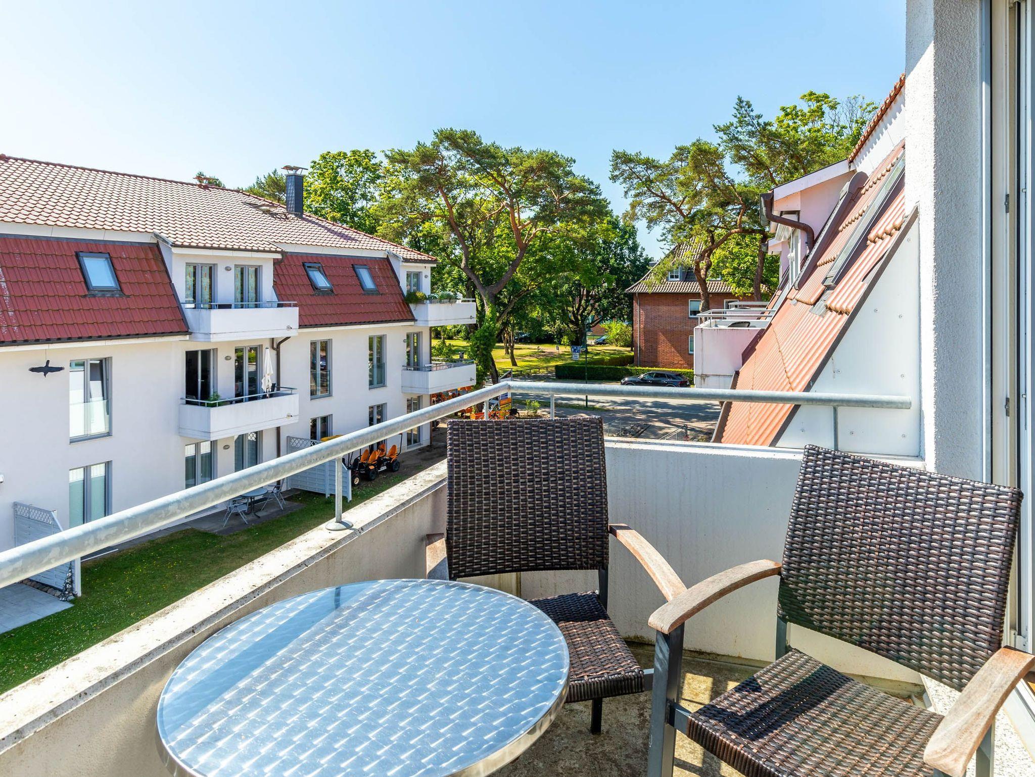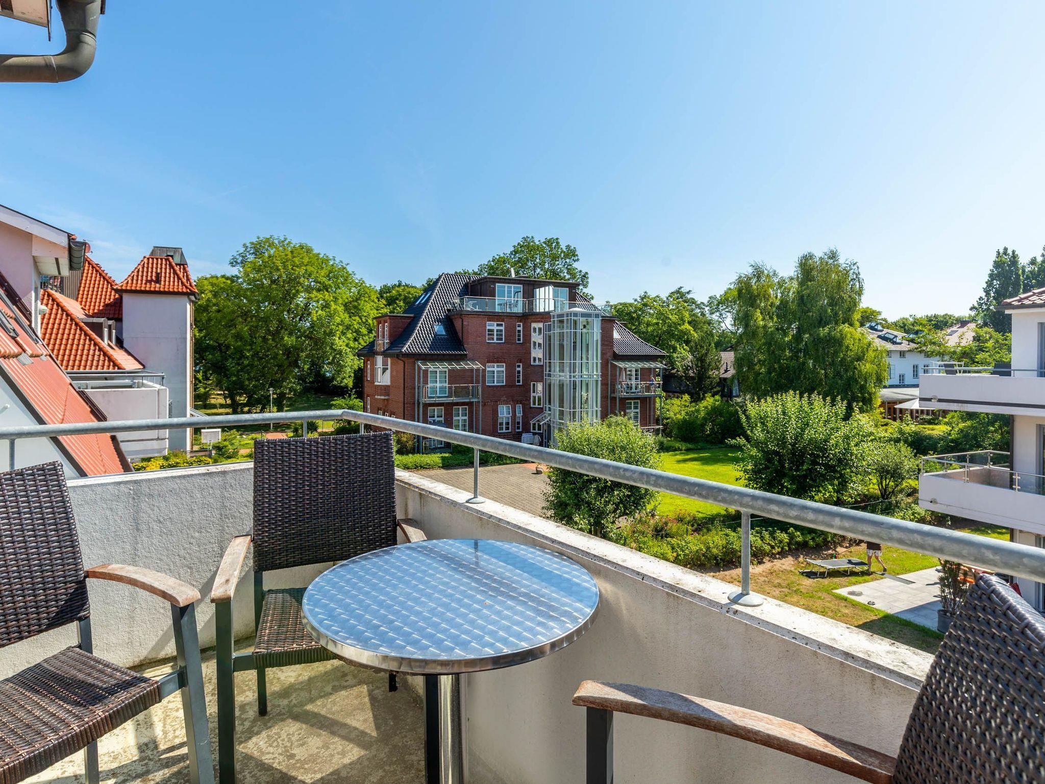 Nutzen Sie den möblierten Nordost-Balkon, welchen Sie vom Wohnzimmer aus begehen können, um die frische Ostseelust genießen zu können.