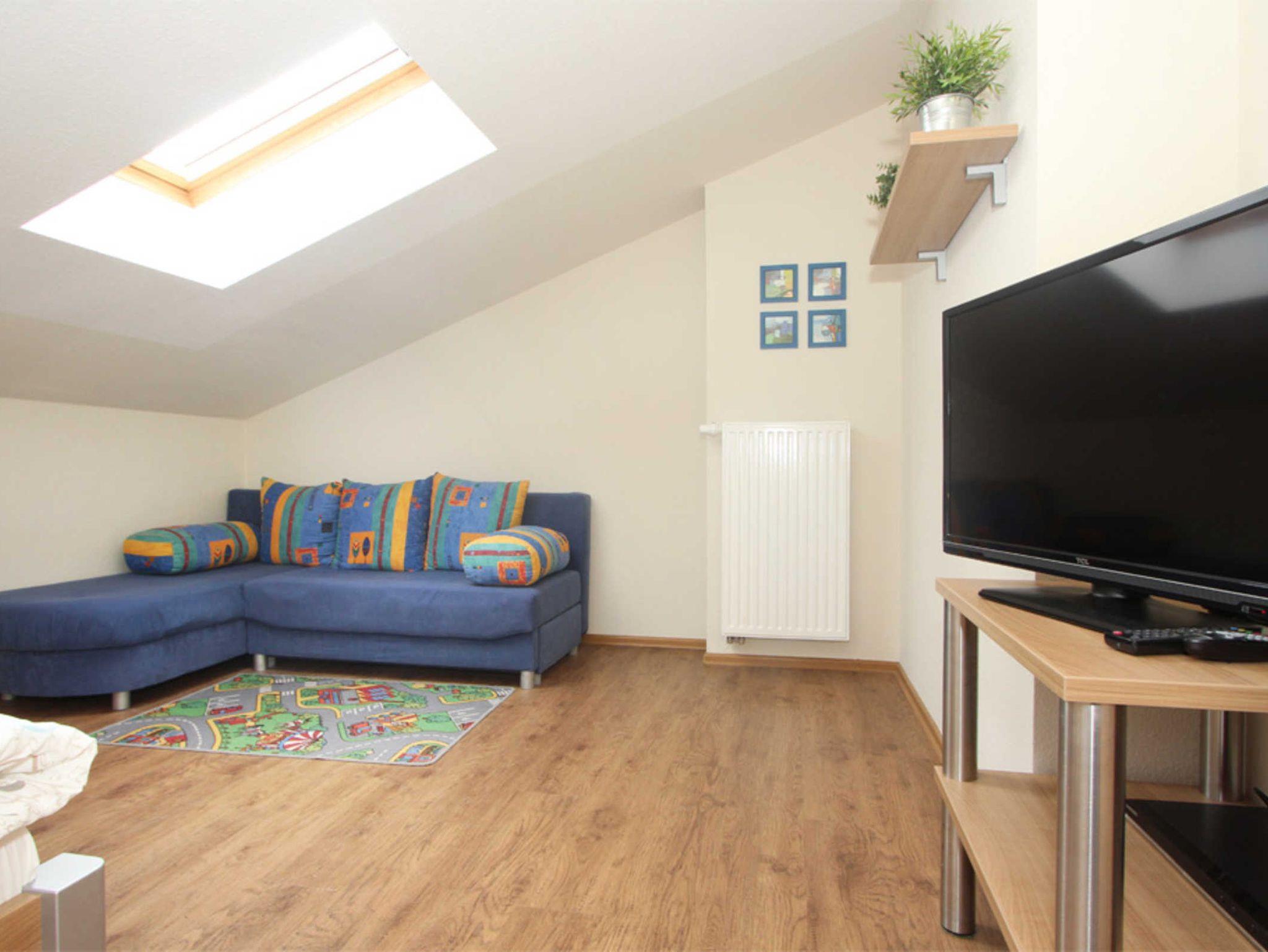Die beliebte 3-Zimmer-Ferienwohnung befindet sich im 2.OG und bietet über 2 Ebenen eine familienfreundliche Ausstattung für 2 bis 5 Personen.