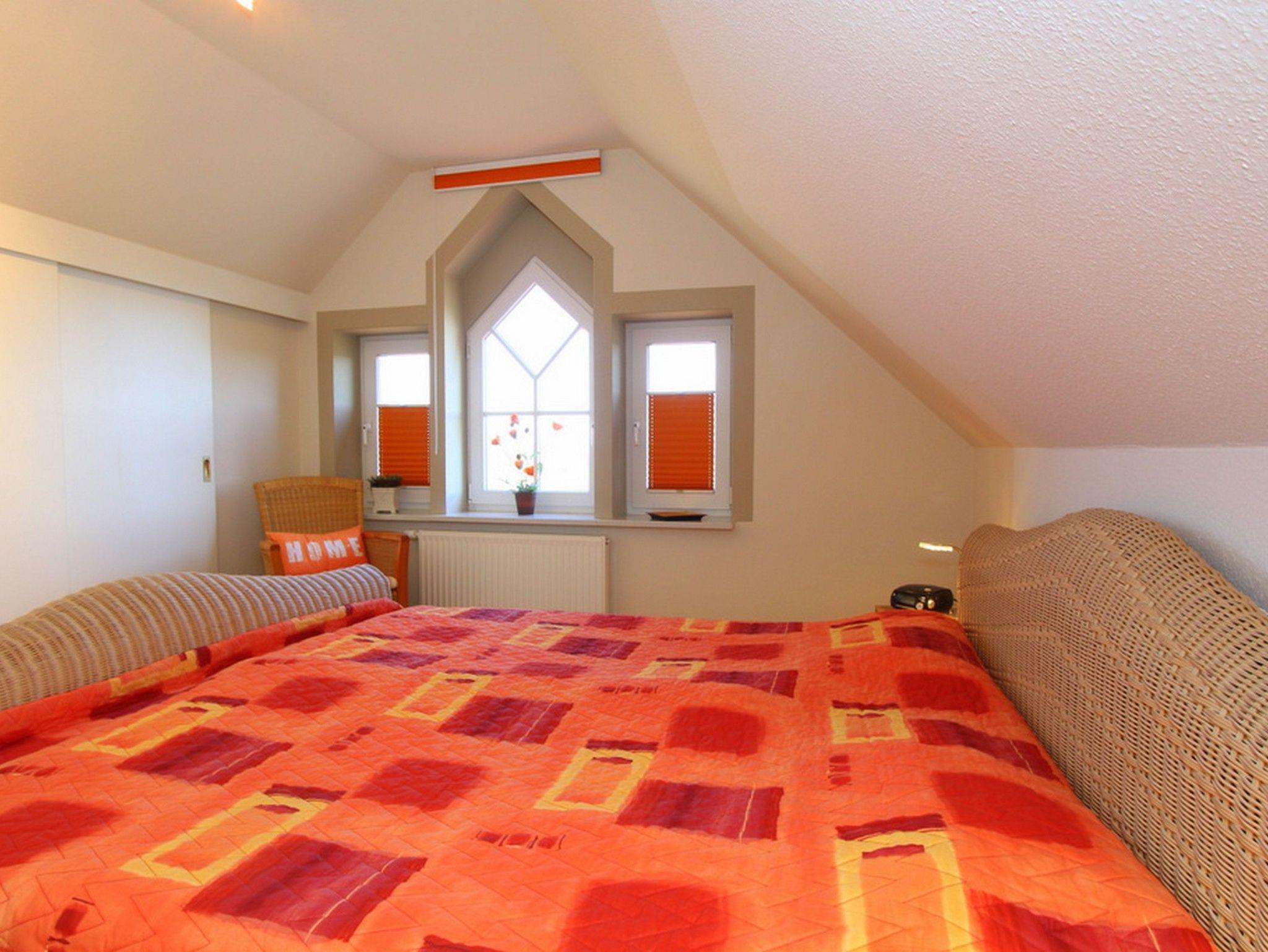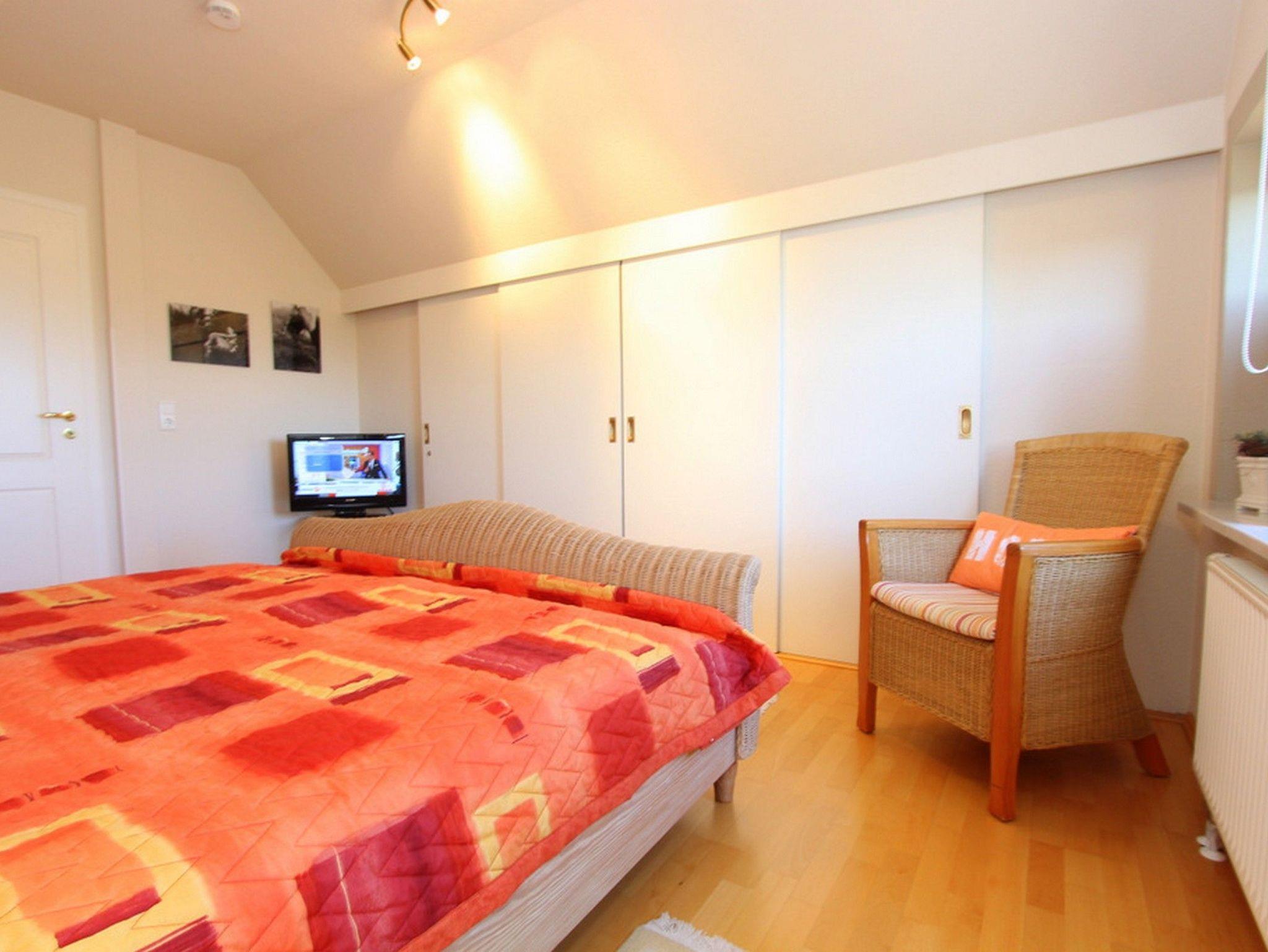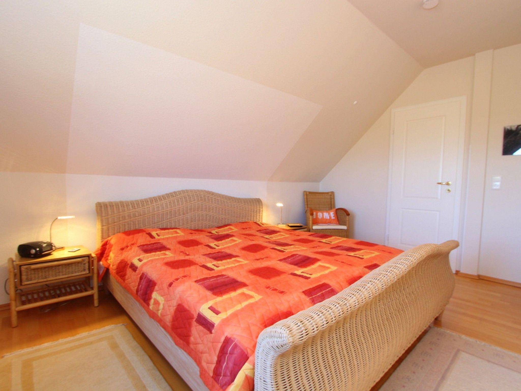 In der 2. Wohnebene, im DG befindet sich das Schlafzimmer mit einem stattlichen Doppelbett ? auch von dort blickt man auf die Ostsee! Ein zweiter TV mit integriertem DVD-Player sowie ein Kleiderschrank komplettieren diese Räumlichkeit.
