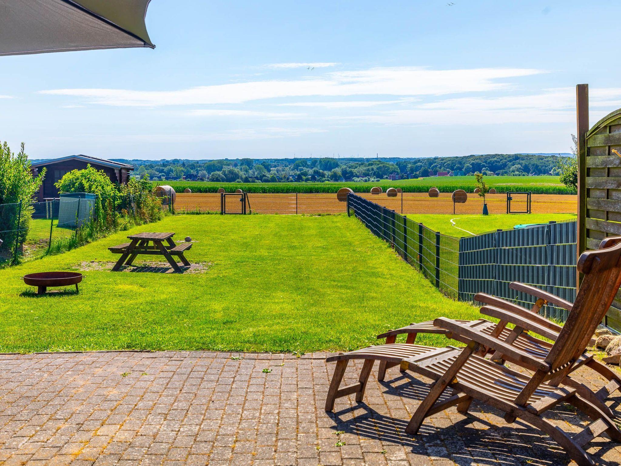 Der große eingezäunte Garten mit schöner möblierter Südwest-Terrasse ist für alle Gäste und Haustiere ein Paradies.