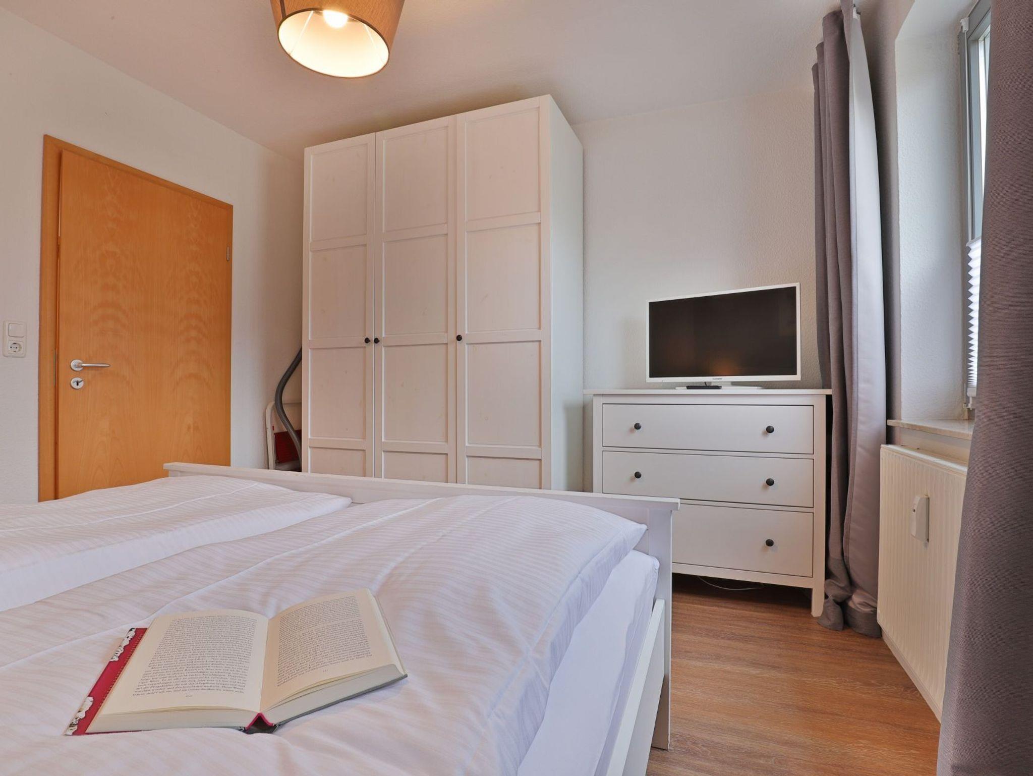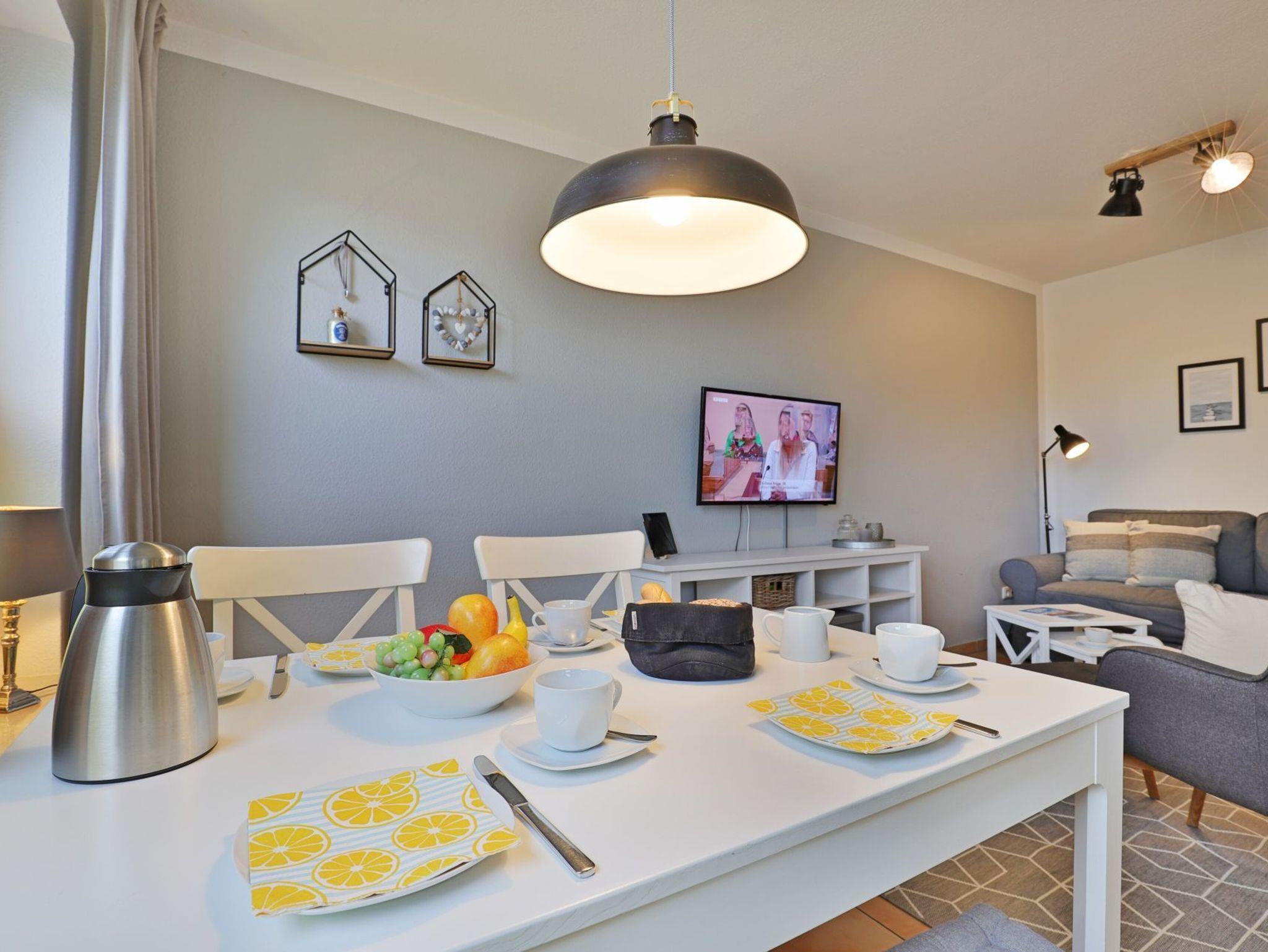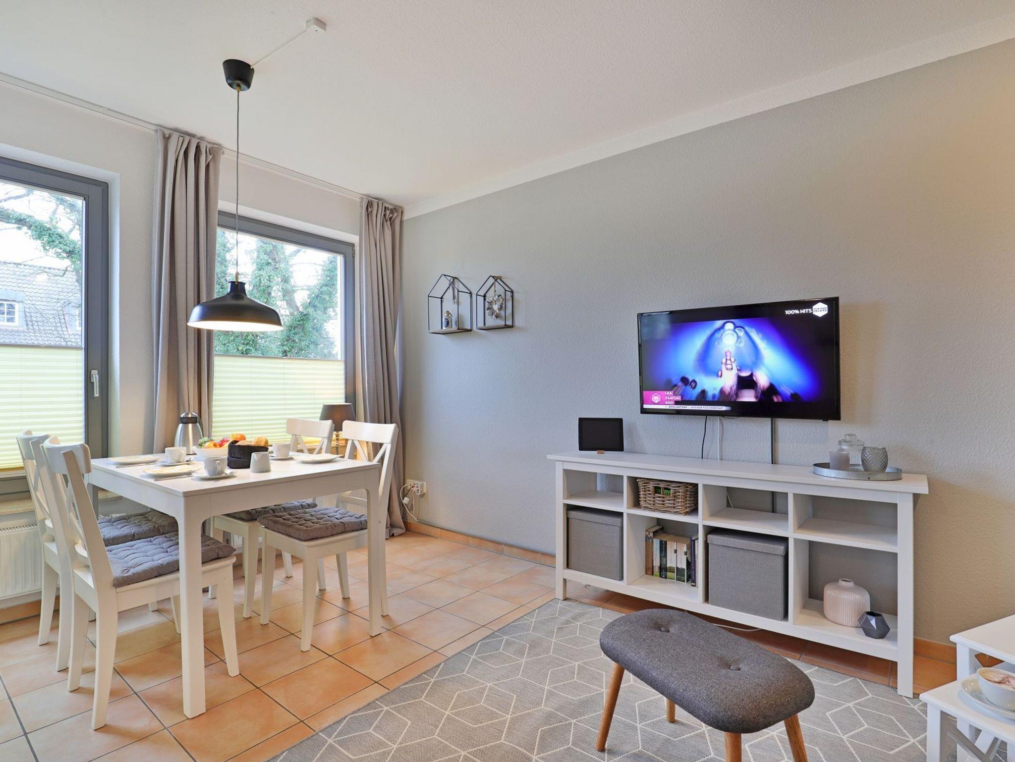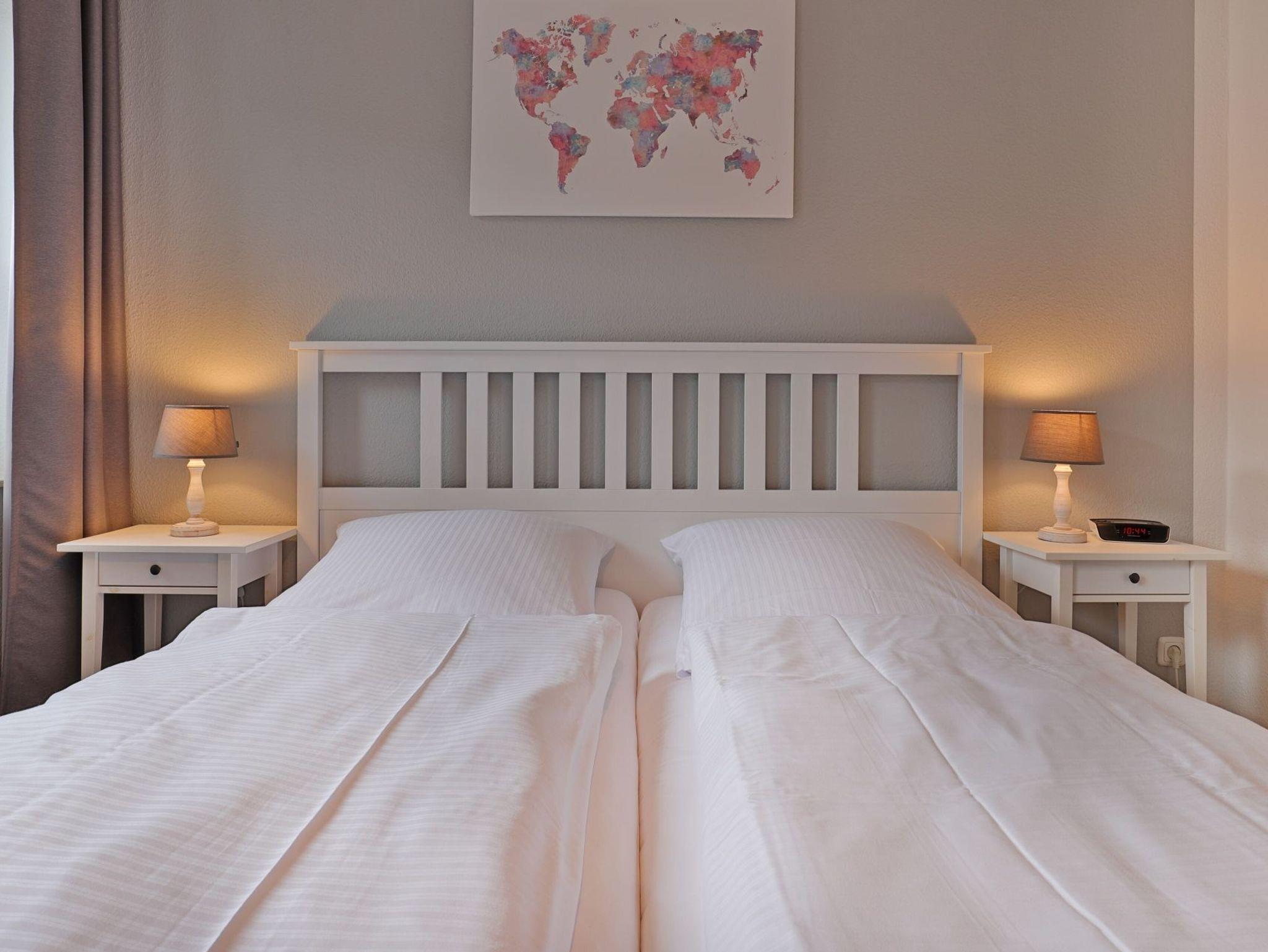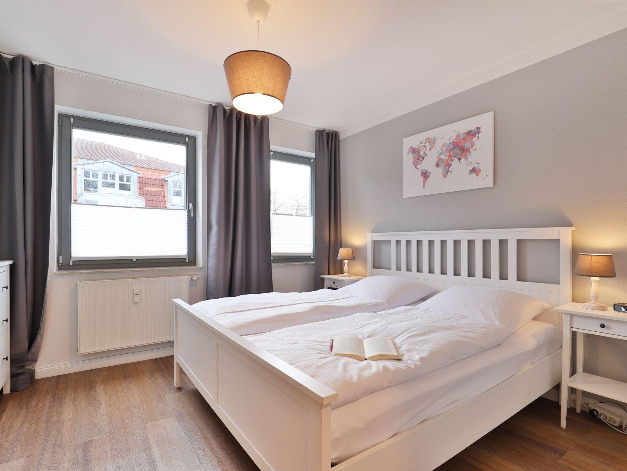 Nur 70 Meter zum Strand liegt das schicke 2- Zimmer Ferienappartement mit saisonal möbliertem Balkon. Sie wohnen im 1. Obergeschoss des Hauses. Die geräumige Wohnfläche lädt mit 50qm zu einem erholsamen Aufenthalt für maximal 4 Personen ein. Es empfängt Sie ein sehr geschmackvoll möbliertes Wohnzimmer mit einem Komfort Sofa, das auf eine Größe von 160 x 200cm umgewandelt werden kann und somit zwei weitere Schlafplätze bietet. Des Weiteren sind im schönen, lichtdurchfluteten Wohnbereich ein gemütlicher Ohrensessel und ein großer Esstisch vorhanden. Moderne Unterhaltungselektronik bietet ein Flachbildfernseher. Die separate Küche ist gut ausgestattet mit Ceranherd, Backofen, Dunstabzugshaube, Spülmaschine, Wasserkocher, Toaster, Kaffeemaschine usw. Somit bietet die Ferienwohnung Hansehaus 08 ideale Voraussetzungen für Gäste, die sich eigenständig mit Urlaubsmahlzeiten versorgen möchten. Einladend ist auch das separate Schlafzimmer, welches mit einem Doppelbett, einem großen Kleiderschrank sowie einem weiteren Fernseher eingerichtet ist. Optional sind Bettwäsche und Handtücher gegen Gebühr zu buchbar. Das innenliegende Duschbad mit Waschtisch und WC ist hell gefliest. Allen Hausgästen stehen zudem Waschmaschine und Wäschetrockner gegen Gebühr zur Verfügung. Für Ihren PKW ist ein Stellplatz in der Tiefgarage reserviert. Bitte beachten Sie, dass in der Nichtraucherwohnung keine Haustiere mitgebracht werden dürfen. Sie wohnen zentral, nah zur Mittelpromenade.