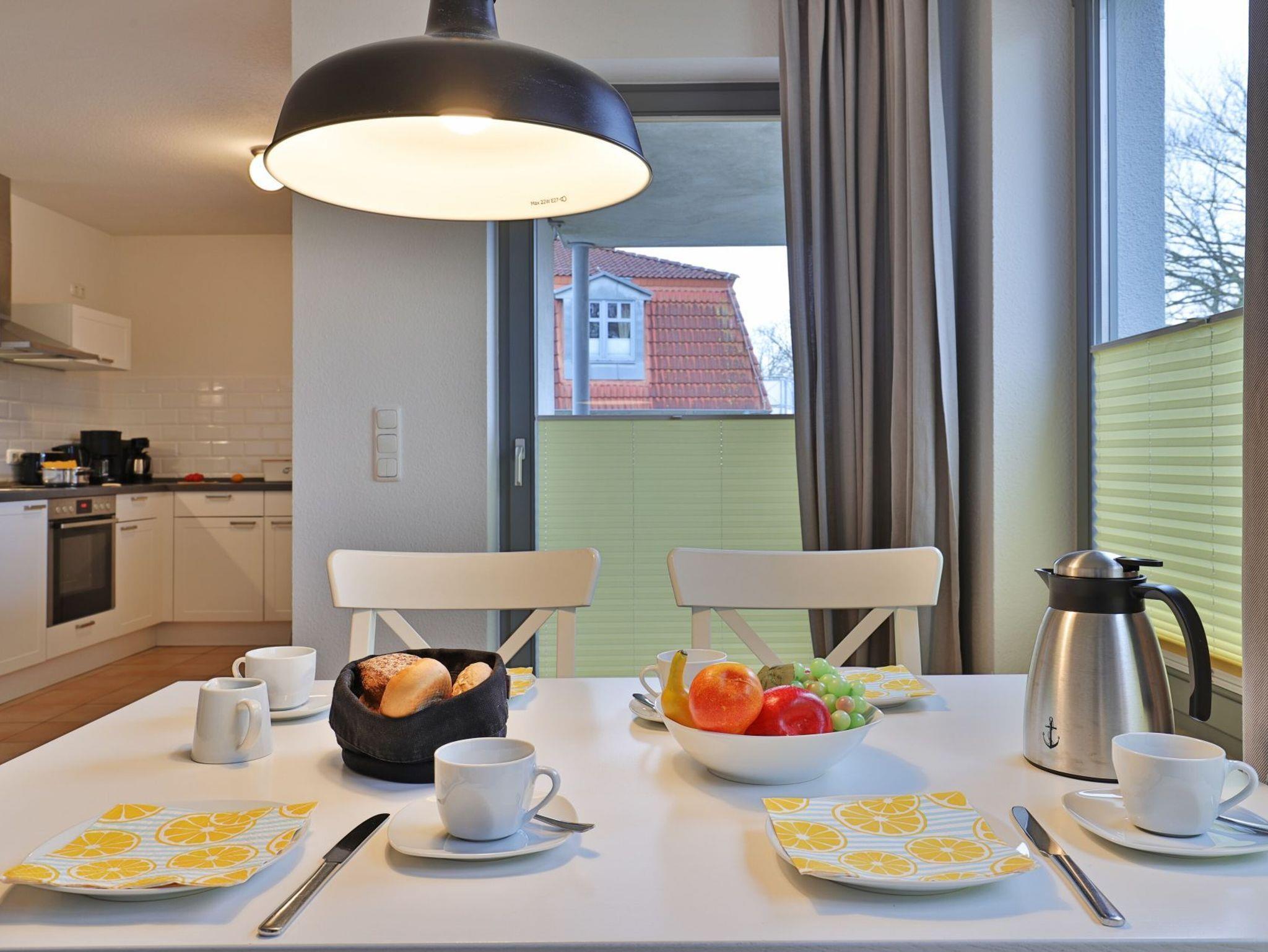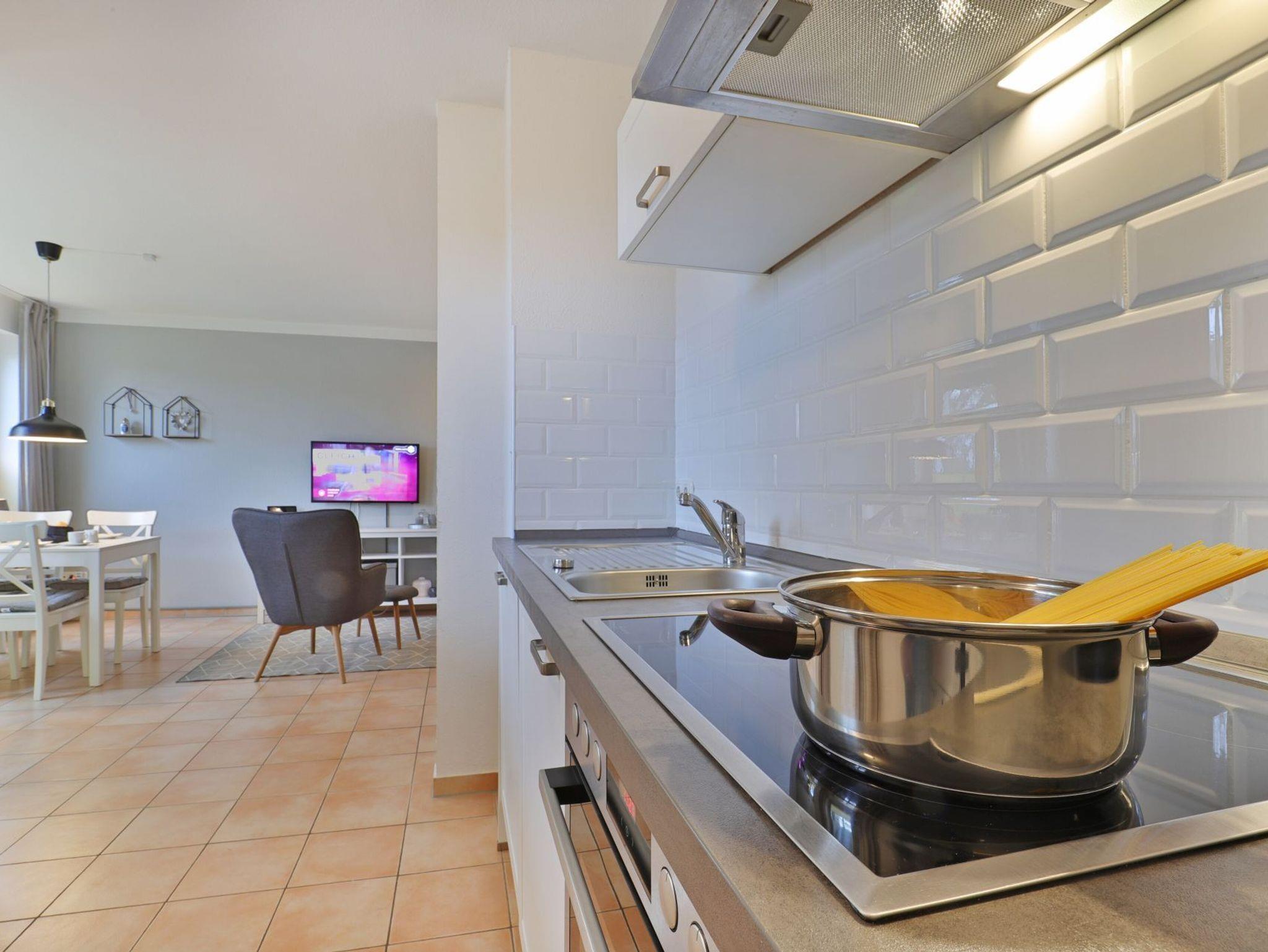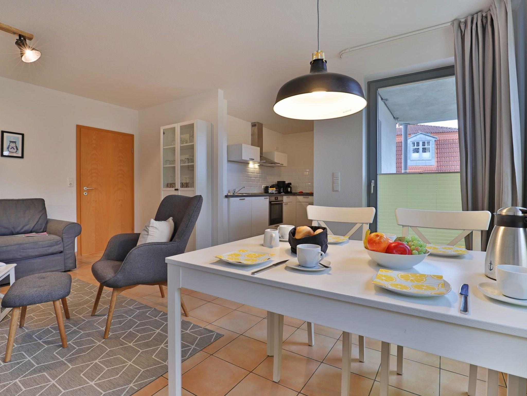 Modern eingerichtete 2-Zimmer-Ferienwohnung in Boltenhagen, nur 70 Meter vom Ostseestrand entfernt mit Balkon und Tiefgaragenplatz.