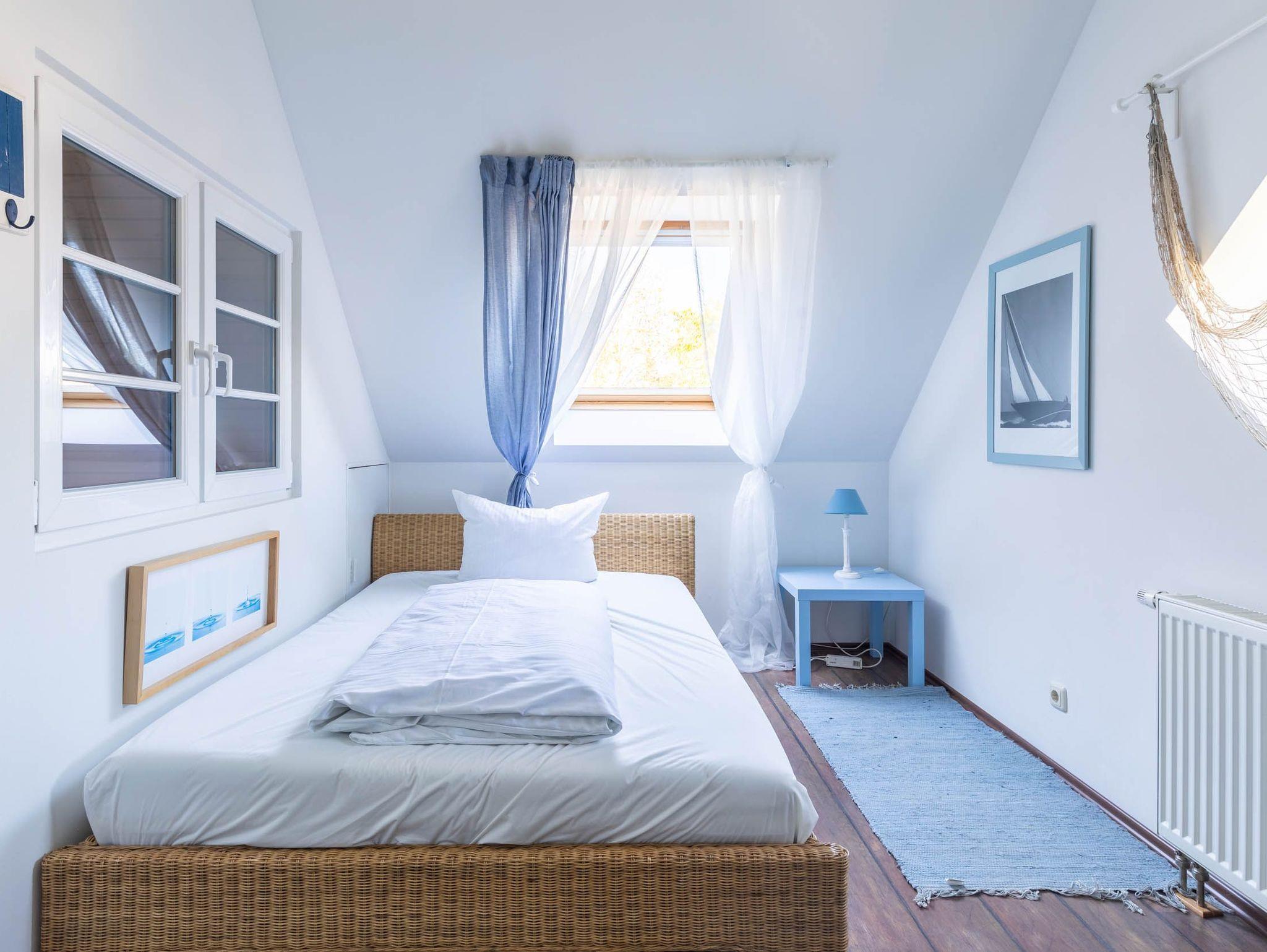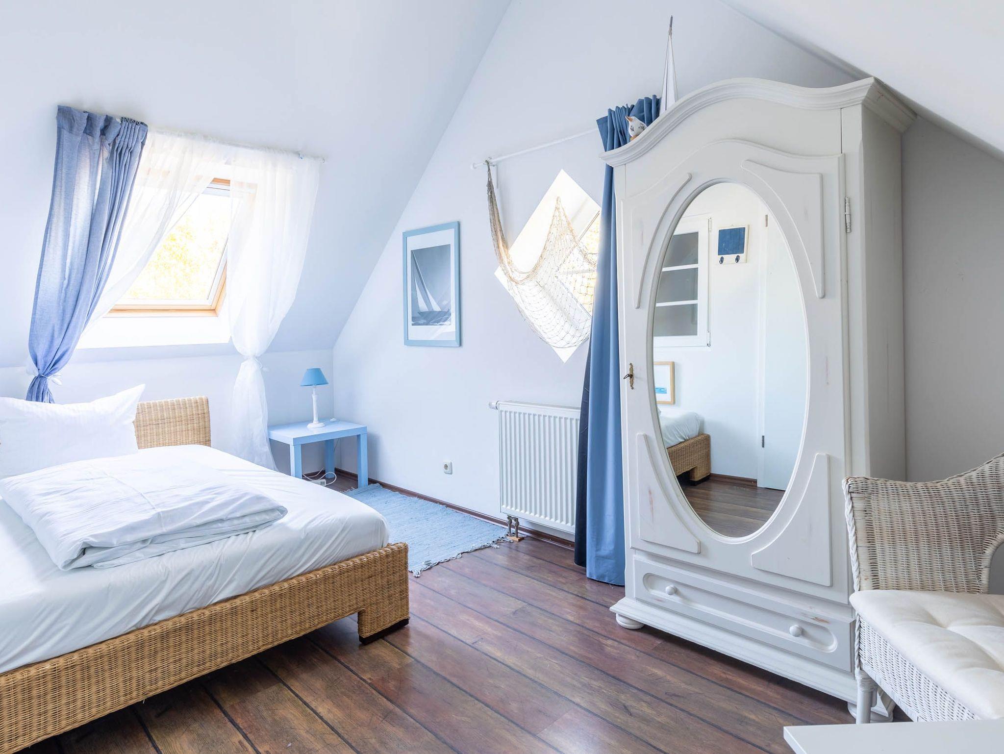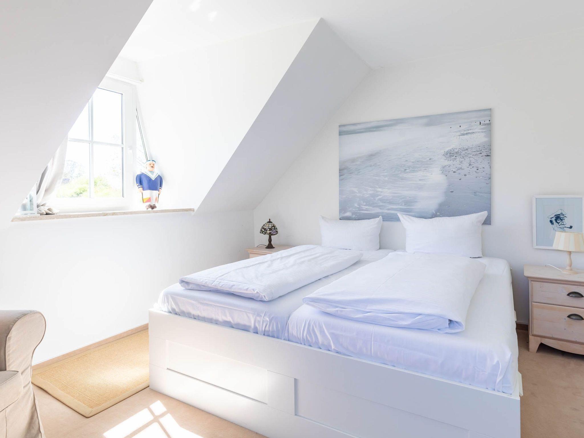 Das vierte Schlafzimmer liegt im Dachgeschoss, es ist mit einem französischen Doppelbett (140x200cm), einem kleinen Kleiderschrank sowie SAT-TV ausgestattet.