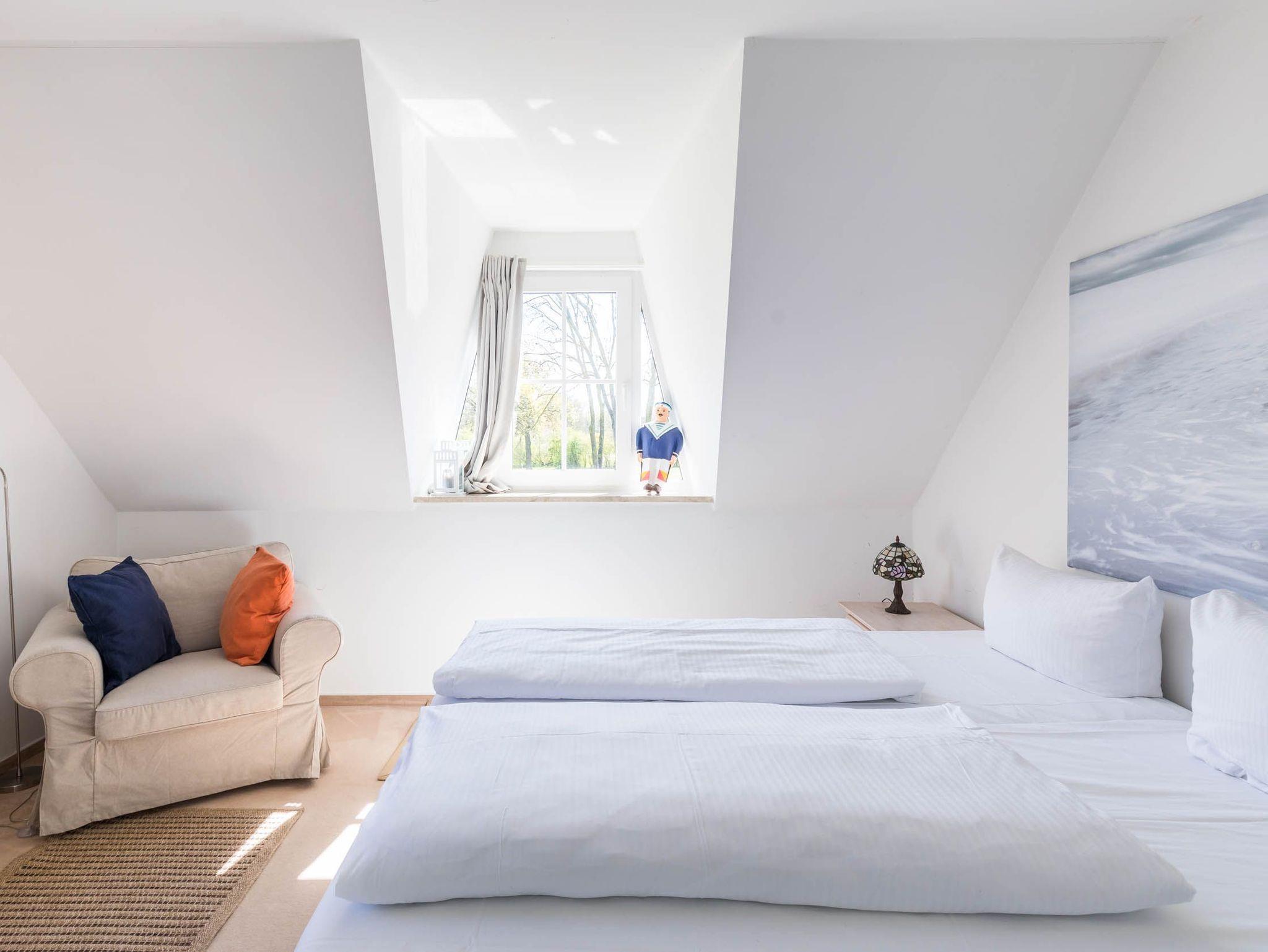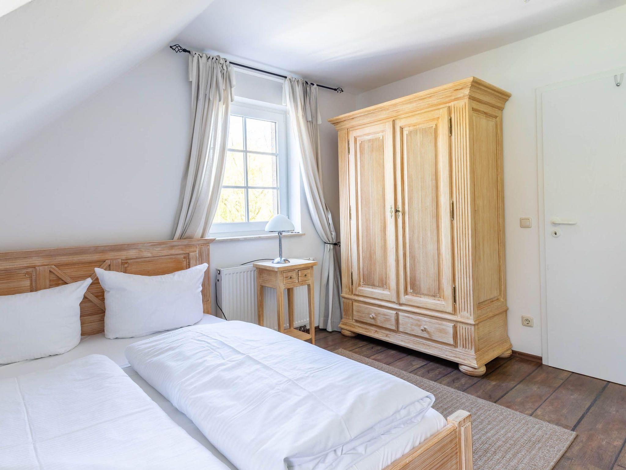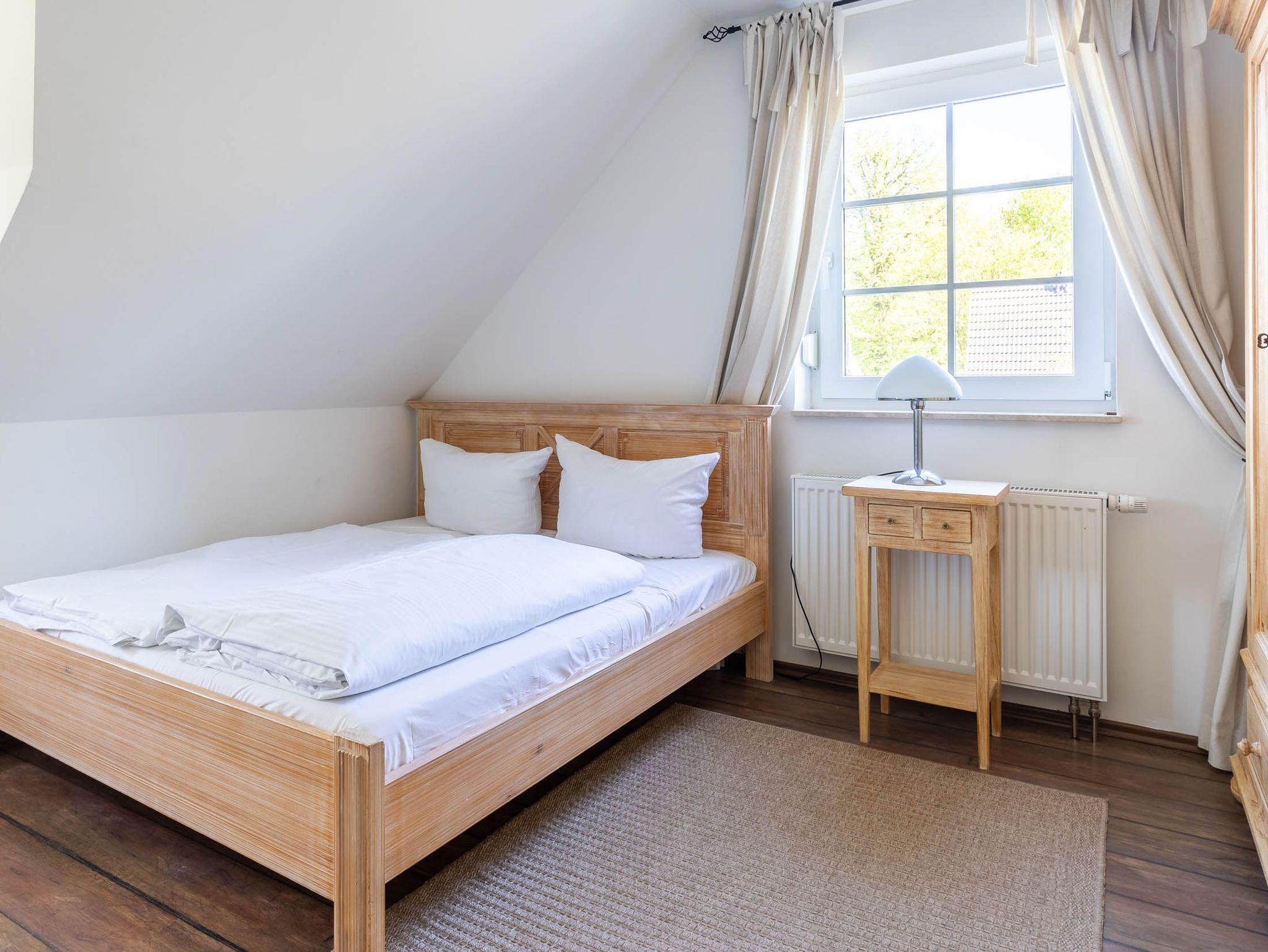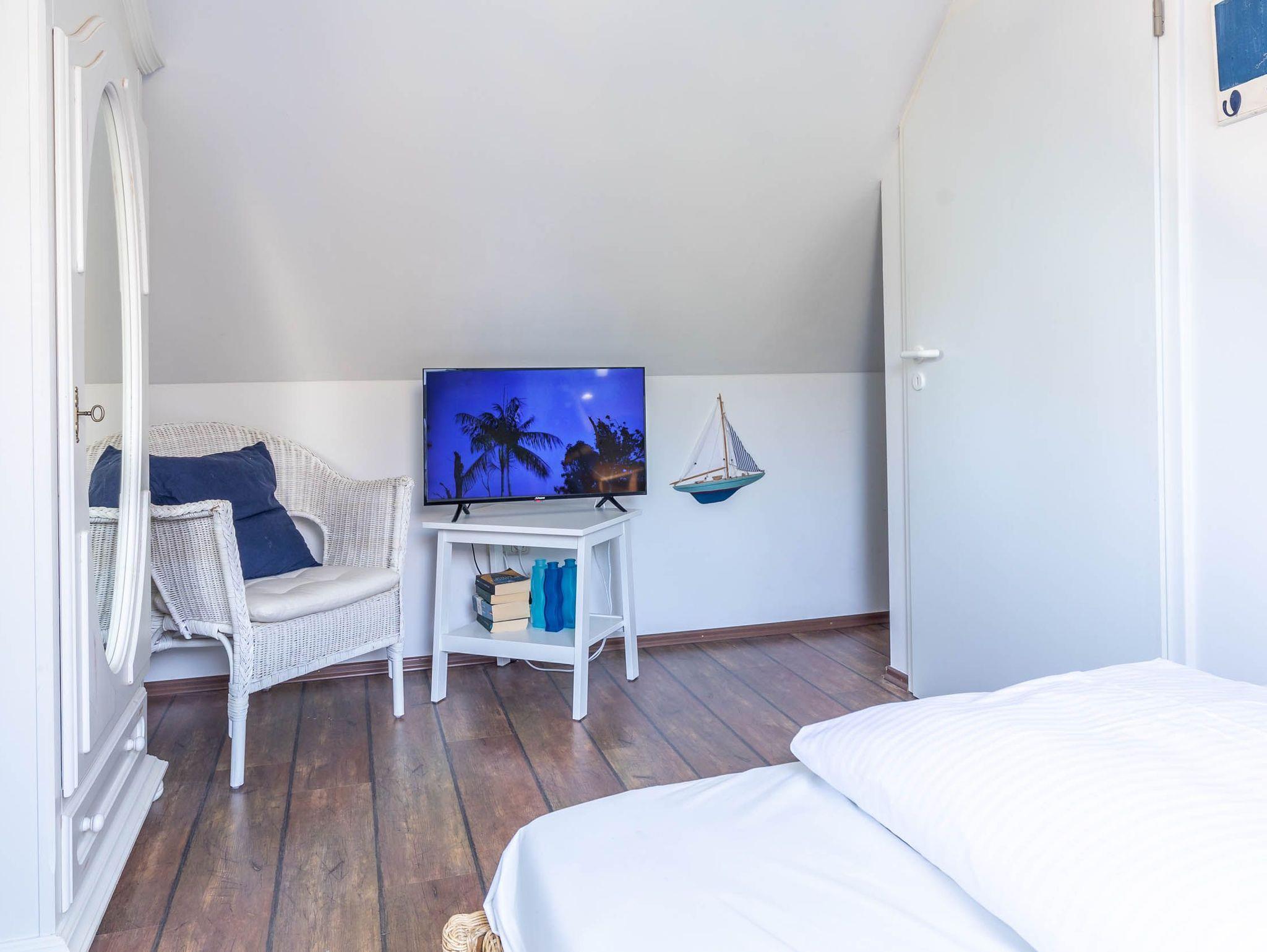 Das vierte Schlafzimmer liegt im Dachgeschoss, es ist mit einem französischen Doppelbett (140x200cm), einem kleinen Kleiderschrank sowie SAT-TV ausgestattet.