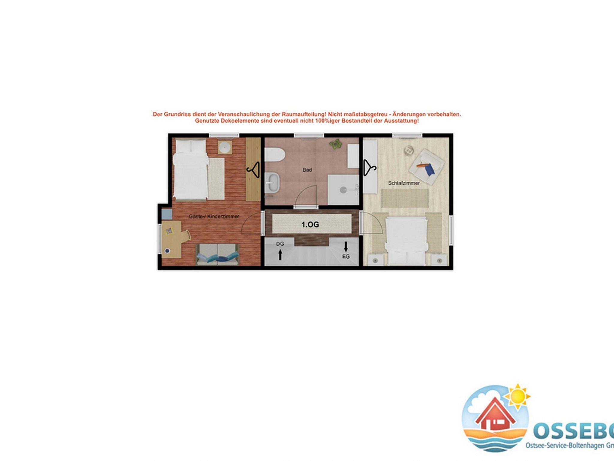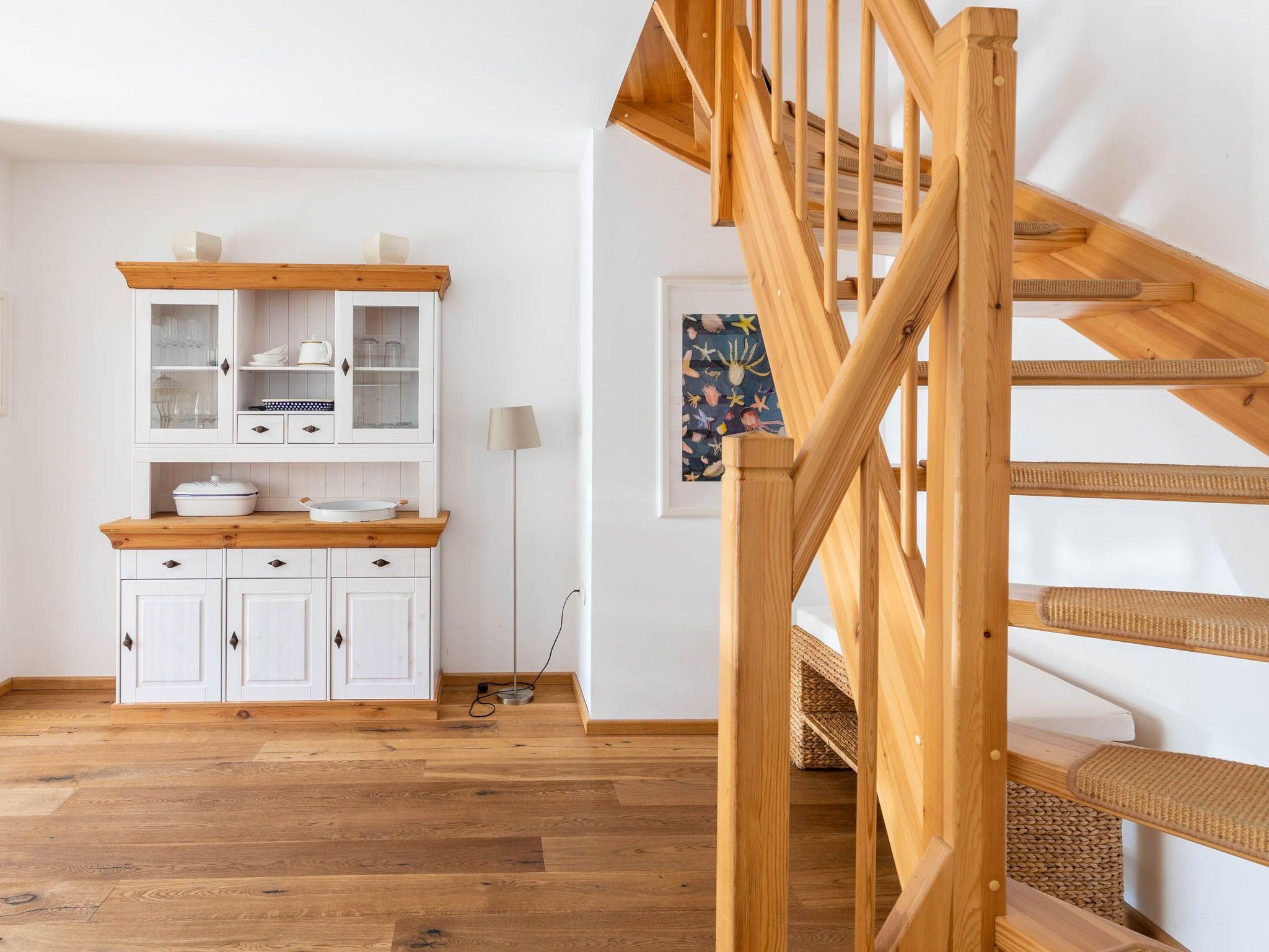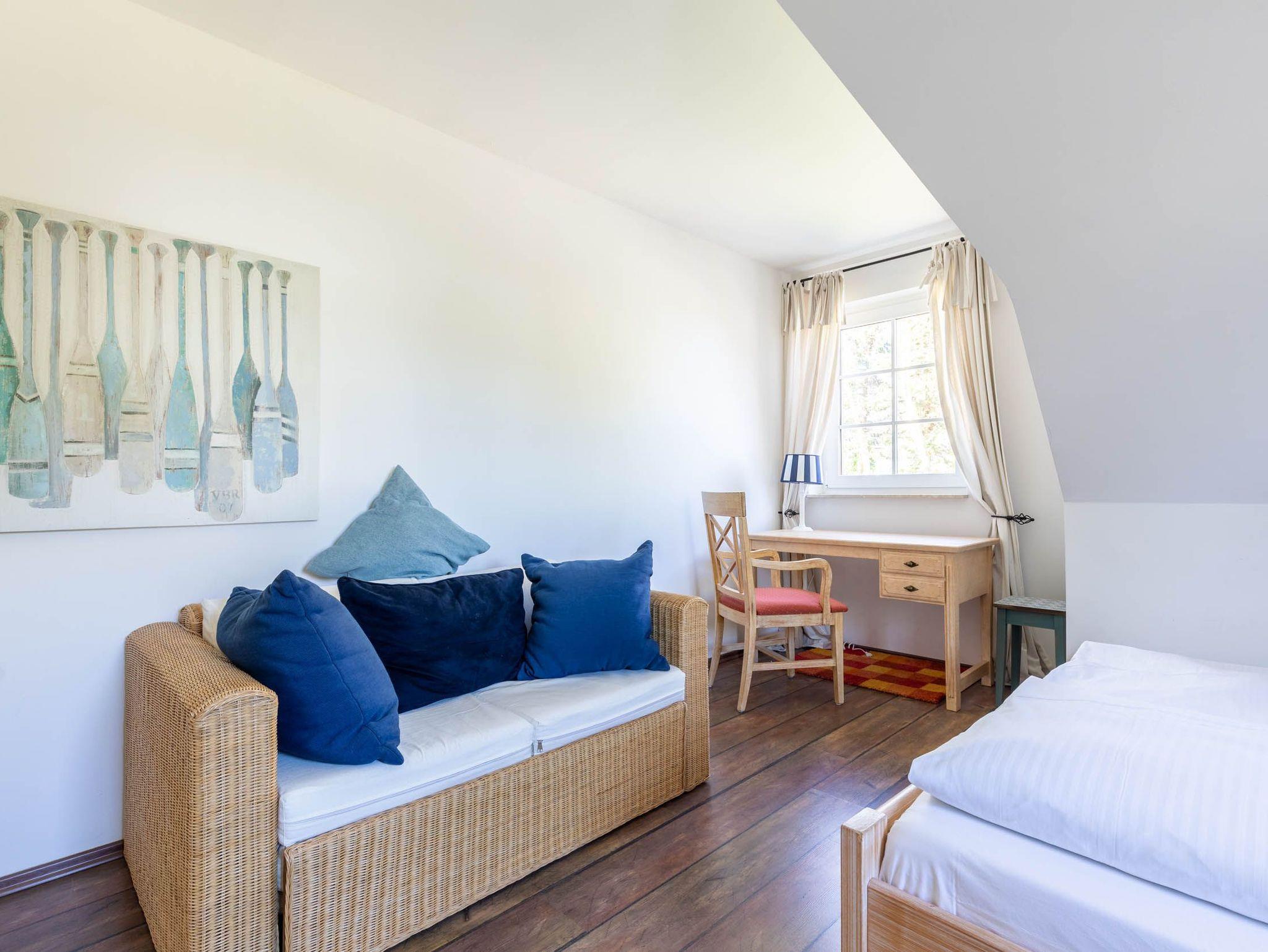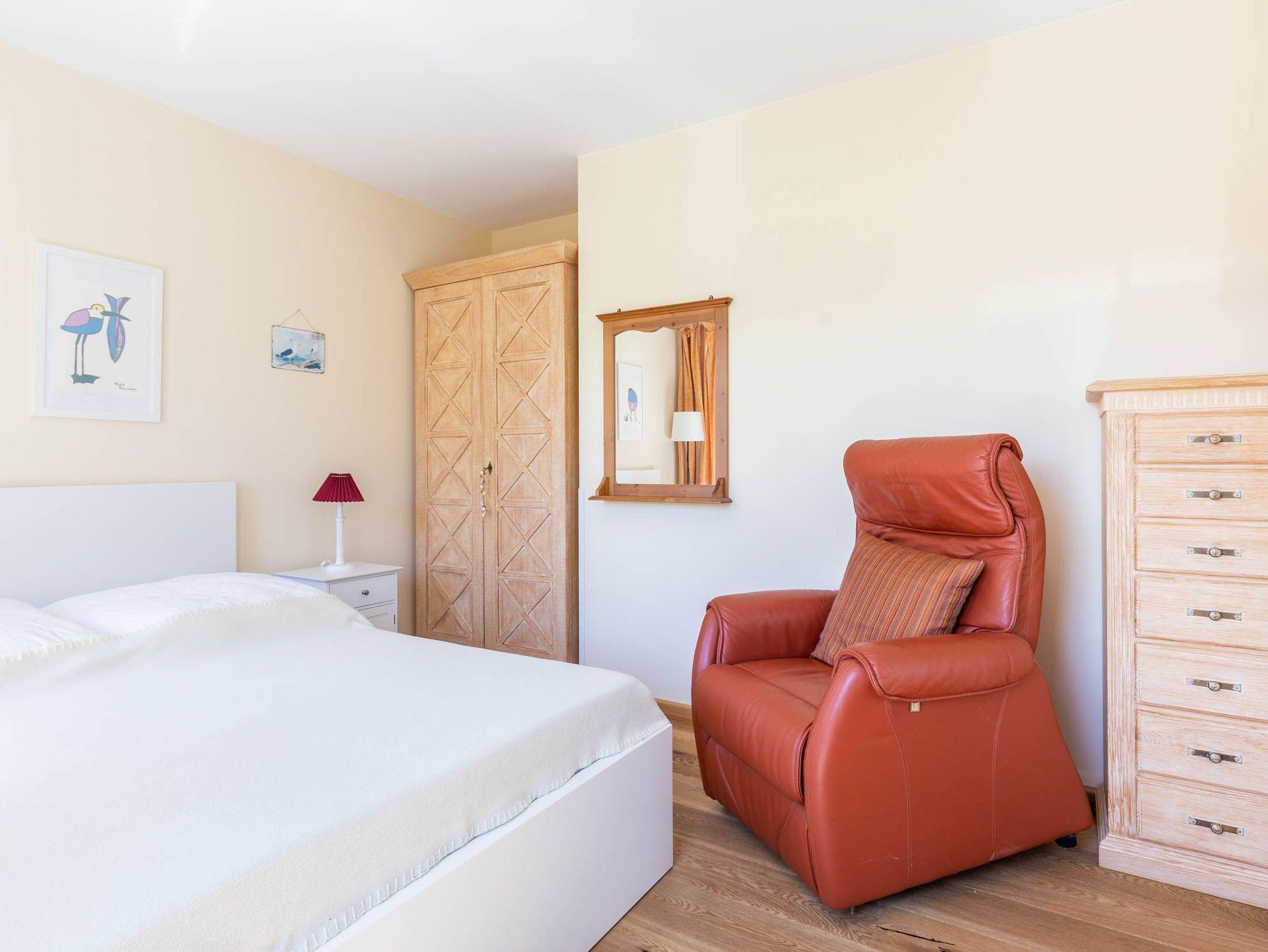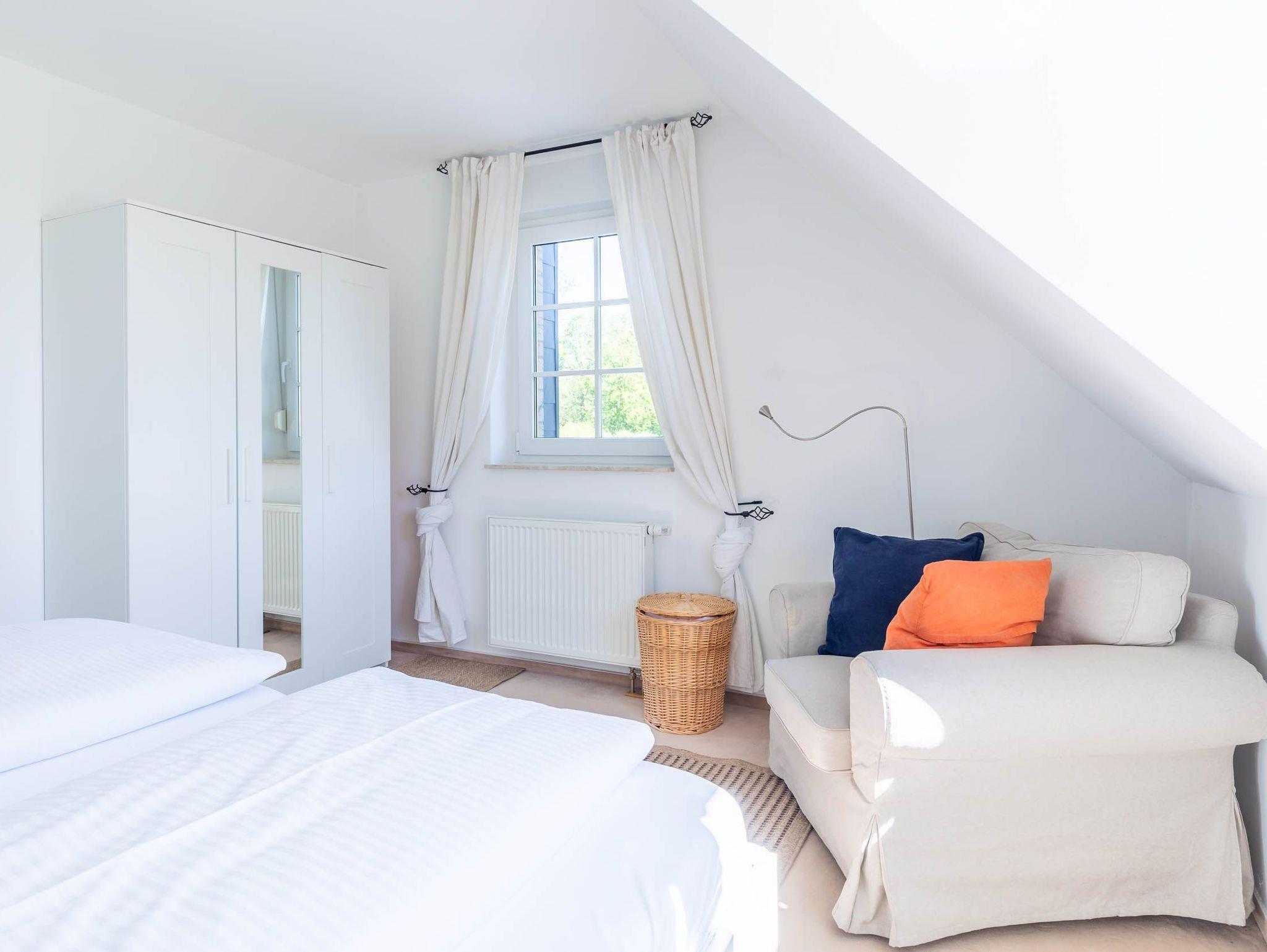 Im 1. Obergeschoss finden Sie zwei weitere Schlafräume mit jeweils einem Doppelbett (1 x 155x200cm sowie 1 x 180x200cm), Kleiderschrank und Sitzmöbel. Weiterhin befindet sich in einem dieser Schlafräume ein Schreibtisch.