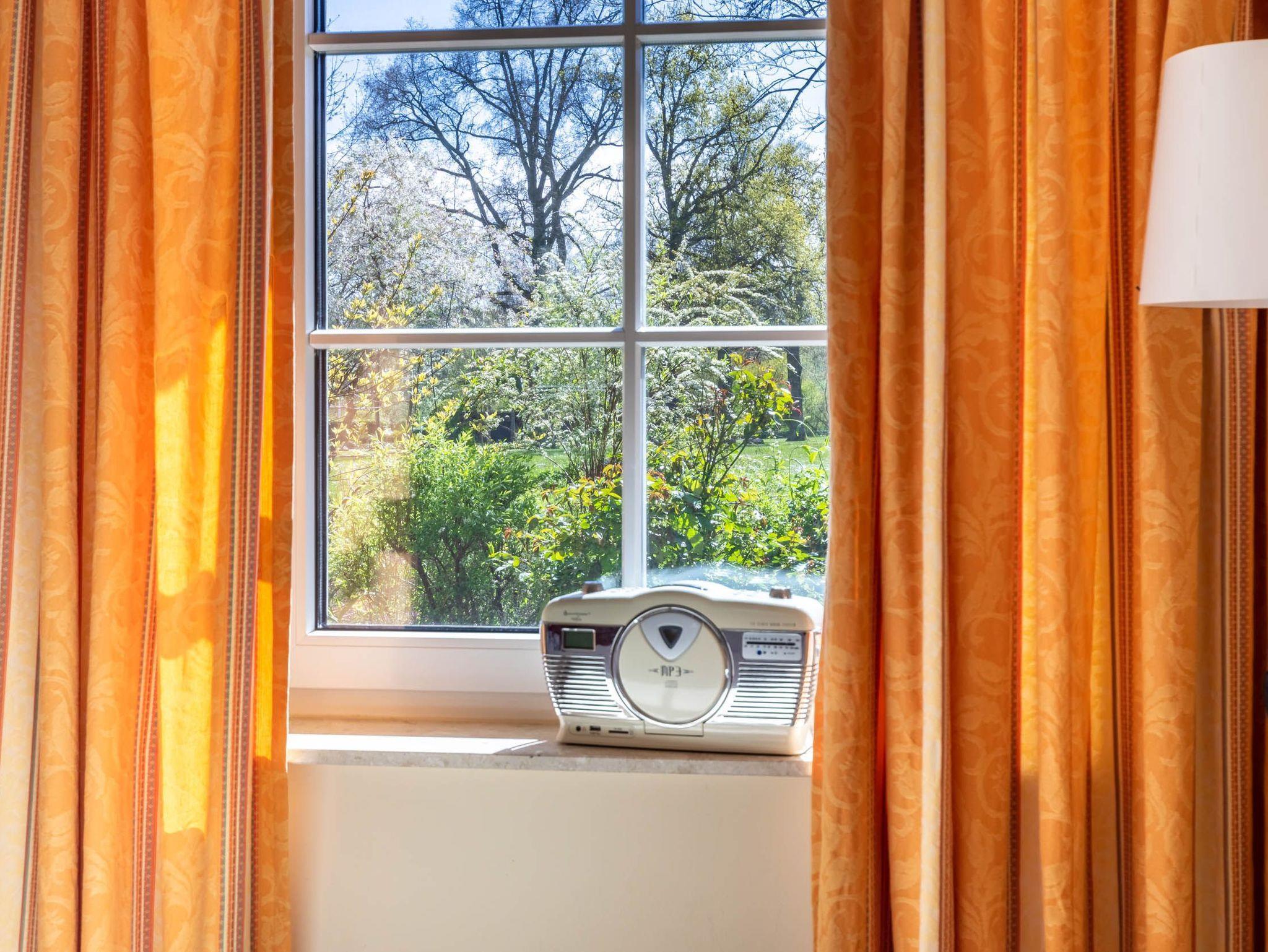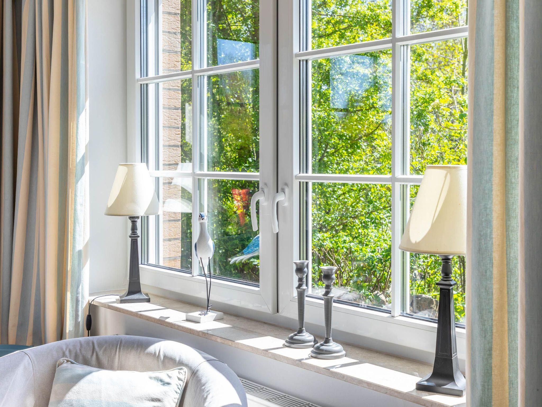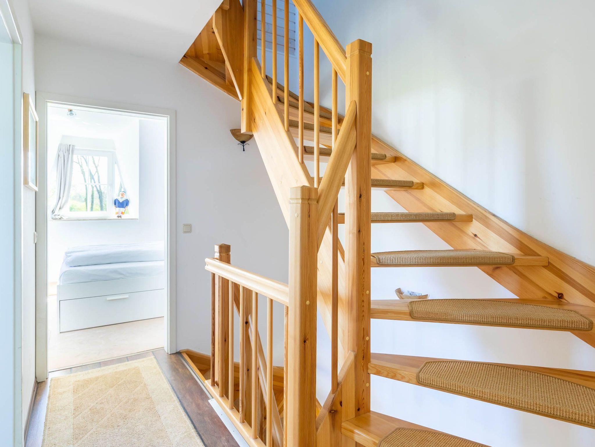 Die Fenster vom Wohnbereich und Schlafzimmer im EG sind mit Außenrollos ausgestattet. Auch die oberen Schlafmöglichkeiten lassen sich gut mit Vorhängen u.ä. abdunkeln. Für unsere kleinsten Gäste steht ein Hochstuhl kostenlos im Haus zur Verfügung. Wenn Sie sich ein Reisebettchen mitbringen oder bei uns eines gegen Gebühr ausleihen, können Sie dieses in sämtlichen Räumen im Haus aufstellen, da überall ausreichend Platz dafür ist.
