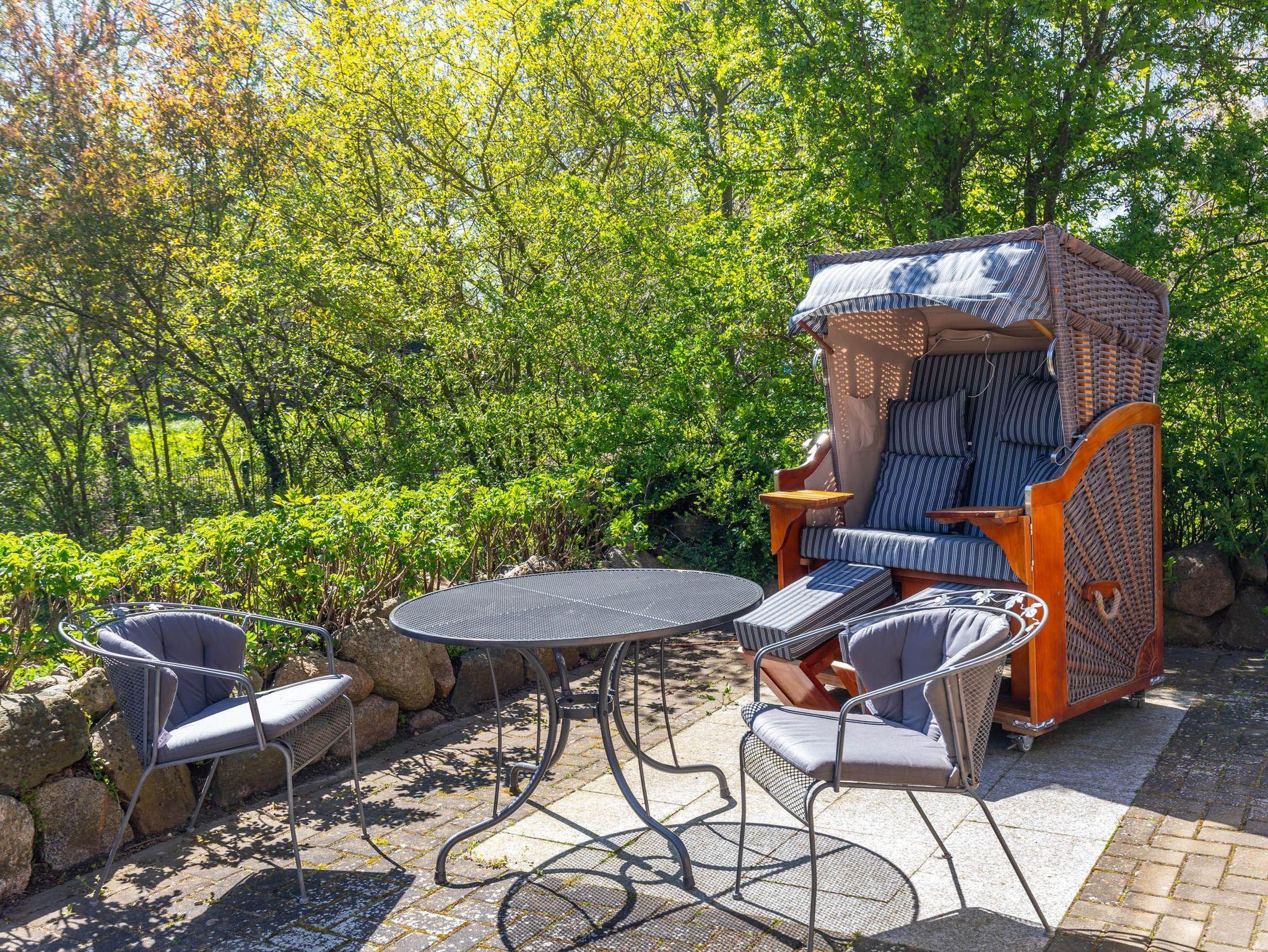 Der gemütliche Terrassenbereich wird durch exklusive Gartenmöbel sowie einen eigenen Strandkorb abgerundet. Das Ferienhaus AHOI lässt mit seinem unvergleichlichen Ambiente keine Wünsche offen und garantiert erholsame Urlaubstage.