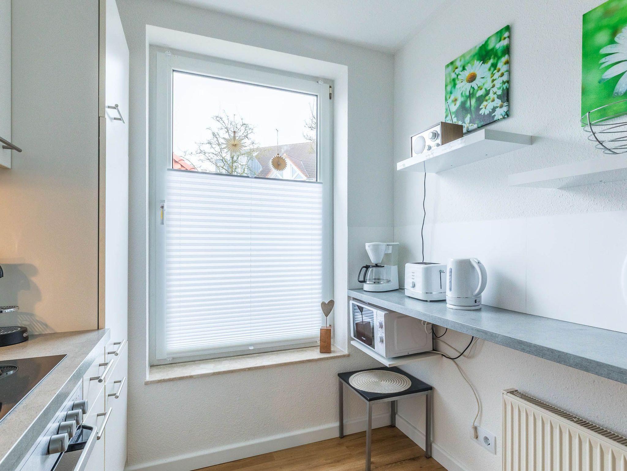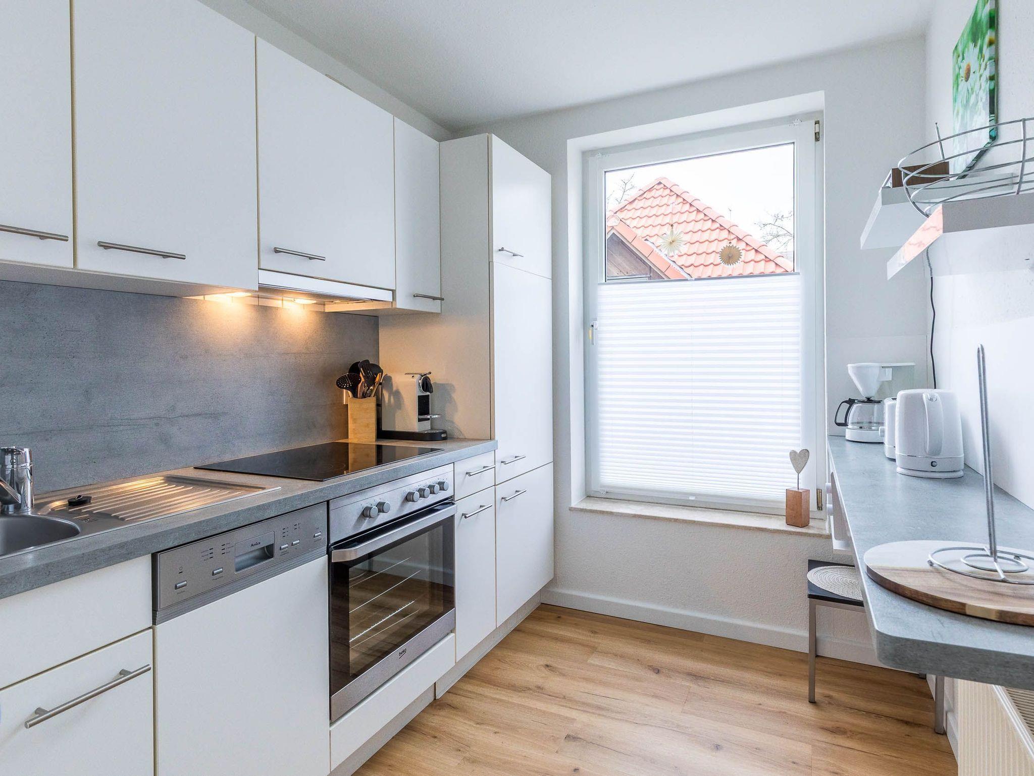 Die komplett eingerichtete separate Küche bietet mit Geschirrspüler, Herd/ Backofen, Kühlschrank mit Gefrierfach sowie einer umfangreichen Koch- und Geschirrausstattung alles, wie Sie es von Zuhause gewohnt sind. Für den Kaffeegenuß sorgt neben einem Filterkaffeeautomaten auch eine Nespresso-Kapselmaschine.