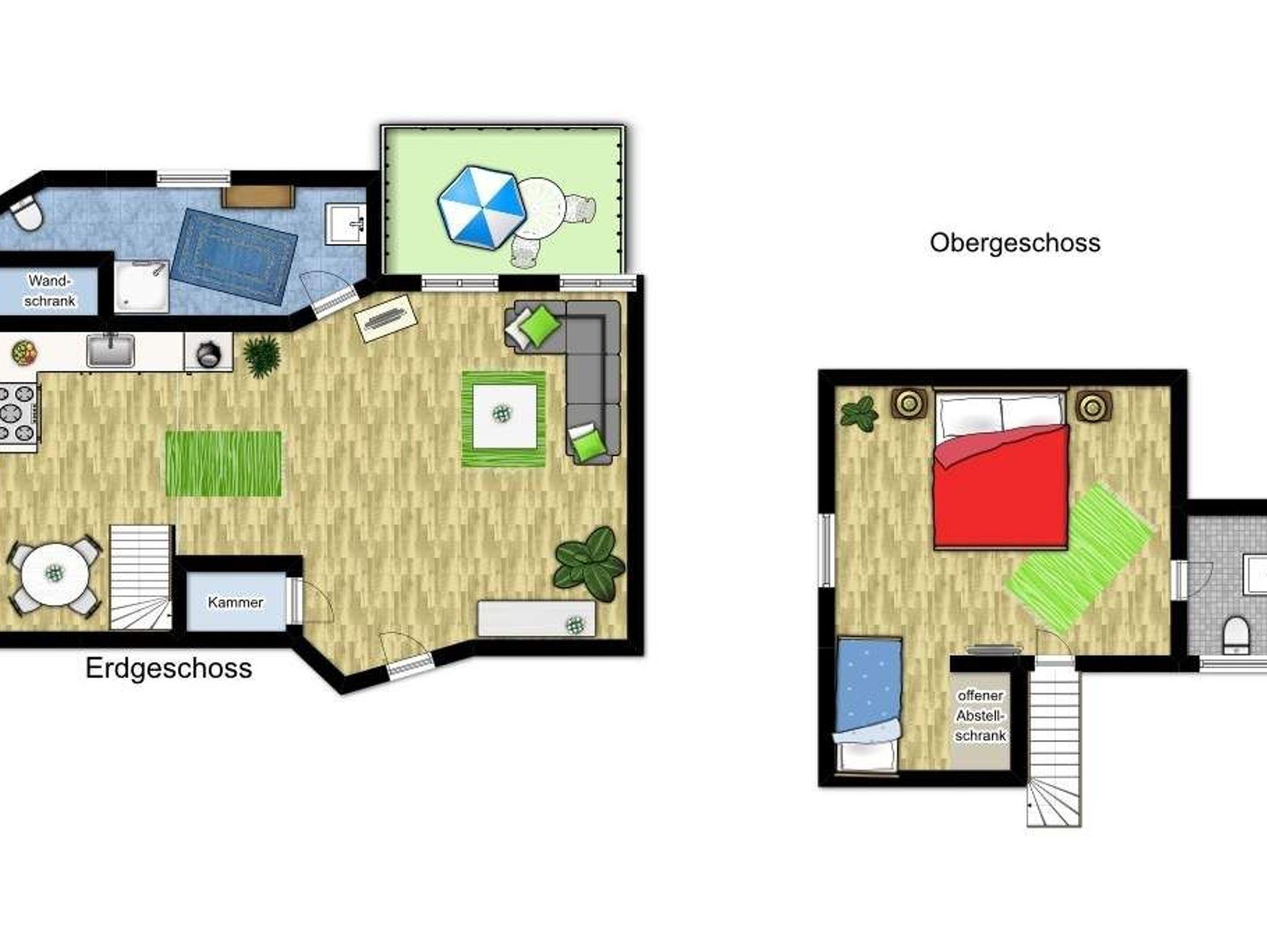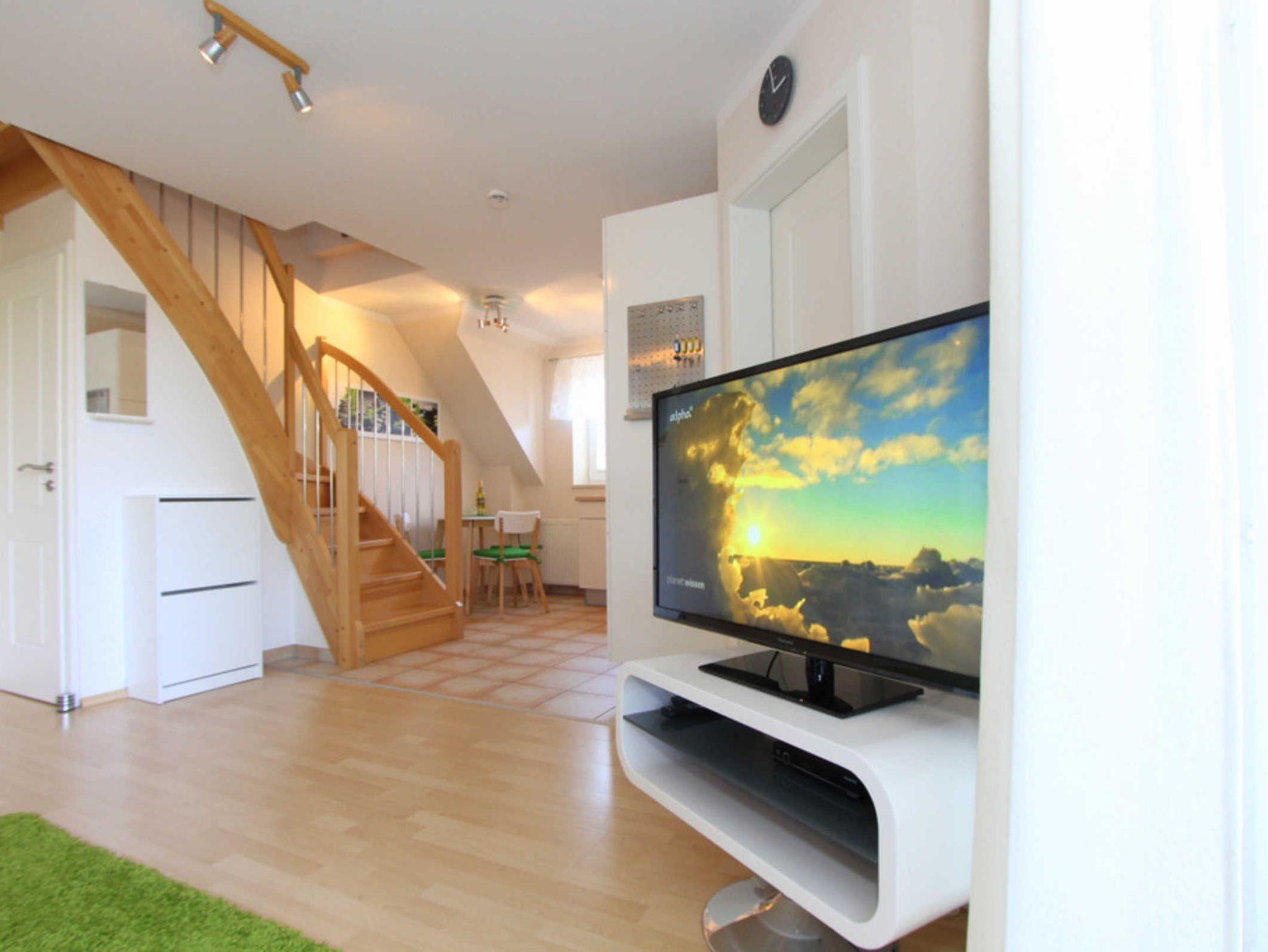 Die 2-Zimmer-Ferienwohnung befindet sich im 2.OG und erstreckt sich über 2 Ebenen. Sie bietet eine moderne Ausstattung für max. 3 Gäste + 1 Kleinkind.