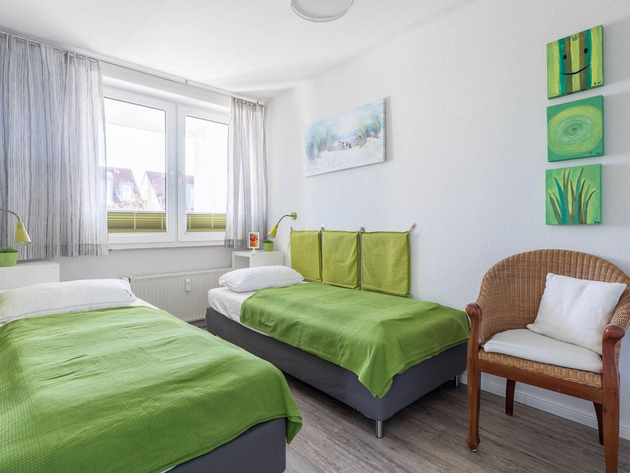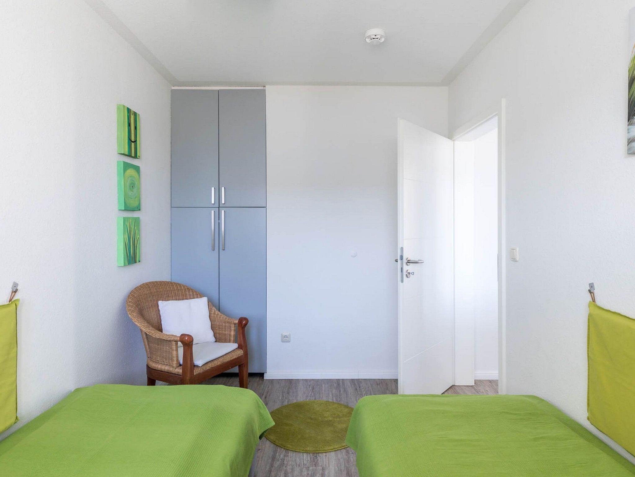 Das zweite Schlafzimmer ist mit zwei Einzelbetten (90x200m) und einem Kleiderschrank ausgestattet.