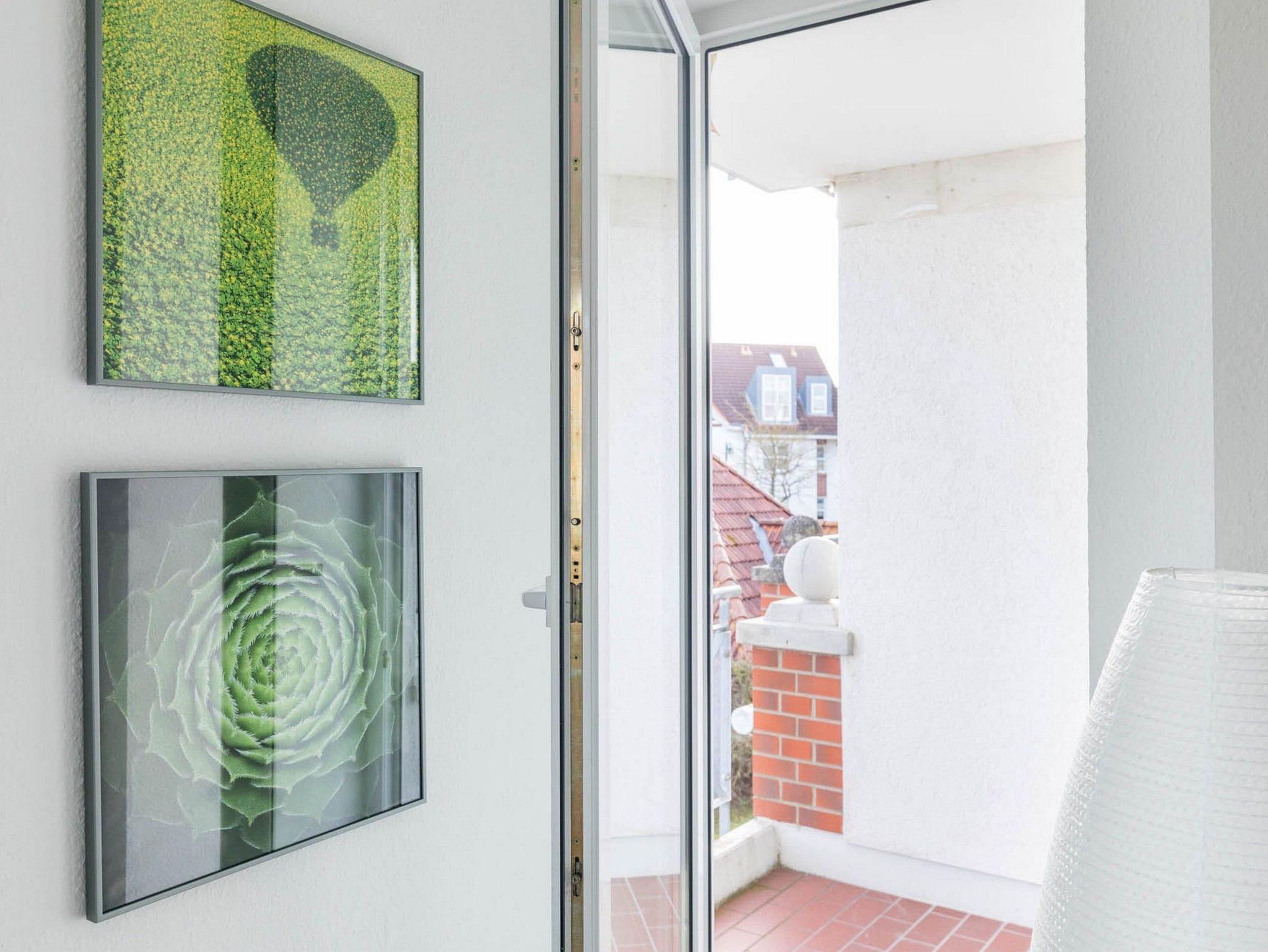 Vom Wohnbereich aus können Sie auf den kleinen möblierten Südost-Balkon gelangen.