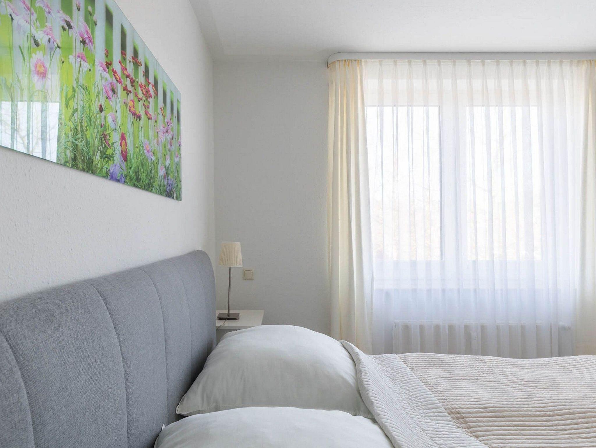 Es gibt zwei separate Schlafzimmer. Das größere Schlafzimmer ist mit einem Boxspringbett (180x200m) und einem Kleiderschrank für Ihre Garderobe bestückt.