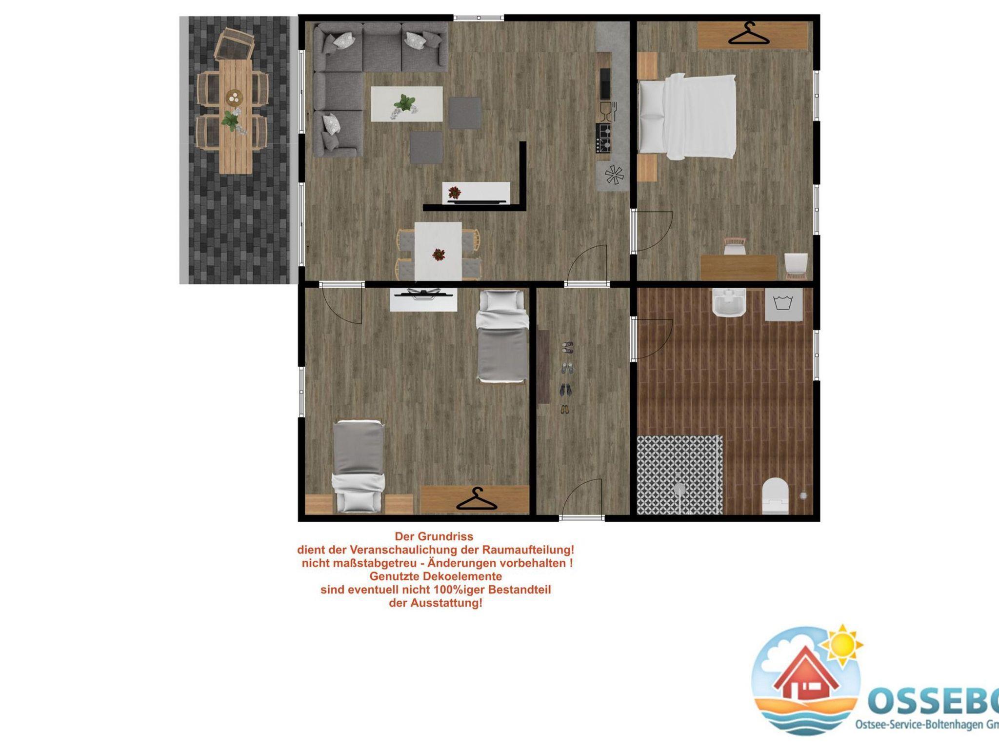 Moderne 3-Zimmer-Ferienwohnung Sünn in Boltenhagen mit WLAN und Terrasse für einen entspannten Ostseeurlaub.