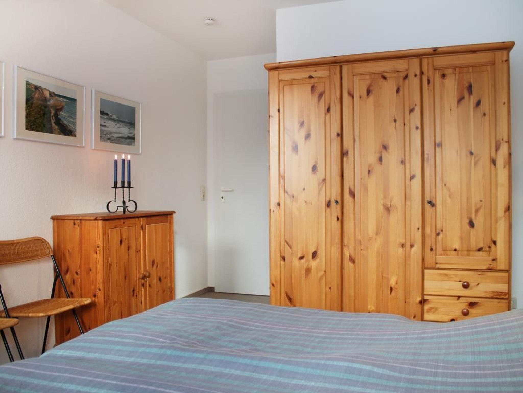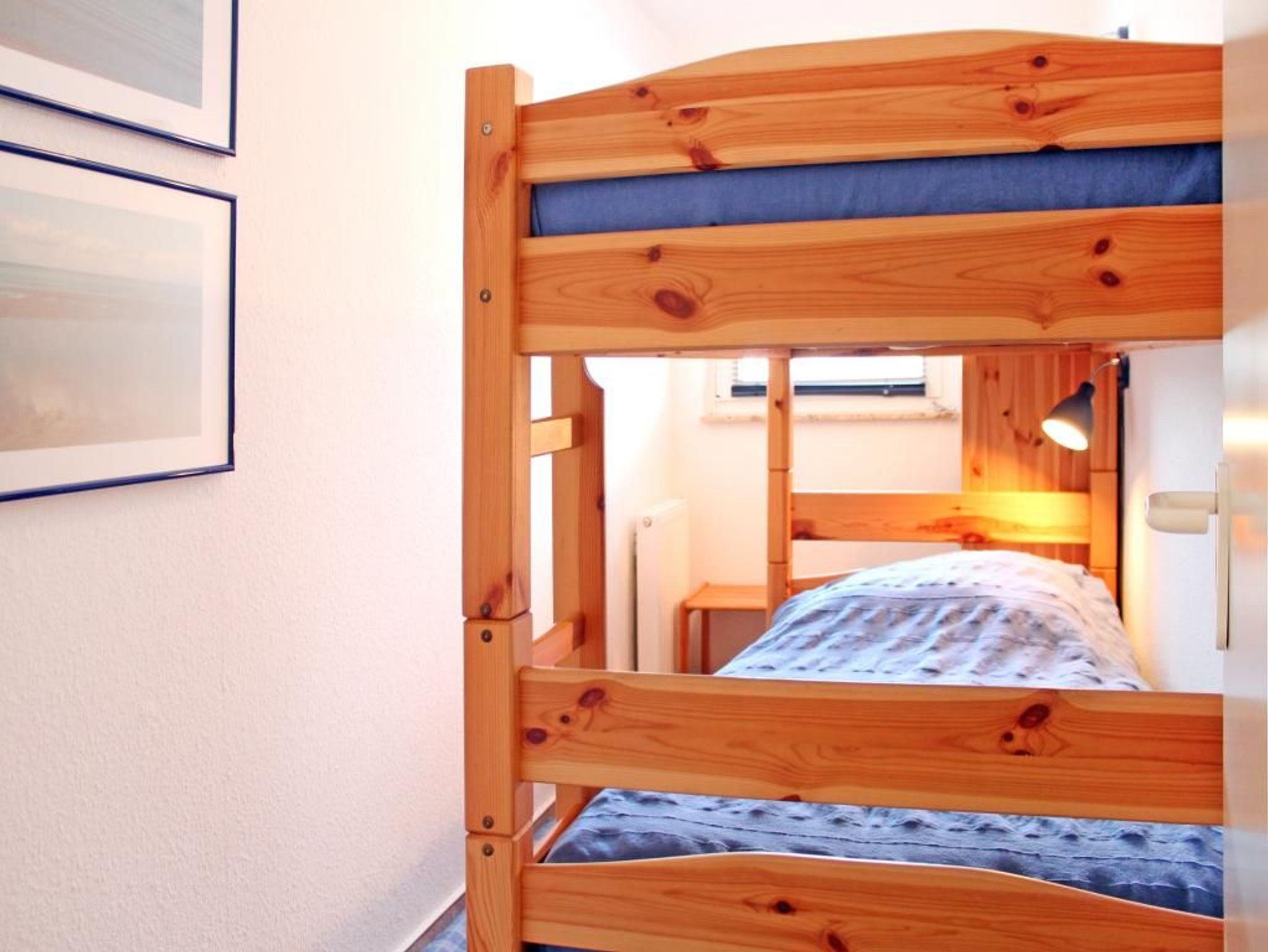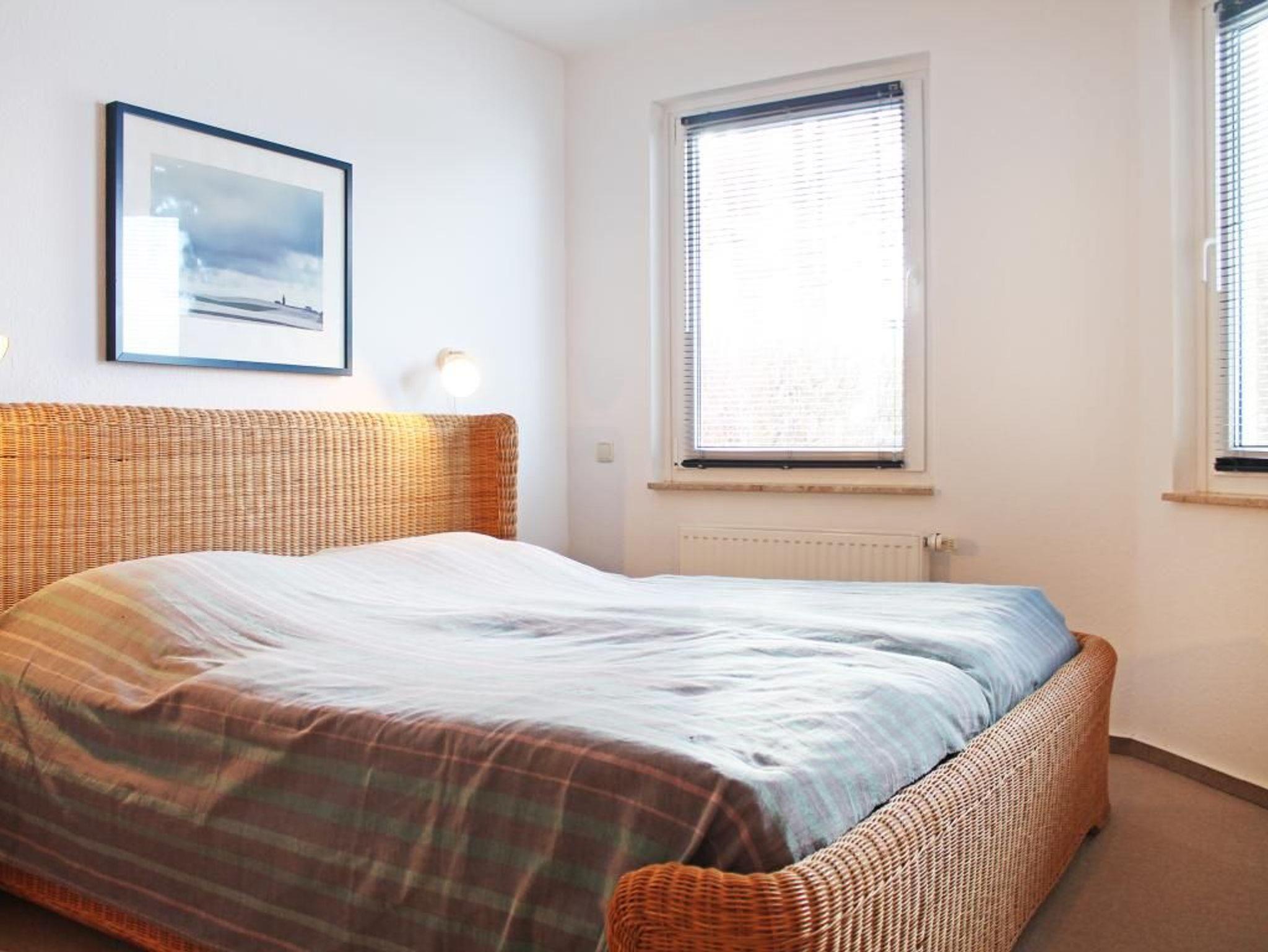 Das 1. Schlafzimmer ist geräumig und mit einem Doppelbett und Kleiderschrank ausgestattet. Das 2. Schlafzimmer dient sozusagen als Kinder-/Gästezimmer mit Etagenbett. Im zugehörigen Duschbad können sie auch eine Waschmaschine nutzen. Für Ihren PKW ist ein Außenstellplatz reserviert. Abstellmöglichkeiten für mitgebrachte Fahrräder sind vorhanden. Einkaufsmöglichkeiten befinden sich nur 100 Meter von der Anlage Godewind.