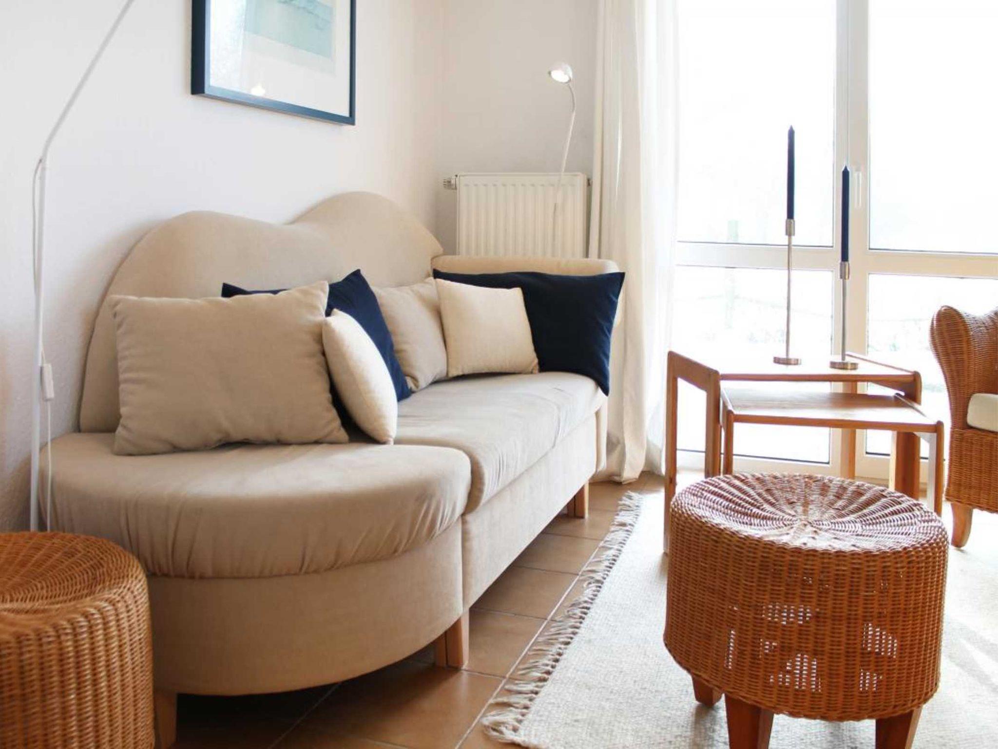 In der Ferienwohnung - Godewind 13- genießen Sie einen wunderbaren Aufenthalt nur 180 Meter zum feinsandigen Ostseestrand. Die charmant eingerichtete Erdgeschoss Wohnung bietet eine Wohnfläche von 55qm sowie eine sonnige Terrasse mit Blick auf die Pferdewiesen. Behaglich und geschmackvoll empfängt Sie der helle Wohnbereich mit einem bequemen Sofa, Rattansessel, Flachbildfernseher, Musikanlage, DVD, Regalwände, Esstisch, sowie einer offenen Küche, welche in den Wohnbereich integriert ist. Zur Zubereitung Ihrer Urlaubsmahlzeiten ist in der Küchenzeile alles vorhanden, so auch z.B. Ceranfeldherd, Backofen, Mikrowelle, Dunstabzug, Kühlschrank, Kaffeemaschine, Toaster, Töpfe und Geschirr usw. Zwei separate Schlafzimmer bieten Schlafmöglichkeiten für bis zu 4 Personen.