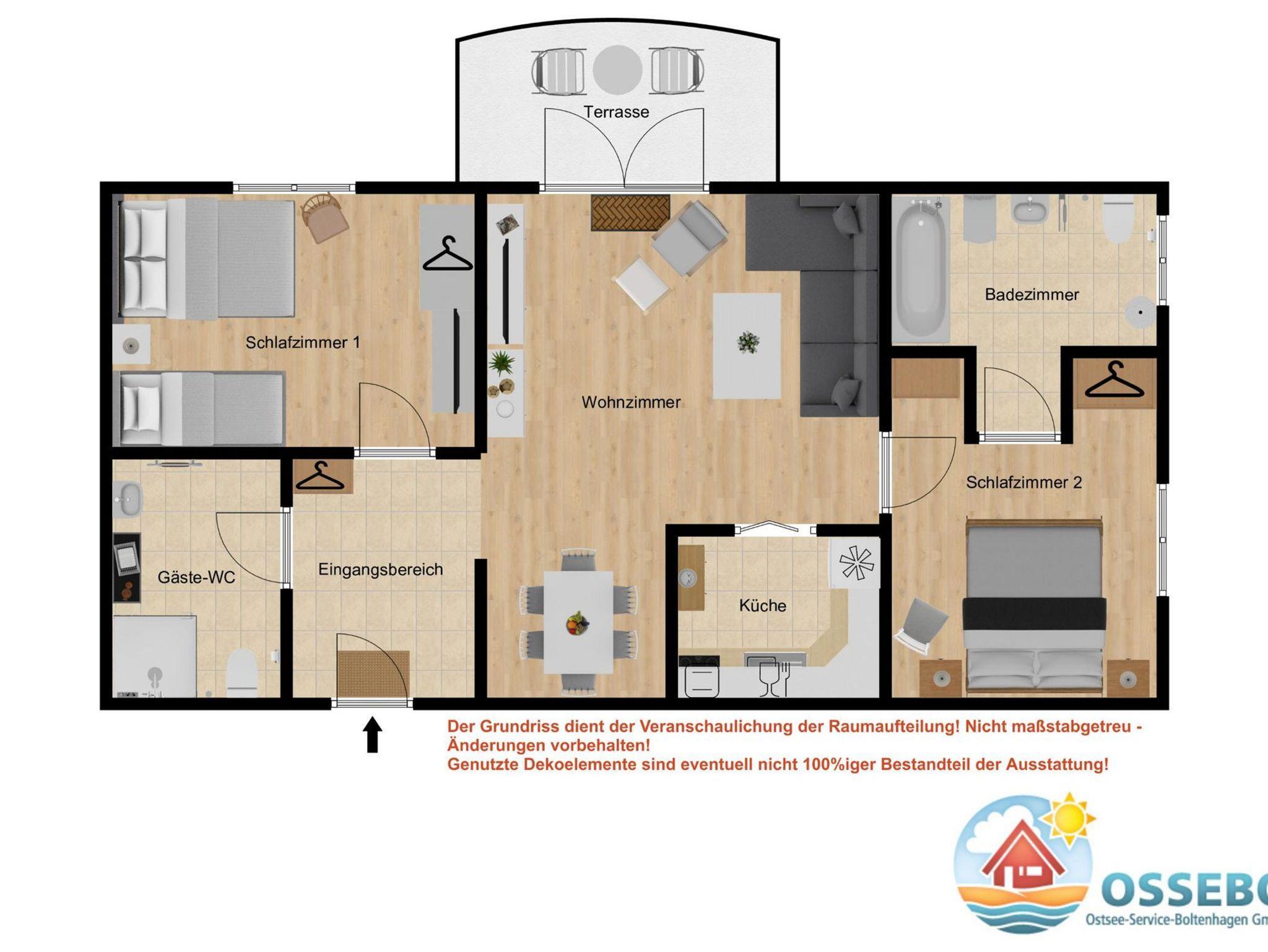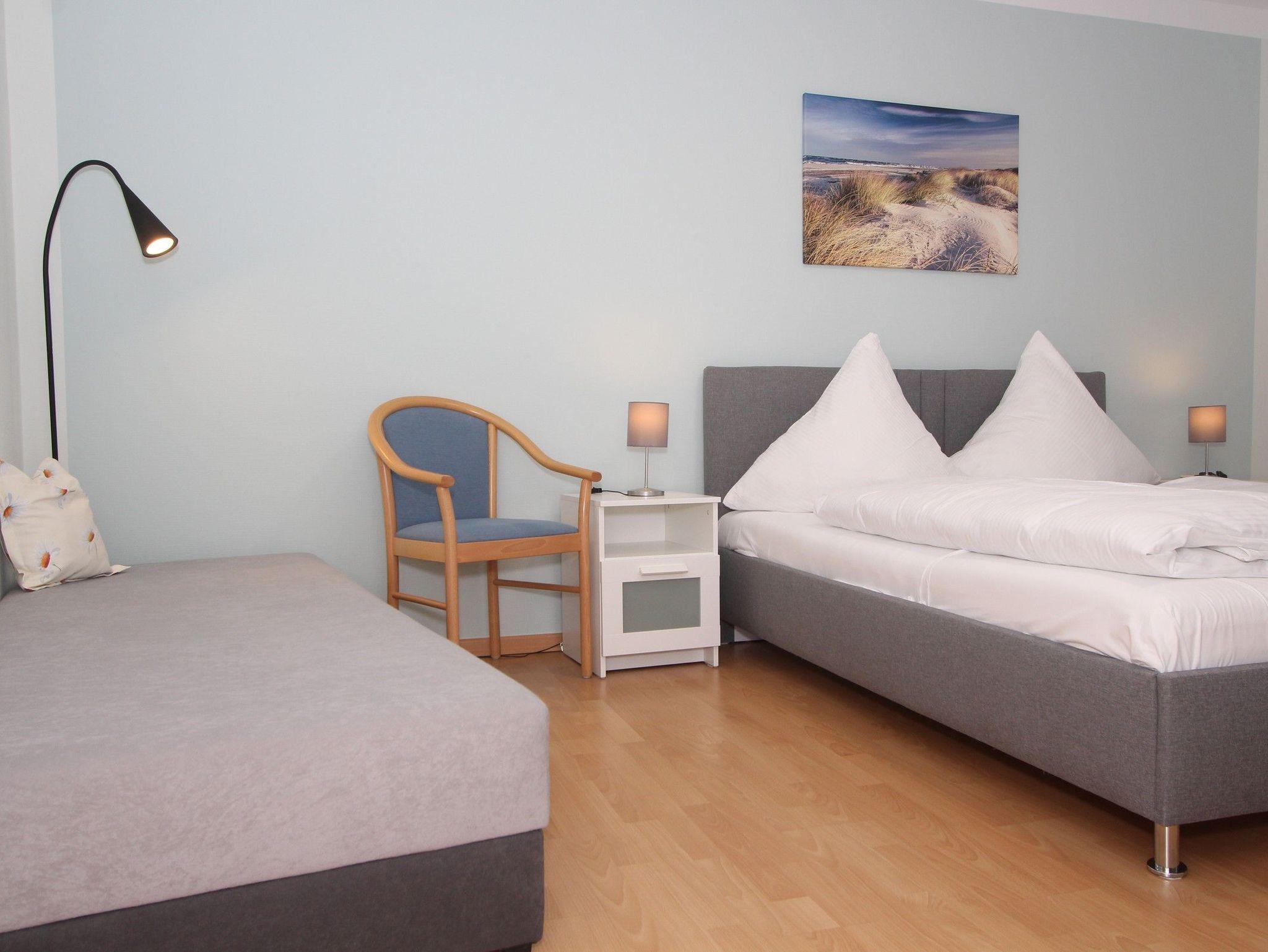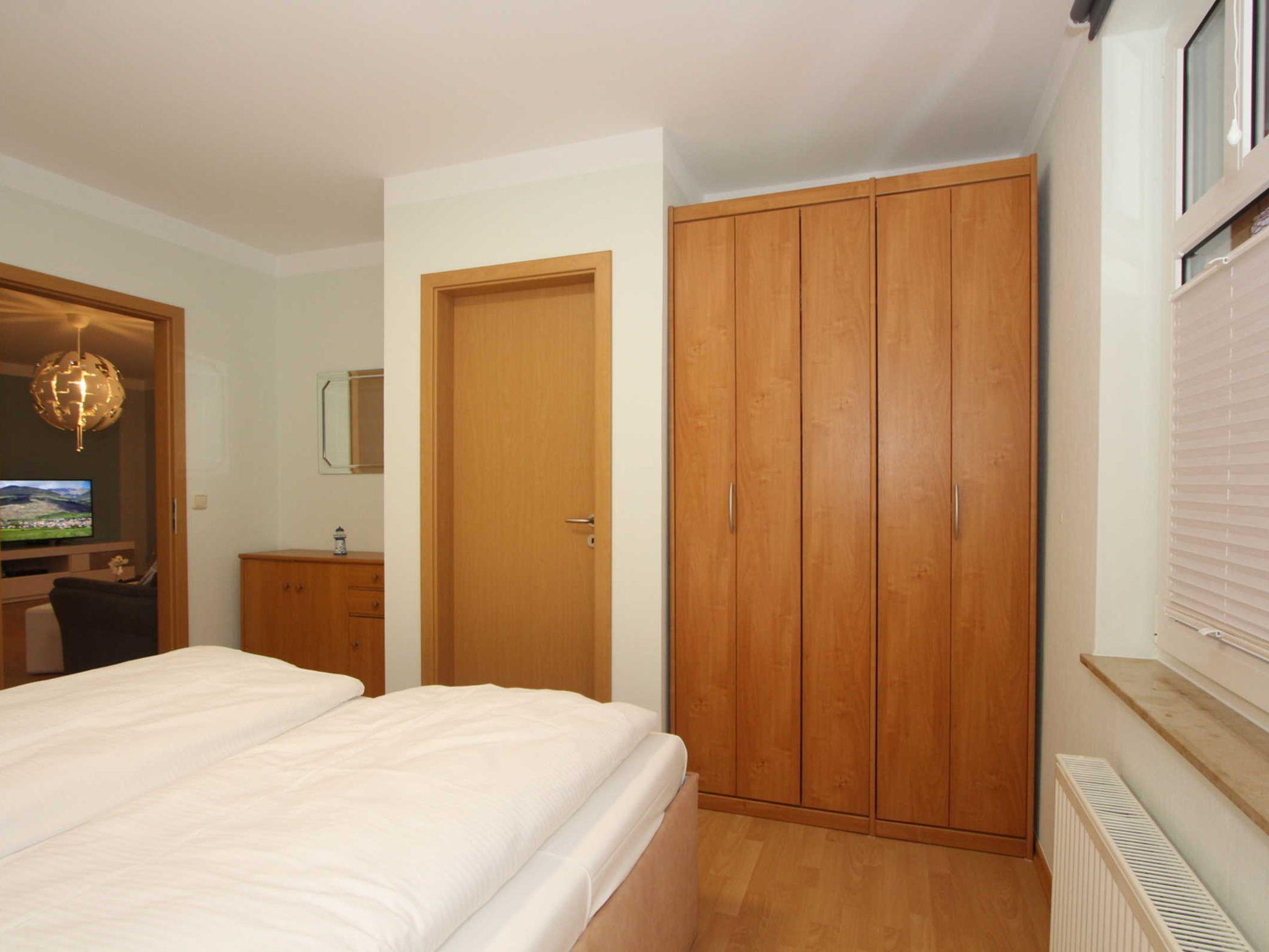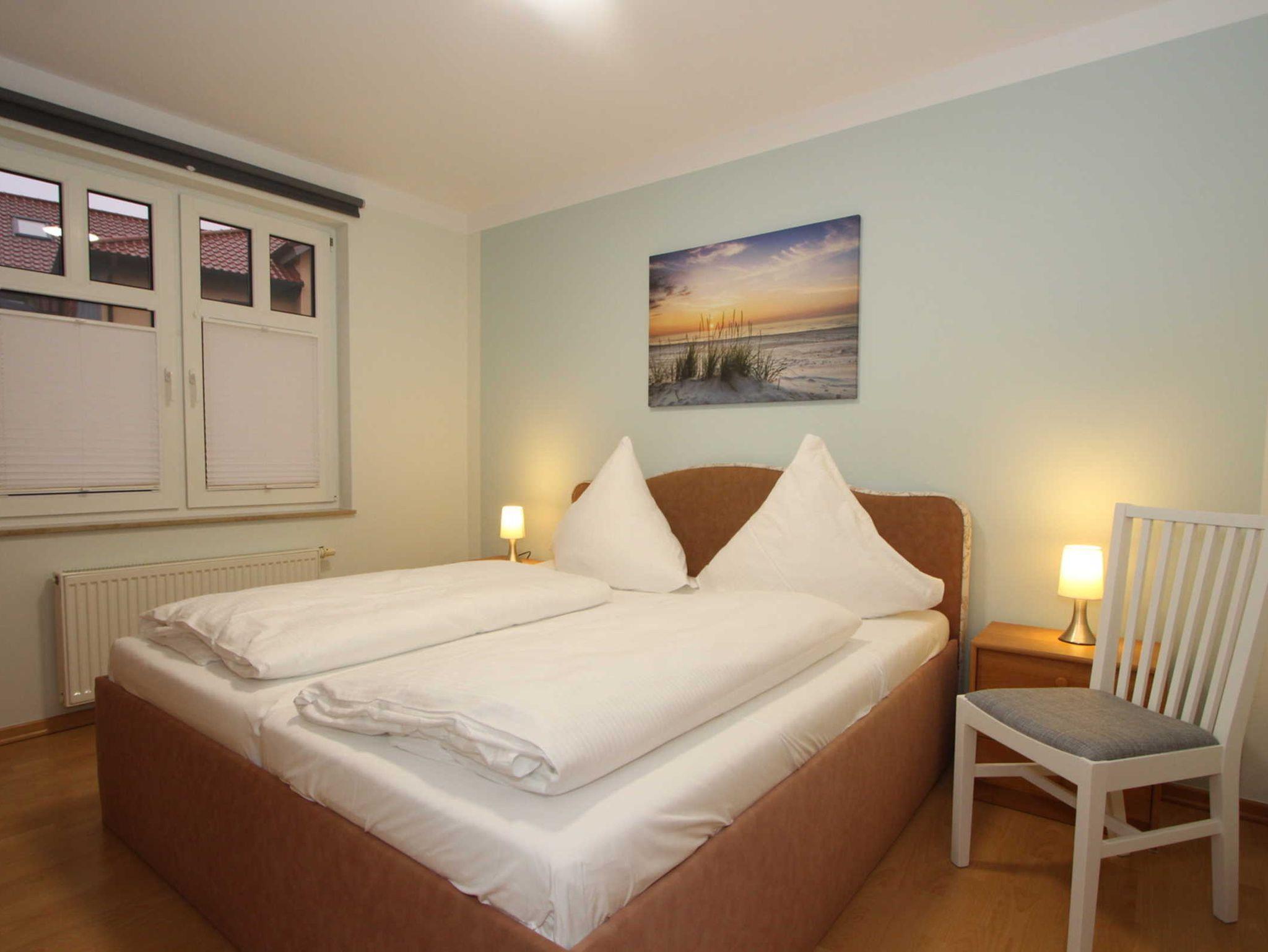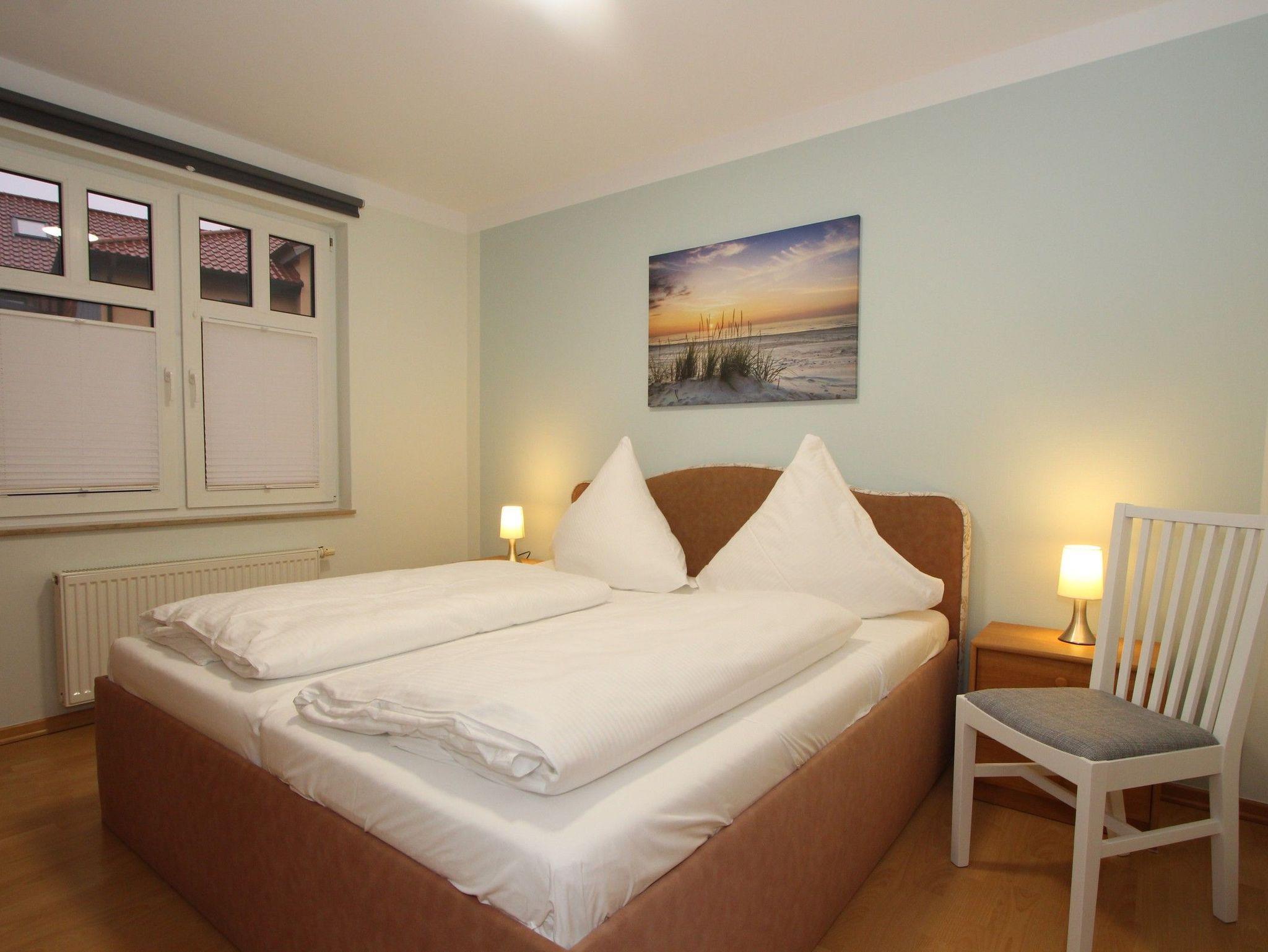 Die Wohnung verfügt außerdem über zwei separate Schlafräume: Ein Schlafzimmer ist mit einem Doppelbett (180x200cm) und Kleiderschrank. Das zweite Schlafzimmer bietet ebenfalls ein Doppelbett (160x200cm) und ein zusätzliches Gästebett (80x200cm) sowie SAT-TV + DVD-Player. Auch hier gibt es einen Kleiderschrank für Ihre Urlaubsgarderobe.
