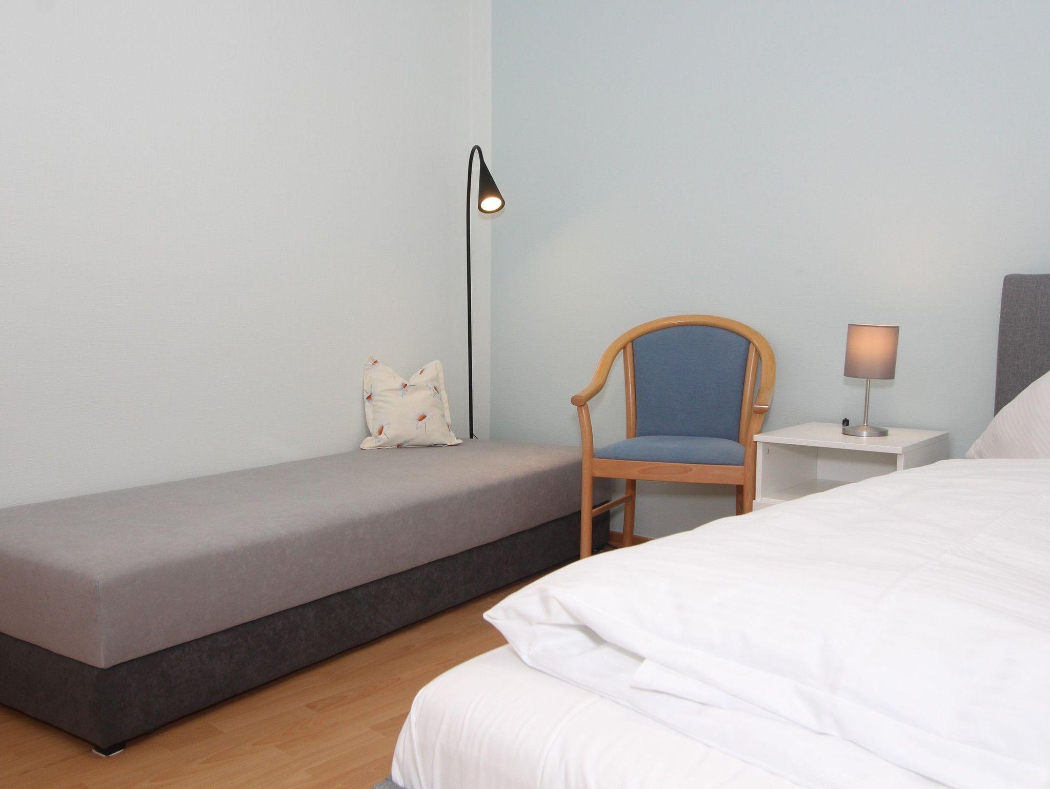 Die für 2-6 Gäste konzipierte 73qm große 3-Zimmer-Ferienwohnung befindet sich im 1. Obergeschoss und ist bequem mit dem Fahrstuhl aus der Tiefgarage zu erreichen.