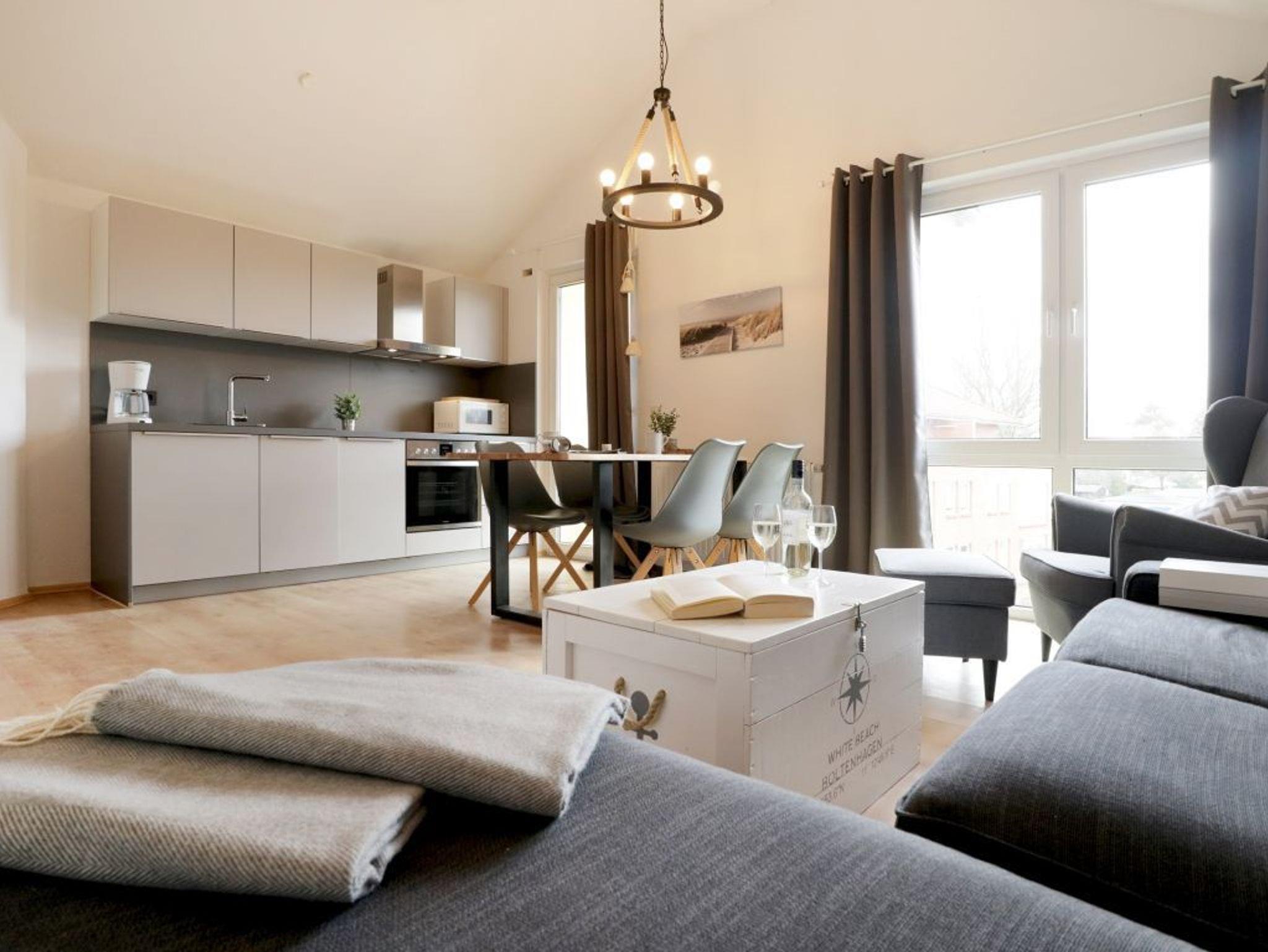 Modernes 3-Zimmer Apartment in Boltenhagen, nur 180 m von der Ostsee mit Balkon und kostenfreiem WLAN.
