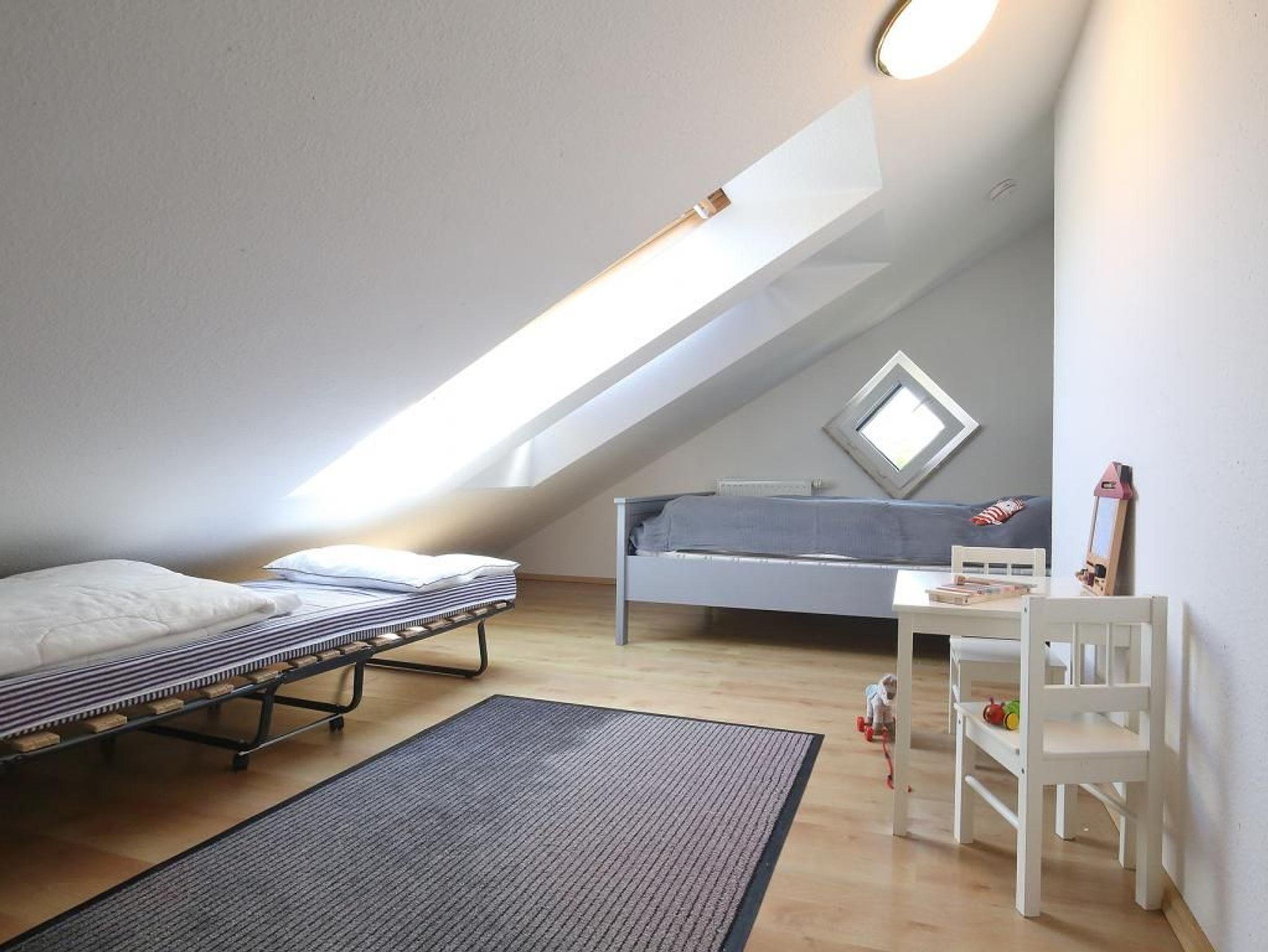 Die modern eingerichtete Dachgeschosswohnung mit Balkon in östliche Richtung ist eine 53qm geräumige 3- Zimmer Ferienwohnung mit 2 separaten Schlafzimmern. In der familienfreundlichen Unterkunft sind Haustiere herzlich willkommen. In nur 180 Meter gelangen Sie an die Ostsee. Das attraktive Domizil ist für bis zu 5 Personen geeignet. Der Fußbodenbelag ist mit Laminat verlegt. Hochwertig empfängt der schicke Wohn-/Essbereich mit einem bequemen Sofa, Esstisch, Vitrine, Flachbild- Fernseher, Musikanlage, Wlan kostenfrei. Die in den Wohnraum integrierte Küche ist ausgestattet mit Herd, Backofen, Mikrowelle, Kühlschrank sowie Kaffeemaschine, Geschirr usw. In einem der Schlafzimmer befinden sich ein Doppelbett und Kleiderschrank. Das weitere Schlafzimmer bietet 3 Schlafplätze mit Doppelbett (1,40 x 2,00m), einem zusätzlich ausklappbaren Einzel- Reservebett und Kinderspieltisch. Ein gepflegtes Duschbad ist vorhanden. Wir empfehlen die Belegung mit max. 4 Personen. Rauchen innerhalb der Wohnung ist nicht gestattet. Haustiere sind gegen Gebühr 5,00 Euro pro Tag) gestattet. Ihren PKW parken Sie kostenfrei am Haus. Einkaufsmöglichkeiten erreichen Sie in wenigen Gehminuten.