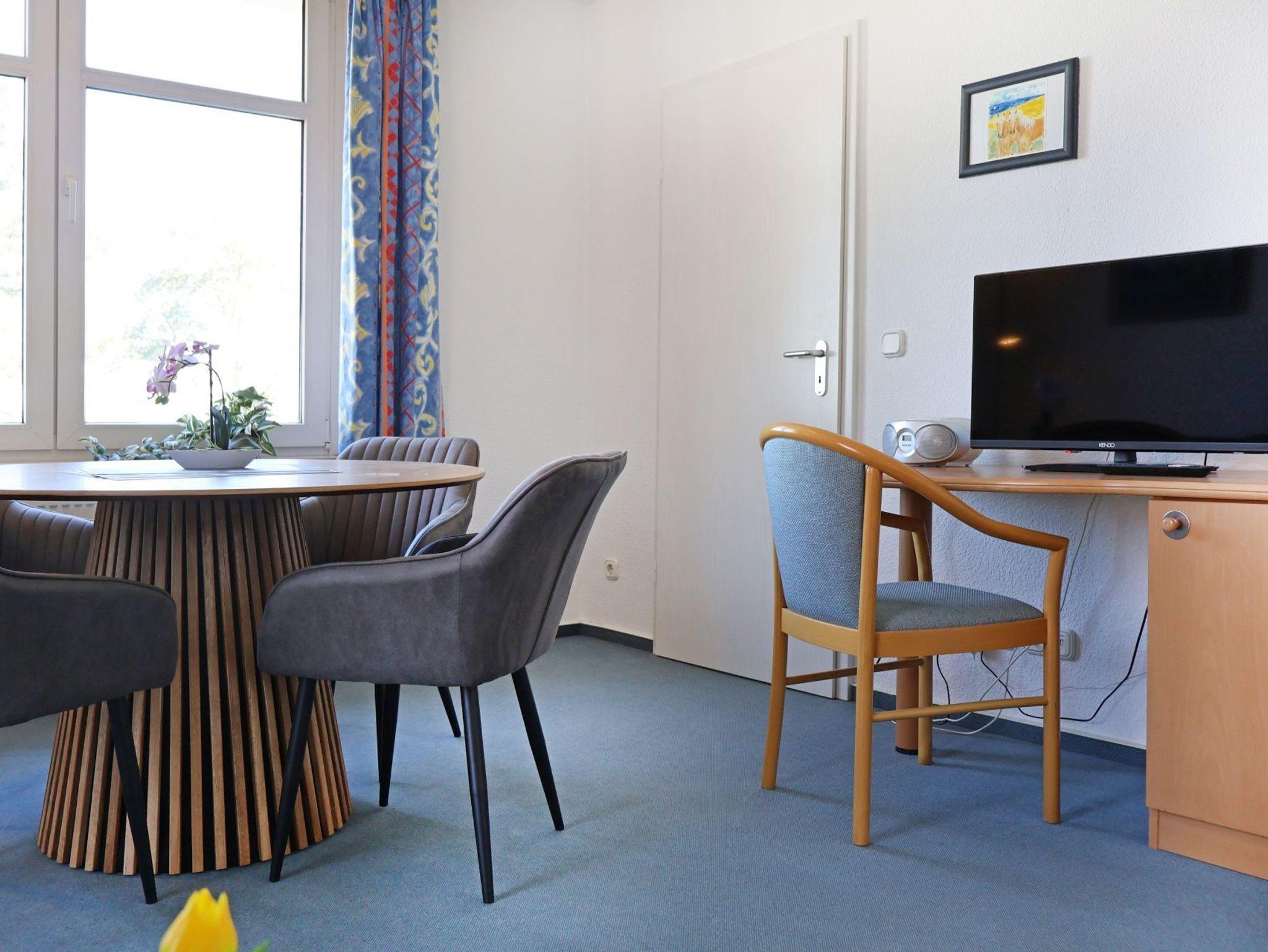Es erwartet sie eine behagliche Ferienwohnung mit Balkon in guter Ausstattung auf einer großzügigen Wohnfläche von 63qm. Bis zu max. 3 Personen können hier einen erholsamen Aufenthalt in direkter Lage zum Meer verbringen. Der Wohnraum bietet ein ausziehbares Sofa und einen Essbereich mit Balkon Zugang. FLAT -TV und Radio sorgen für abendliche Unterhaltung. In der separaten Küche mit Herd, Backofen, Dunstabzugshaube, Kaffeemaschine, Toaster, Wasserkocher usw. können die Urlaubsmahlzeiten bequem zubereitet werden. Das geräumige Schlafzimmer mit Doppelbett und Kleiderschrank verfügt zudem über zusätzliche Sitzmöglichkeiten, die z.B. als Rückzugsmöglichkeit oder Lesebereich genutzt werden können. Hell gefliest ist das -mit einem Tageslichtfenster versehene- Duschbad. Bei Anreise sind die Betten bereits bezogen und Handtücher liegen bereit. Ein Gäste PKW Stellplatz ist am Haus reserviert.