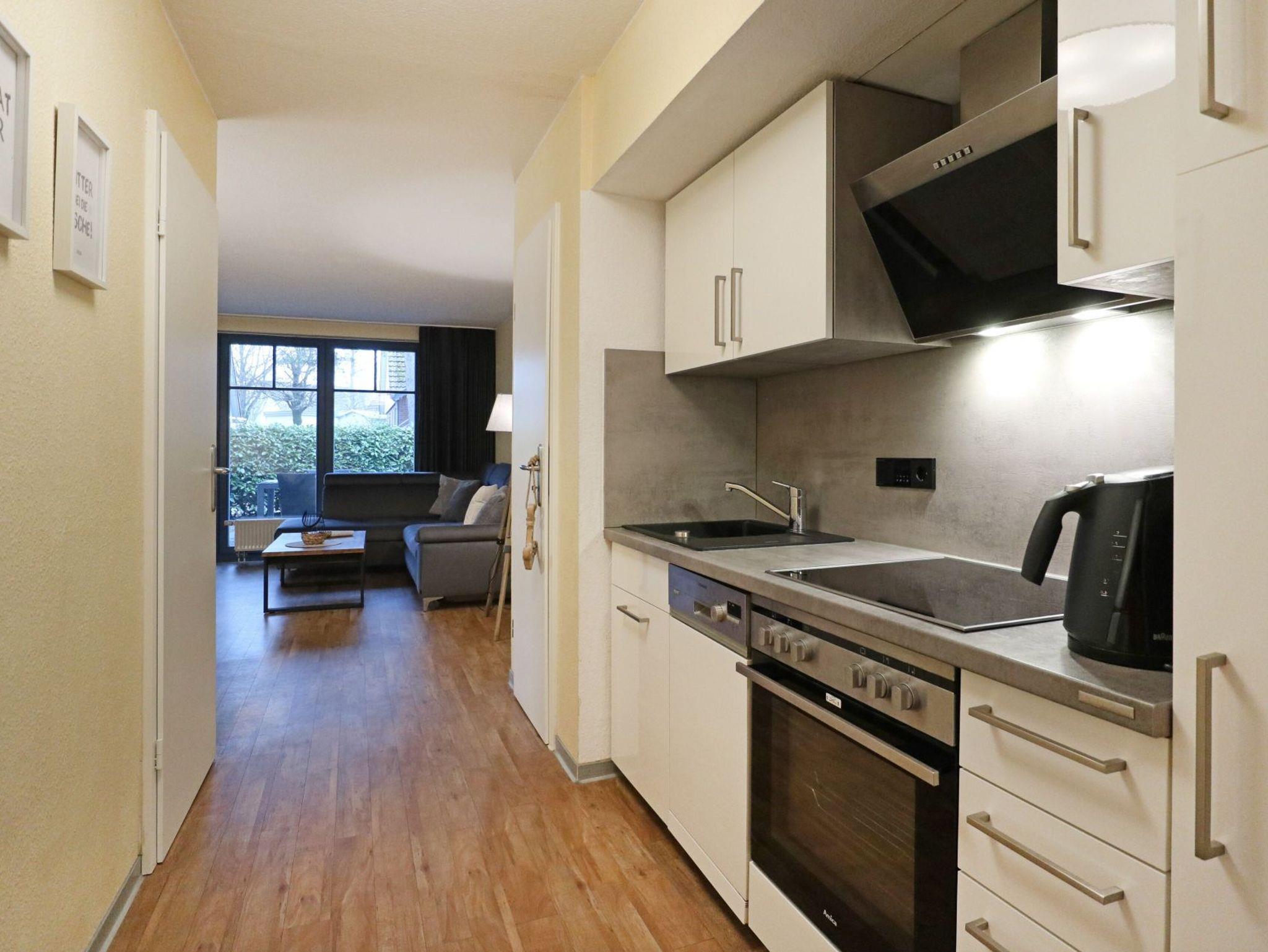 Die familienfreundliche 2- Zimmer Ferienwohnung Papillon 11-1 ist ein komfortabel eingerichtetes Appartement mit einer Wohnfläche von 55qm. Eine Belegung mit bis zu 4 Personen möglich. Der großzügige Wohn-/Essbereich ist mit einem Sofa, ausziehbar als Schlafsofa mit zwei weiteren Schlafgelegenheiten und einem Ruhesessel sowie Esstisch behaglich möbliert, verfügt zudem über einen Fernseher, DVD-Player, Musikanlage, kostenfreie WLAN- Nutzung und bietet Ihnen den Zutritt auf eine sonnige, saisonal möblierte Terrasse. In der voll ausgestatteten Wohnküche stehen Ceranherd, Backofen, Geschirrspüler sowie Kühlschrank mit intergr. Gefrierfach, Kaffeemaschine, Toaster und Wasserkocher bereit. Das separate Schlafzimmer empfängt Sie mit einem Doppelbett, Kleiderschrank und 2. Fernseher. Das Tageslicht Duschbad, Waschtisch, WC ist geräumig und zweckmäßig. Gegen Gebühr können Sie im Untergeschoß des Hauses Waschmaschine und Wäschetrockner nutzen. Für Kleinkinder stehen ein Hochstuhl, Kinderbett und Bollerwagen bereit. Ihren PKW parken Sie kostenfrei auf dem wohnungseigenen Außenstellplatz parken. Bitte beachten Sie, dass es sich um eine Nichtraucherwohnung handelt. Haustiere sind herzlich willkommen. Zur Ostsee gelangen Sie in nur ca. 250 Meter.