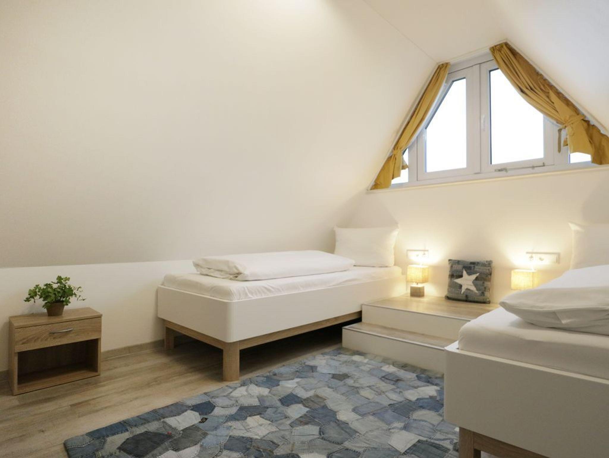 Es empfängt Sie das 4-Zimmer Reetdach Doppelhaus ?Schatzkiste? mit einer Wohnfläche von 103qm, welche sich über drei Etagen verteilt. Die durchdachte Raumaufteilung ermöglicht eine Belegung mit bis zu sechs Personen. Modern möbliert empfängt Sie der schicke Wohn-Essbereich mit einer komfortablen Sofalandschaft, einem Esstisch sowie einer voll ausgestatteten Wohnküchenzeile mit Ceranfeldherd, Backofen, Dunstabzugshaube, Mikrowelle, Geschirrspüler sowie Kaffeemaschine, Toaster und Wasserkocher usw. Im Wohnbereich befinden sich zudem ein Fernseher, Musikanlage und auch die kostenfreie WLAN- Nutzung ist gegeben. Vom Wohnzimmer gelangen Sie auf eine mit Büschen umpflanzte, saisonal möblierte Terrasse in süd-/westliche Richtung. Im zugehörigen Gartenhäuschen steht auch ein Elektrogrill bereit. Des Weiteren befinden sich ein Komfort Tageslicht Duschbad im Erdgeschoss des Hauses. Über eine Treppe gelangen Sie in das 1. Obergeschoss, wo sich zwei separate Schlafzimmer jeweils mit Doppelbett, Kleiderschrank und TV befinden. Der Höhepunkt auf dieser Ebene ist das sehr geräumige Wannenbad mit Infrarotkabine und Waschmaschinen Nutzung. Das 2. Obergeschoss bietet Ihnen ein weiteres Schlafzimmer mit zwei Einzelbetten, Kleiderschrank und TV. Eine weitere Rückzugsmöglichkeit finden Sie im Flurbereich mit einer behaglichen Sitzmöglichkeit.