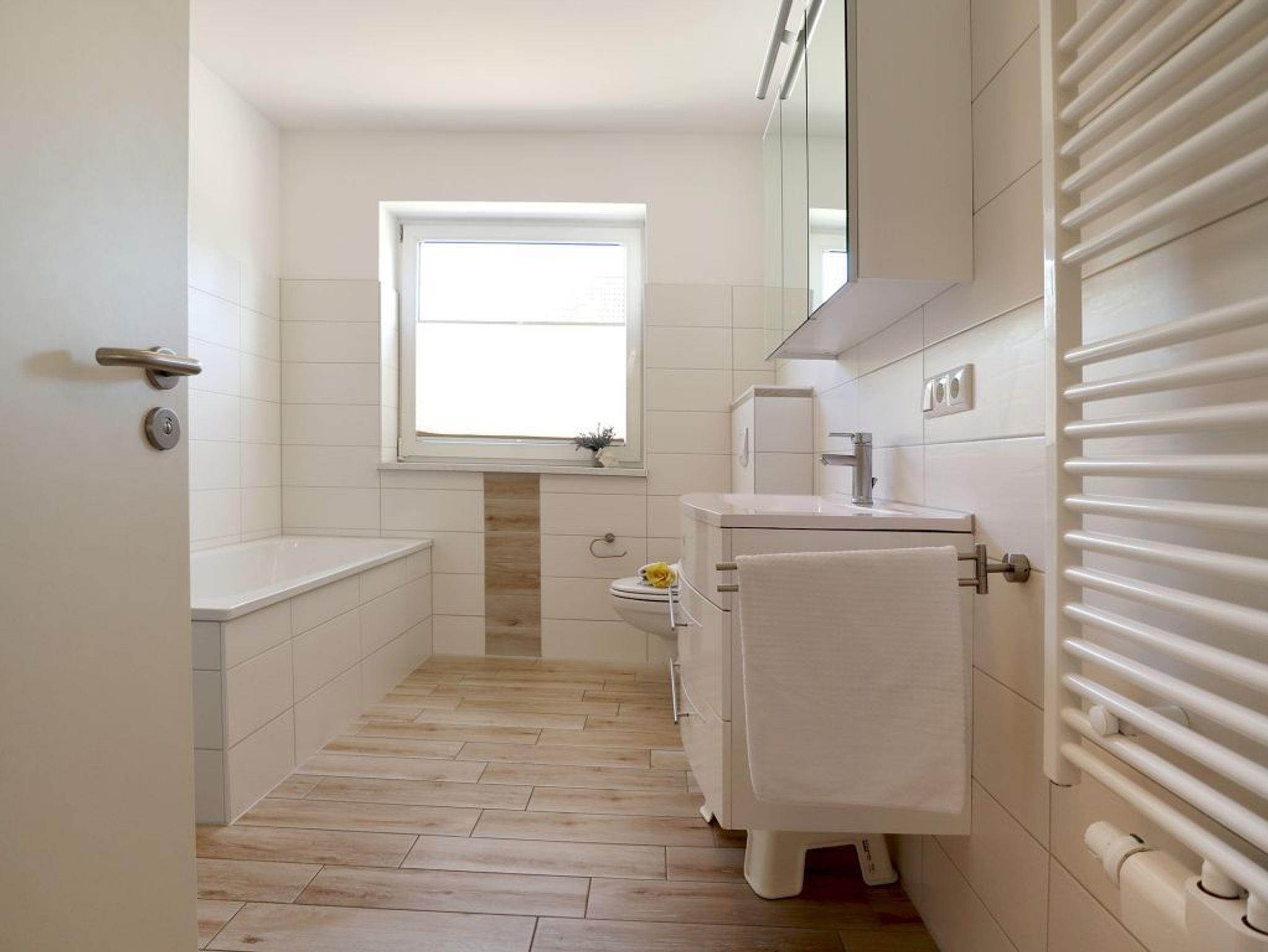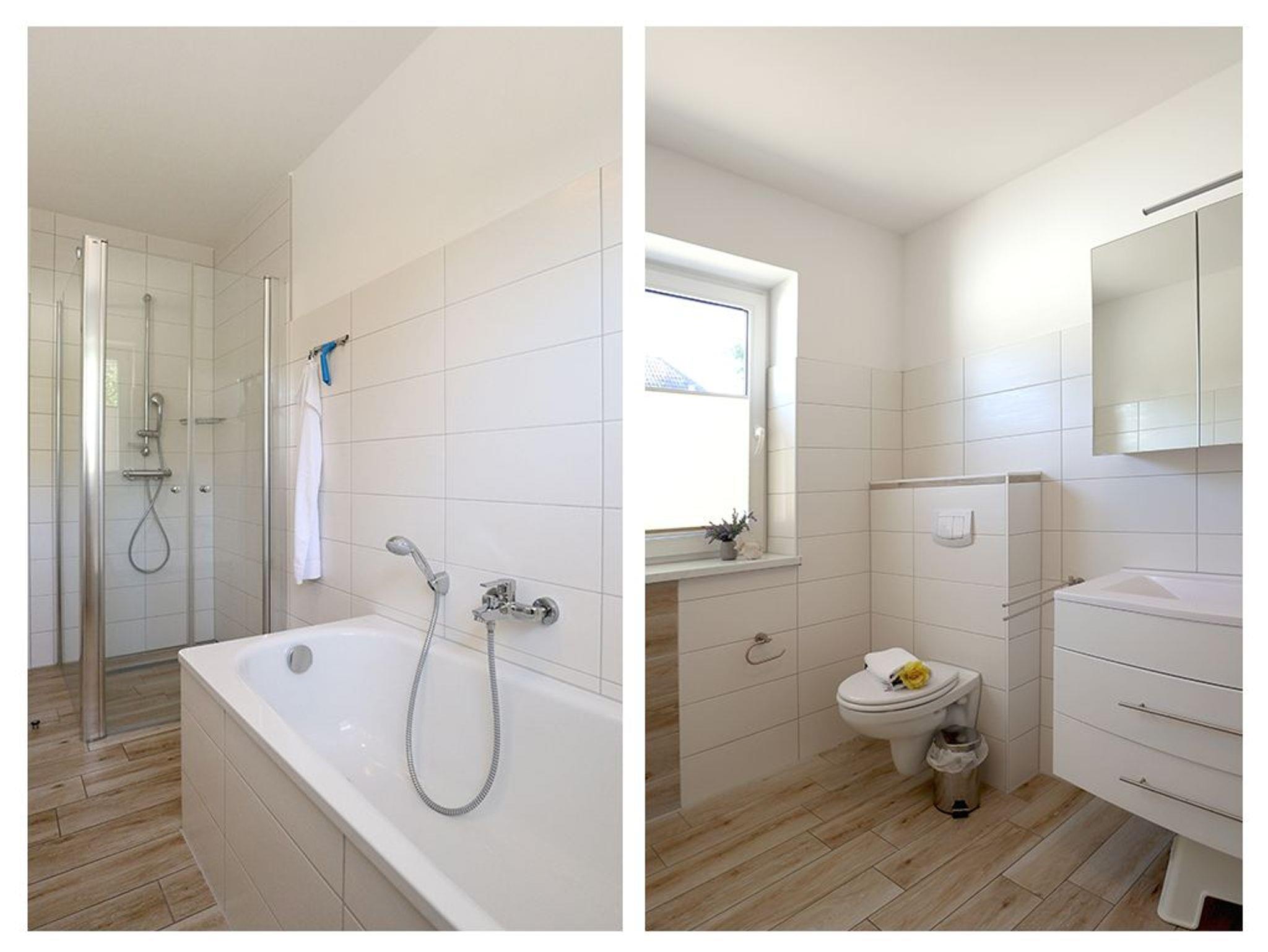 Herzlich willkommen in der kürzlich modernisierten 4 -Zimmer Ferienwohnung Teresa. Die geräumige Ferieneinheit bietet mit 110qm viel Platz für bis zu 8 Personen. Während der Sommermonate verbringen Sie entspannte Stunden auf der sonnigen Terrasse, welche saisonal möbliert ist. Auch Gartennutzung gehört dazu. Ein auf dem Grundstück vorhandener Spielplatz lädt die kleinen Gäste zum Spielen ein (Betreten auf eigene Gefahr). Charmant möbliert empfängt Sie ein gemütlicher Wohnbereich mit Sofa und einem großen Flatscreen Fernseher. WLAN steht ihnen selbstverständlich kostenfrei zur Verfügung. Eine Waschmaschine zudem ein Wäschetrockner befinden sich im Hauswirtschaftsraum und können ebenfalls kostenlos genutzt werden. Die separate Küche ist gut ausgestattet mit Backofen, Herd mit Ceranfeld, Mikrowelle sowie Geschirrspülmaschine, Toaster, Wasserkocher und Kaffeemaschine. Ein großer Esstisch, an dem Sie Ihre Mahlzeiten einnehmen können, ist ebenso vorhanden. Erholsame Nächte ermöglichen drei separate Schlafzimmer 2x mit Doppelbett und Kleiderschrank sowie 1x mit zwei Etagenbetten. Jedes der Schlafzimmer verfügt über ein Fernsehgerät. Zwei moderne Badezimmer sind zugehörig. Sie verbringen Ihren Aufenthalt in einem ruhigen Wohngebiet. Für PKWs stehen zwei Stellplätze kostenfrei bereit. Auf Wunsch können Wäschepakete oder auch Brötchenlieferservice hinzu gebucht werden. Es handelt sich um ein Angebot für Nichtraucher. Haustiere sind nicht gestattet.