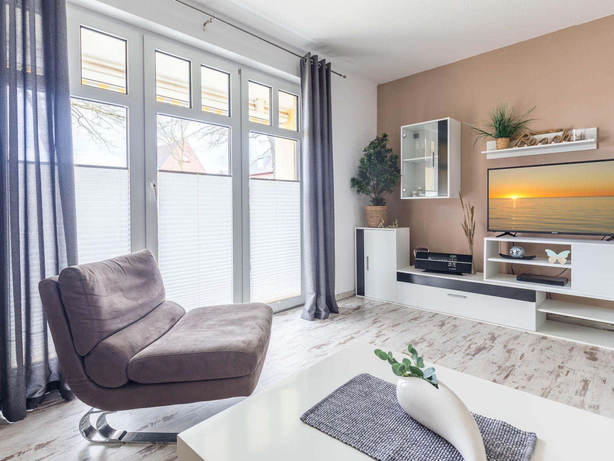 Diese ca. 56qm große, moderne 2-Zimmer-Ferienwohnung liegt im Erdgeschoss und bietet eine Ausstattung für bis zu 4 Gäste.