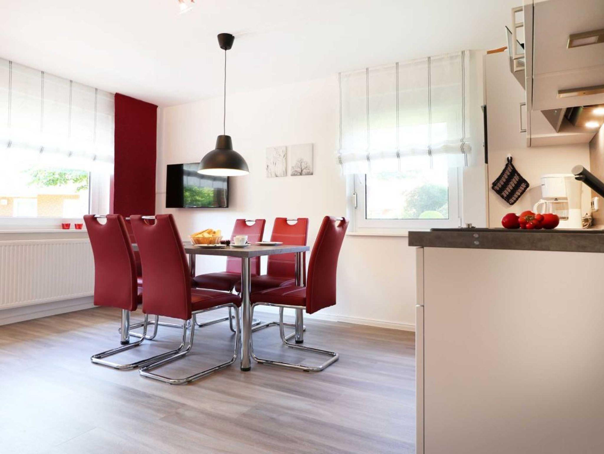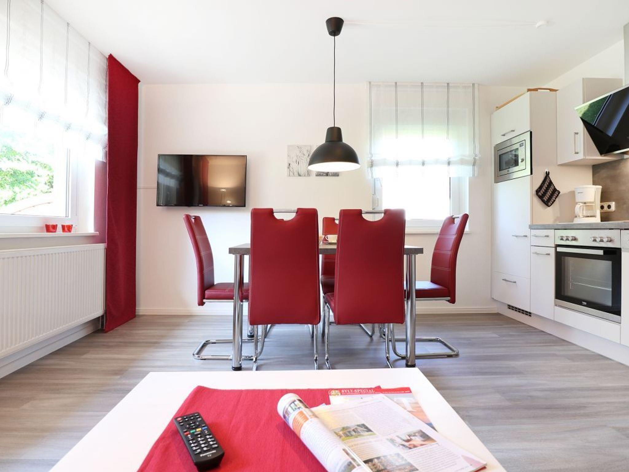 Das Ferien Reihenhaus ? Urlauberdorf 61D - mit Süd ? West Terrasse bietet auf 55qm Ferienwohnen zum Wohlfühlen. Der gemütliche Wohn- und Essbereich ist mit einem Sofa das als Schlafsofa zwei weitere Schlafmöglichkeiten bietet, Fernseher, Musikanlage, WLAN und einem Esstisch ausgestattet ? ideal für entspannte Stunden mit der Familie. Zwei separate Schlafzimmer sowie ein Duschbad und ein Gäste-WC sorgen für Komfort und Privatsphäre. Die integrierte Küchenzeile ist vollständig ausgestattet mit Herd, Backofen, Mikrowelle, Geschirrspüler, Kaffeemaschine, Wasserkocher, Toaster u.v.m. Erholung finden Sie auf der saisonal möblierten Süd - West Terrasse. Im Erdgeschoss befinden sich ein Schlafzimmer mit zwei Einzelbetten und Kleiderschrank sowie ein modernisiertes Tageslicht Duschbad mit WC und kostenfreier Waschmaschinen Nutzung. Über eine Treppe gelangen Sie ins Obergeschoss mit einem weiteren Schlafzimmer mit Doppelbett, Kleiderschrank, Sitzgelegenheit. Ein Gäste-WC ist in dieser oberen Etage ebenso vorhanden. Familienfreundlich gehören ein Kinderhochstuhl, Kinderbett zur Ausstattung. Auch zwei wohnungseigene Fahrräder mit tiefem Einstieg stehen - auf eigenen Gefahr - zu Ihrer Verfügung. Das Nichtraucherhaus ist für bis zu 6 Personen buchbar. Ein PKW-Stellplatz befindet sich kostenfrei am Haus. Weitere PKW-Stellplätze stehen in der Umgebung im öffentlichen Bereich kostenpflichtig zur Verfügung. Haustiere nicht erlaubt. Das Laden von Elektro und Hybridfahrzeugen ist nicht gestattet. Hiervon sind Akkus von E-Bikes & Pedelecs (unter Aufsicht) ausgenommen.