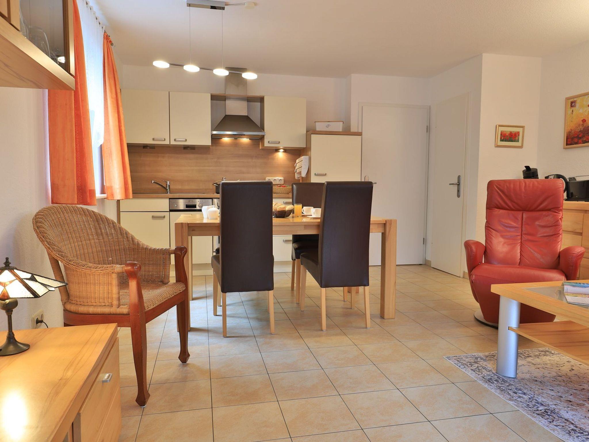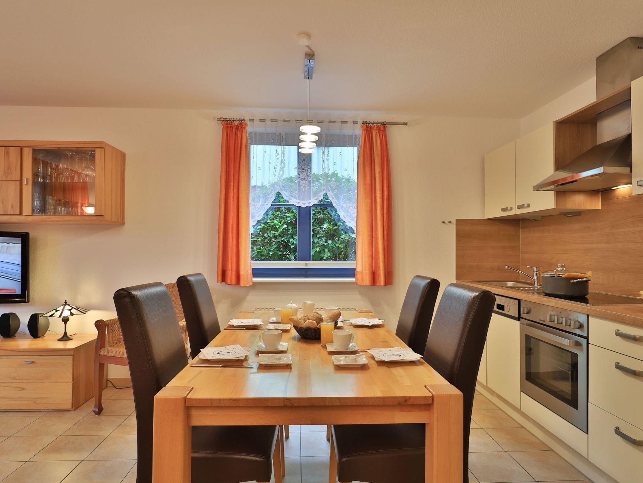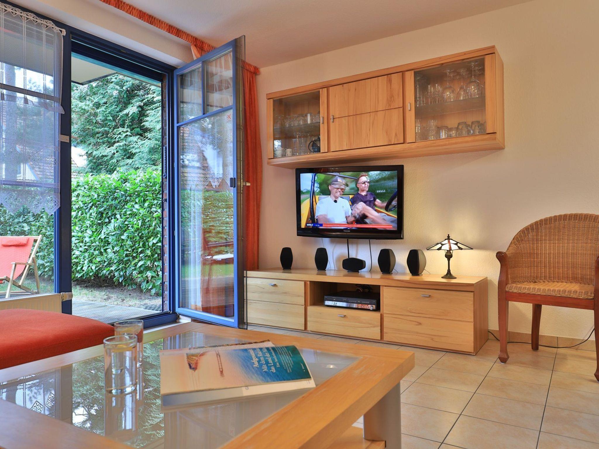 Die 2- Zimmer Ferienwohnung Papillon 12- ist behaglich möbliert und insgesamt gut ausgestattet. Die Wohnfläche beträgt von 55qm und kann mit bis zu 4 Personen bewohnt werden. Der Wohn-/Essbereich ist mit einem Sofa, das auch als Schlafsofa für zwei Personen nutzbar ist, eingerichtet und weitere Sitzmöglichkeiten sowie ein Relax Sessel, Fernseher, DVD-Player, Musikanlage, kostenfreie WLAN-Nutzung sind vorhanden. Die saisonal möblierte Süd- Terrasse lädt zum Entspannen ein. Ein Elektrogrill ermöglicht Grillen auf der Terrasse. In der modernen Wohnküche stehen Ceranherd, Backofen, Mikrowelle, Dunstabzug, Geschirrspüler sowie Kühlschrank mit integr. Gefrierfach, Kaffeemaschine, Toaster und Wasserkocher bereit. Ihre Mahlzeiten nehmen Sie am Esstisch zu sich. Das separate Schlafzimmer empfängt Sie mit zwei Einzelbetten, Kleiderschrank und 2.Fernseher. Das teilweise modernisierte Tageslicht Duschbad ist mit Waschtisch, Föhn, WC ausgestattet. Gegen Gebühr können Sie im Untergeschoß des Hauses Waschmaschine und Wäschetrockner nutzen. Bügeleisen und Bügelbrett sowie ein Kinderhochstuhl, Kinderbett, Bollerwagen sind ebenso vorhanden. Ihren PKW parken Sie kostenfrei auf dem wohnungseigenen Außenstellplatz. Bitte beachten Sie, dass es sich um eine Nichtraucherwohnung handelt. Kleine Hunde sind gegen eine Gebühr in Höhe von 10 Euro/Tag herzlich willkommen. Zur Ostsee gelangen Sie in nur ca. 250 Meter.