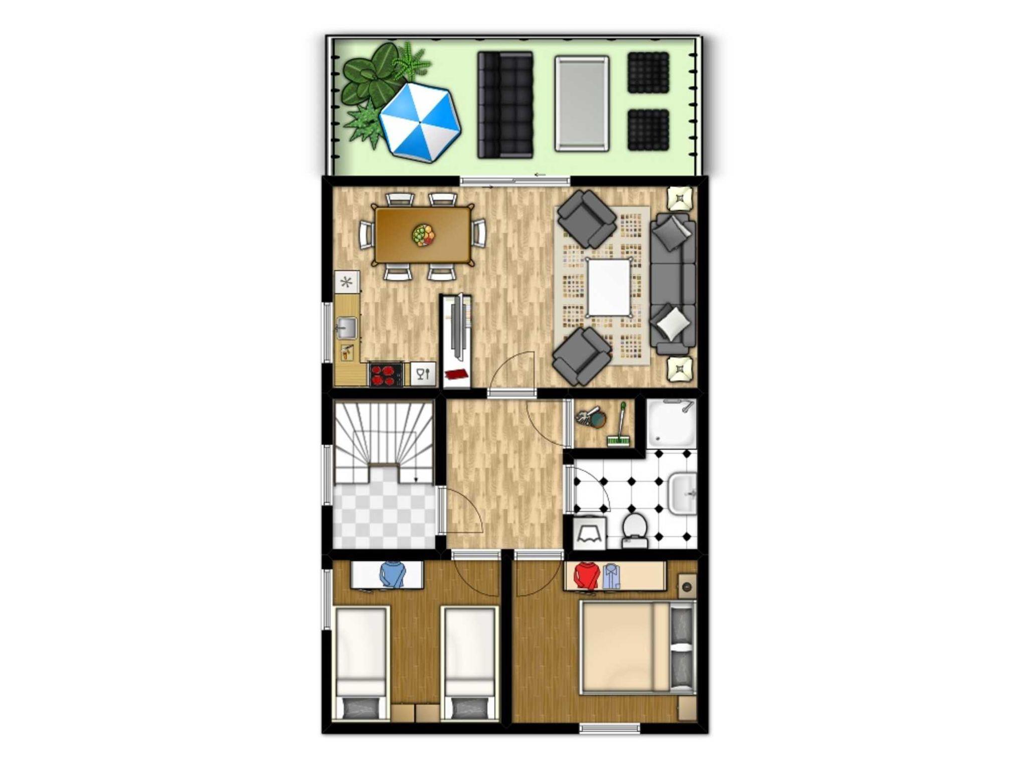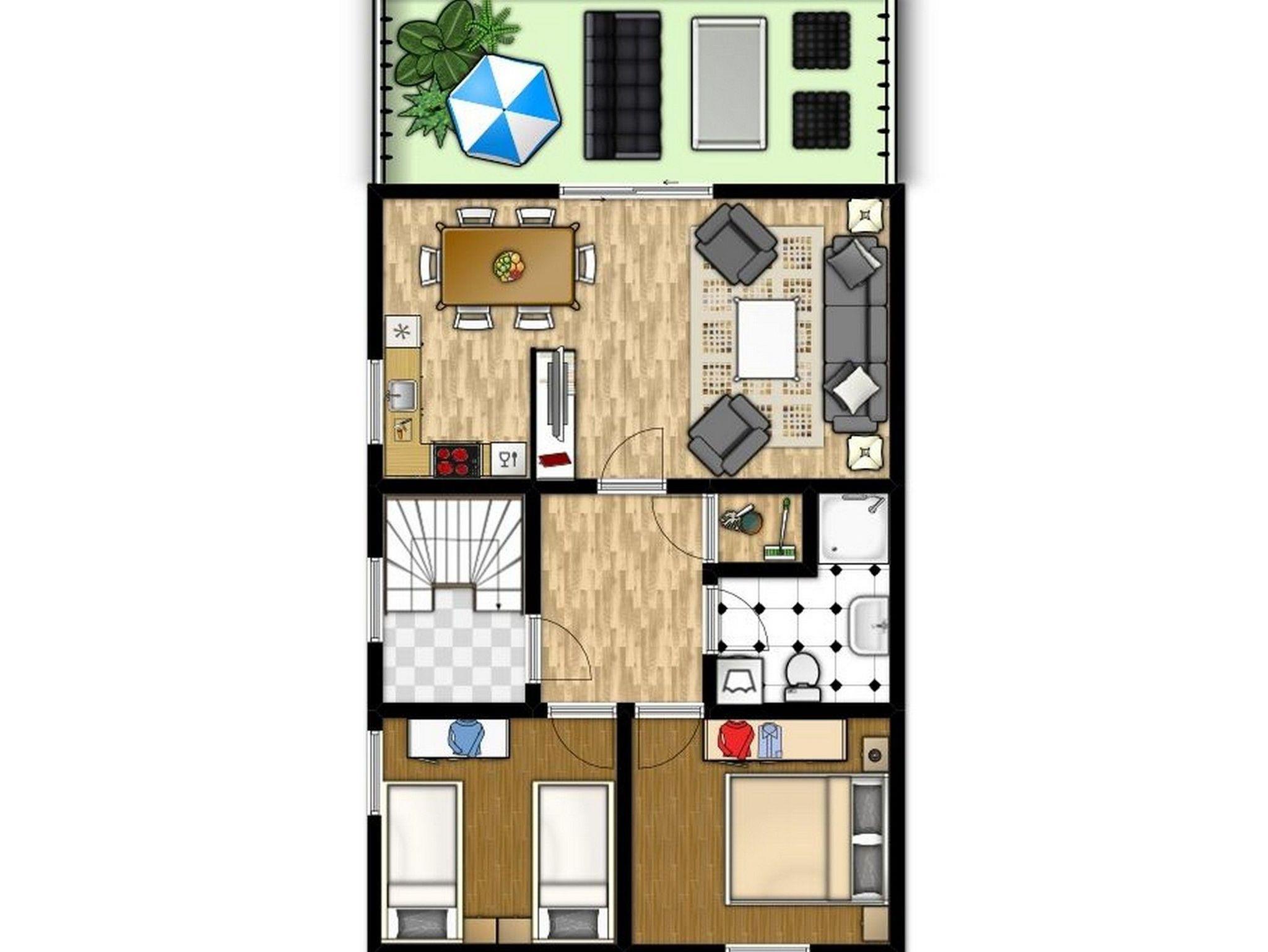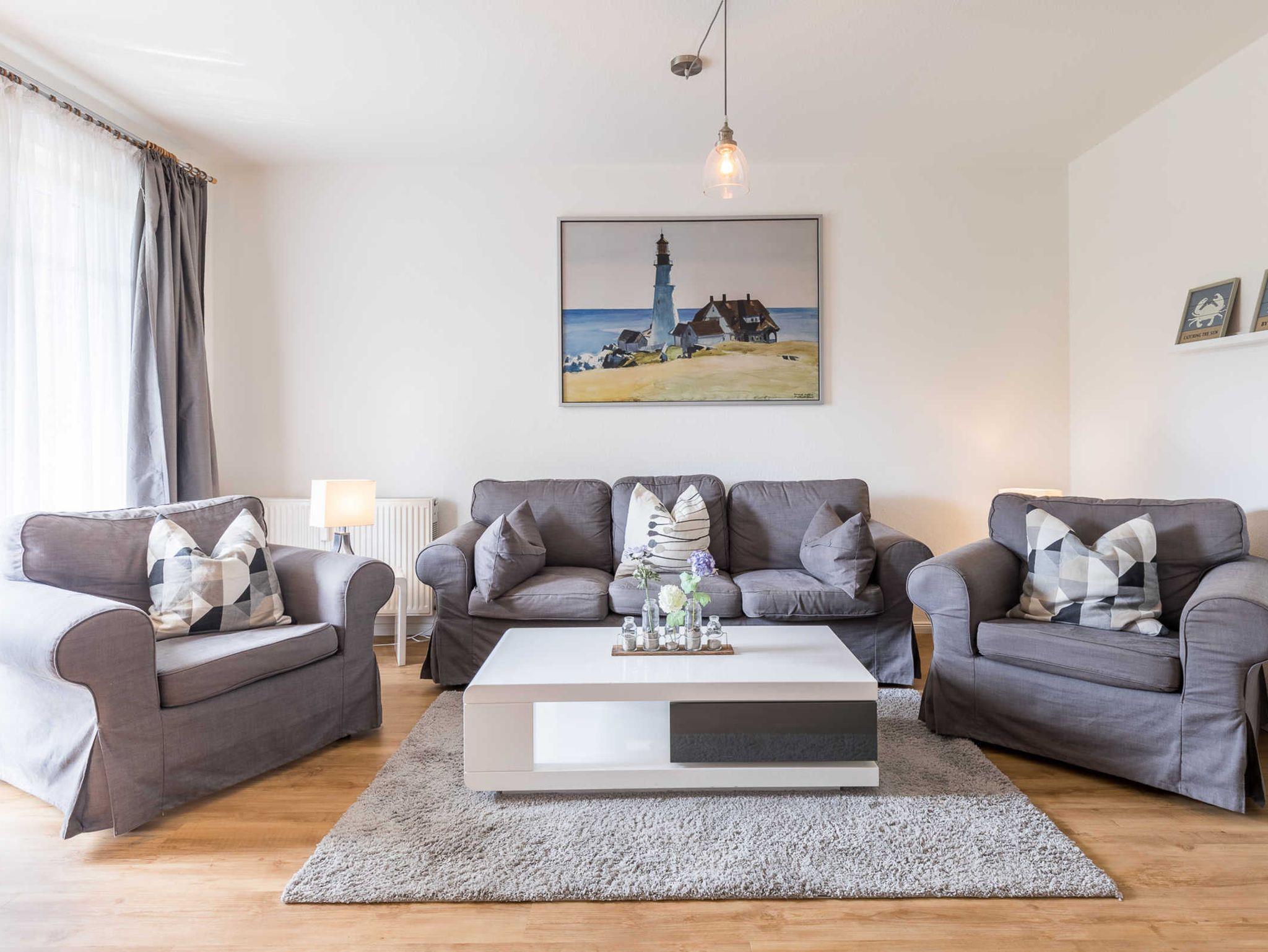 Diese 3-Zimmer Ferienwohnung im 1.OG bietet einem Paar mit Kindern ein gemütliches Zuhause in ihrem Urlaub an der Ostsee.
