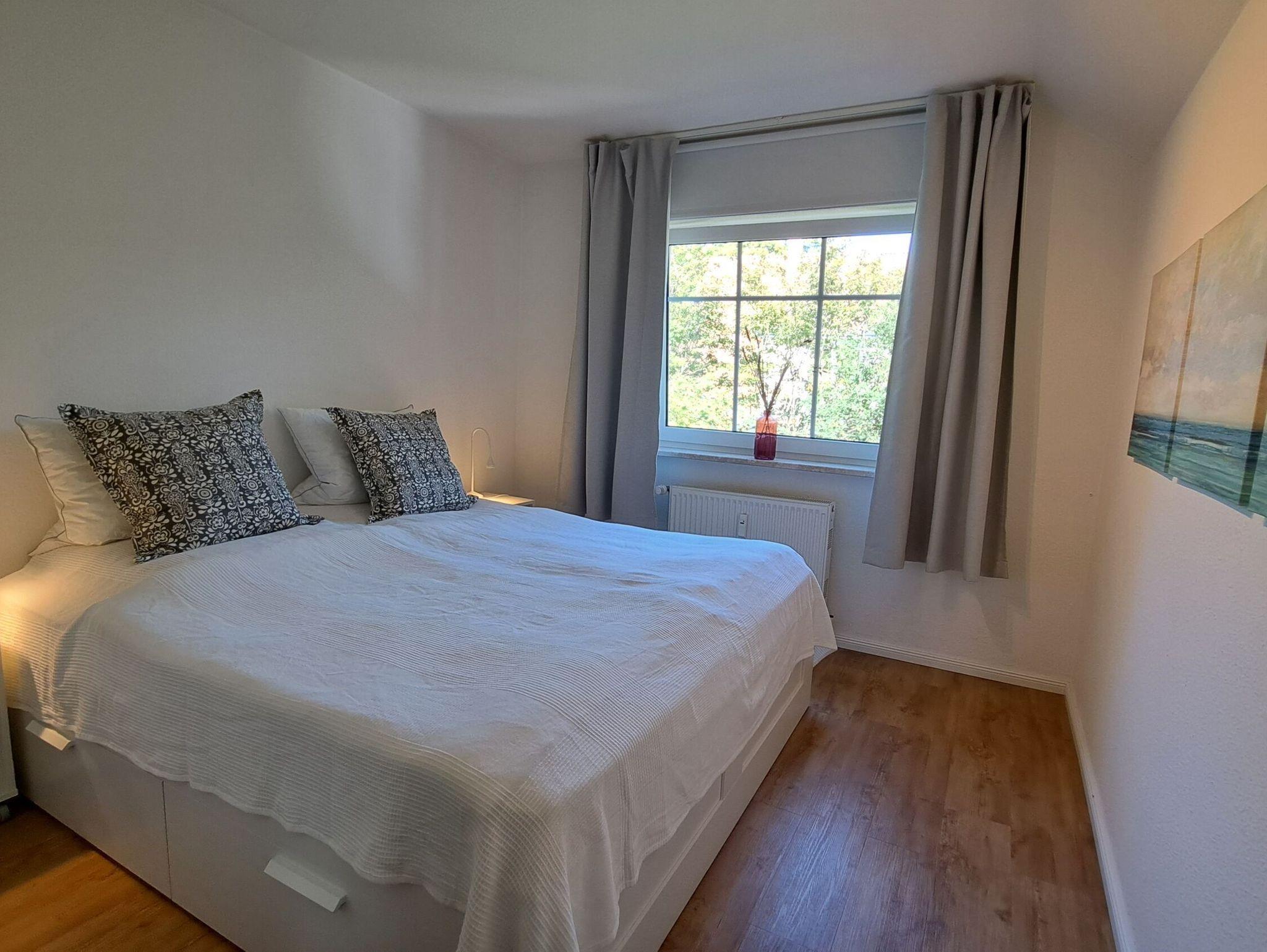 Im Elternschlafzimmer mit 1,80 x 2,00 m großem Doppelbett sowie einem Kleiderschrank ist das Schlafen ein herrliches Vergnügen.