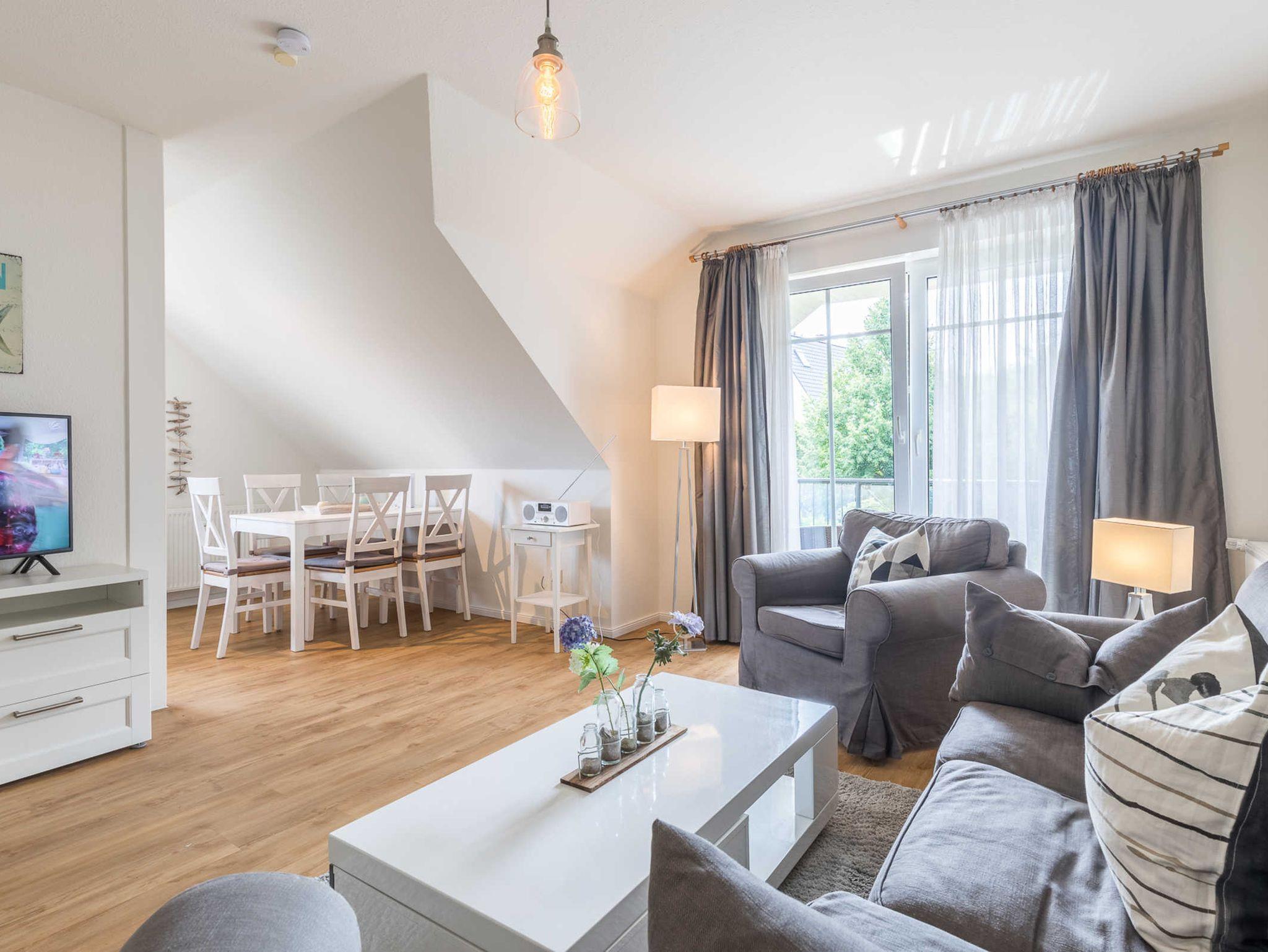 Gemütliche 3-Zimmer Ferienwohnung nahe Boltenhagen mit Balkon und moderner Ausstattung für Familienurlaub an der Ostsee.