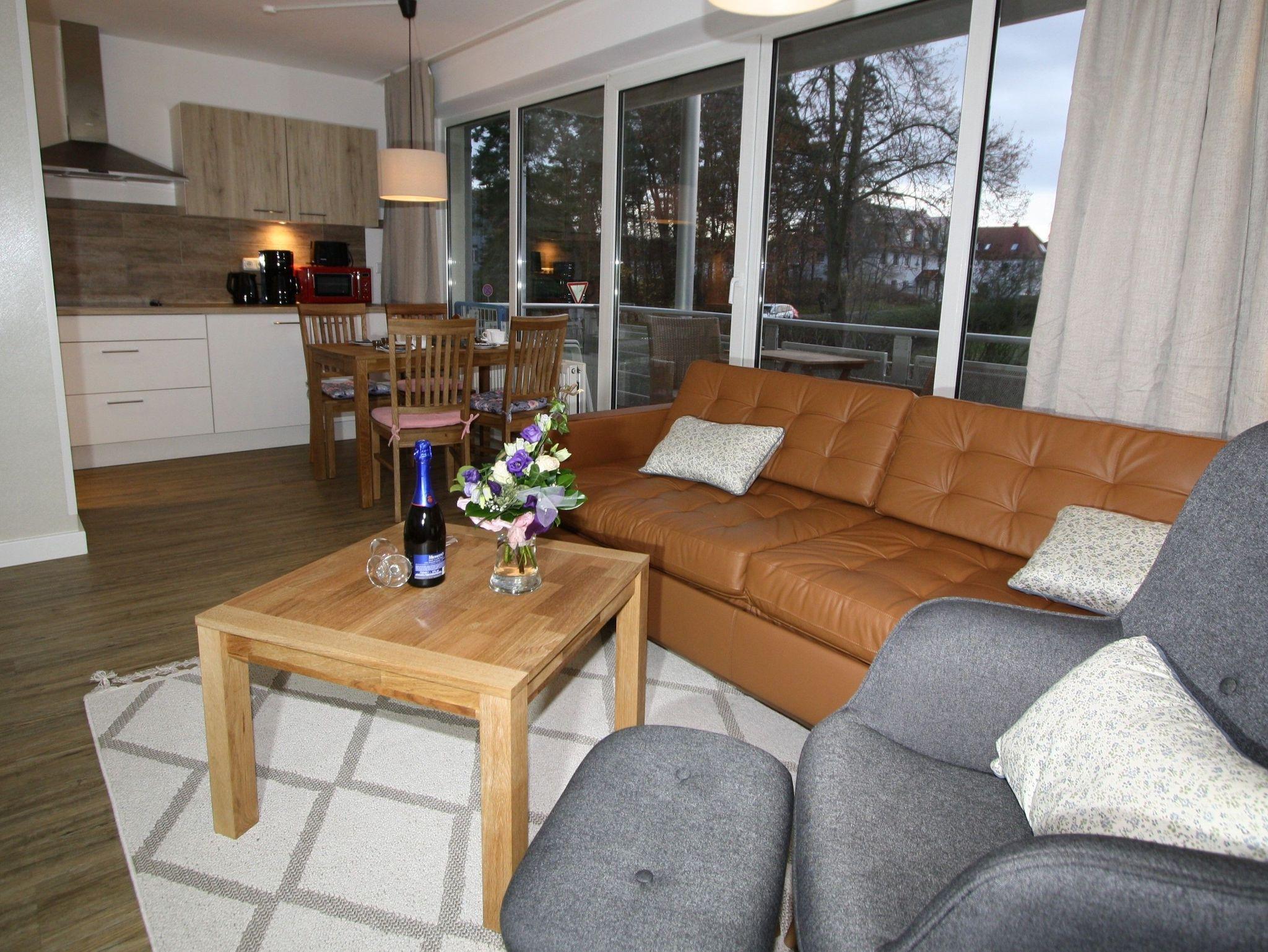 Ihre gut ausgestattete Zwei-Zimmer-Ferienwohnung für bis zu vier Personen verfügt über einen Balkon oder Terrasse, kostenfreies WLAN und sky-Empfang. Sie erreichen die Wohnung bequem mit dem Aufzug, für Ihren PKW steht ein Platz in der Tiefgarage zur Verfügung. Dort befindet sich zudem ein Waschraum mit Münzwaschmaschinen und Münzwäschetrockner und ein Platz für Ihre Fahrräder.